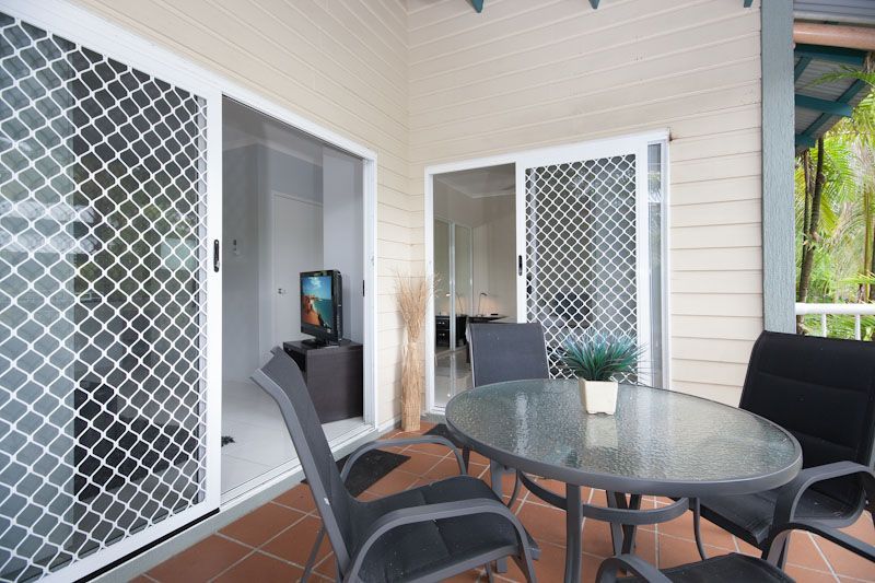 A sought-after position offers superb views over the resort pool from spacious rear patio whilst retaining ample privacy to the internal living areas with modern plantation shutters and panel louvers featured throughout the apartment.