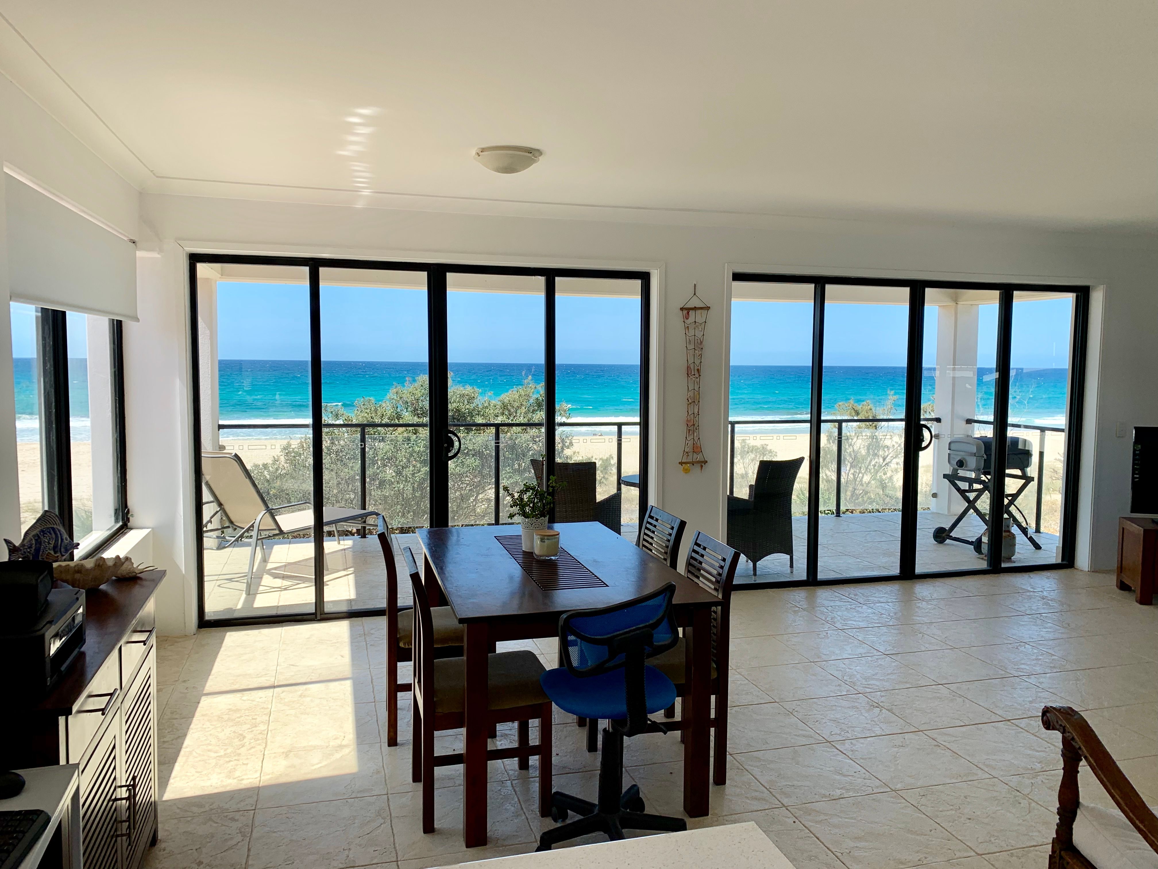 Escape to your very own Beachfront apartment. Enjoy views from Snapper Rocks Coolangatta all the way north to Surfers Paradise. With your very own private beach access a quick swim or surf along the beautiful Tugun beach is only steps away. Having glass balustrading on the balcony the views of the water from inside are unimpeded.