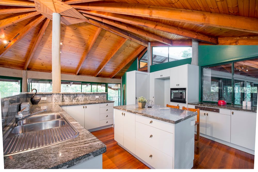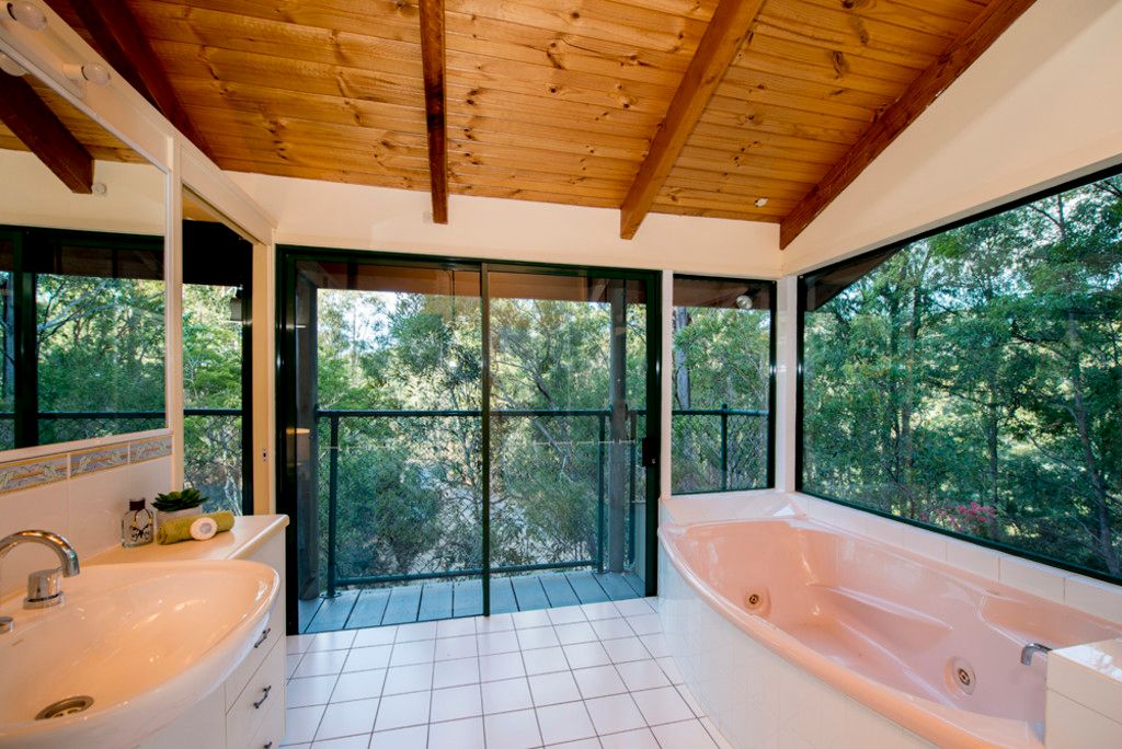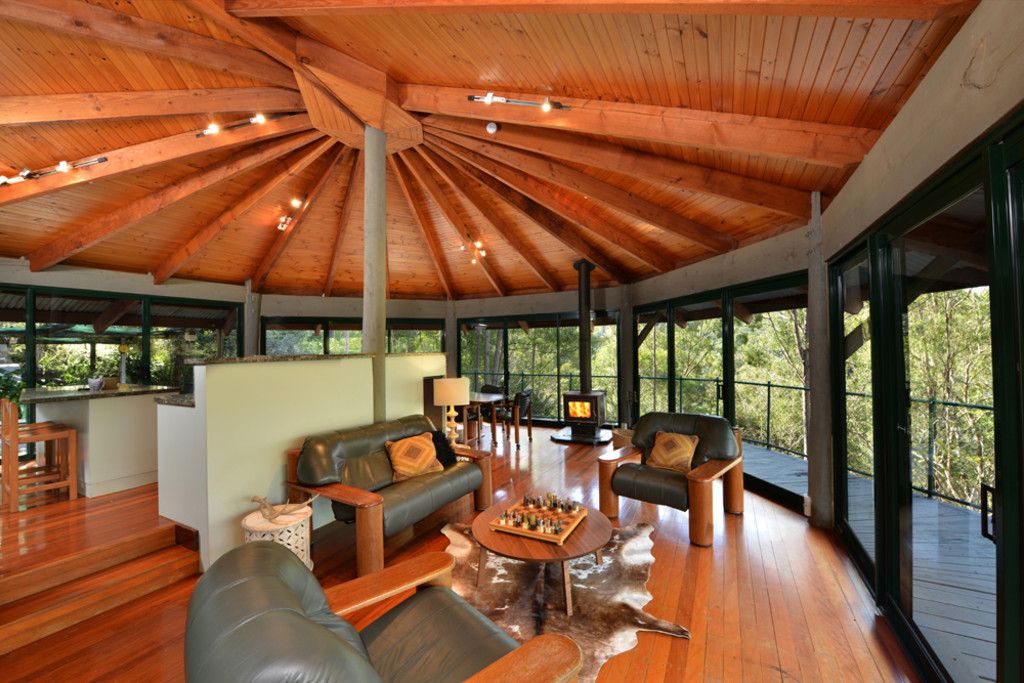 The 4 bedrooms and 2 bathroom pole house style construction home was purposely positioned into a truncated slope with picturesque valleys on either side enjoying a predominate north east aspect. This not only demonstrates strong Feng Shui but ensures the home is very well protected from adverse weather. The home offers sensational woodland views from all rooms but especially from the 280 degree wrap around deck. The home is ideal for families seeking the bush over the burbs' and was architecturally designed and built in 1993 from a clear vision and development belief that no city noises intrude on its peace and harmony. Upstairs the design allows for a blend of practical and environmental integration with cross breezes, multiple levels, large spans, exposed Oregon timber ceiling and the extensive use of glass invites the outside in.