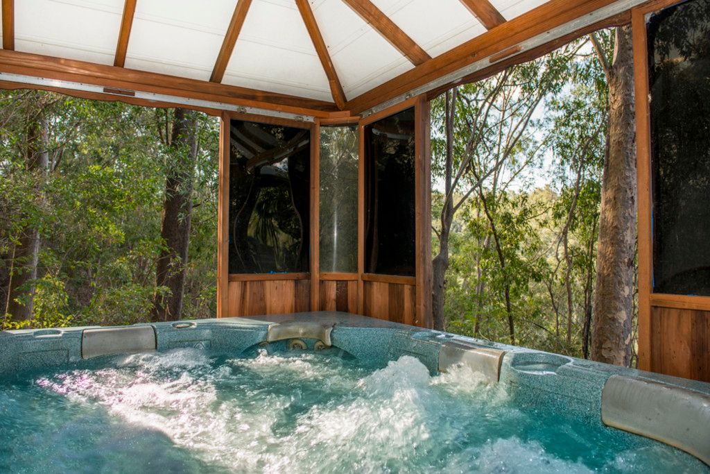 The home also features an air conditioned dedicated fully equipped media room which is heavily sound and vibration proofed, car ports with paved parking areas plus a workshop. Sited privately away from the home is a cedarwood gazebo enclosed fiberglass spa which opens on four sides offering 360 degree views of the surrounding bush lands. The spa is an ideal place to experience the birdlife on the property, including sulpha-creasted and black cockatoos, king parrots, rare pigeons, lorikeets and finches.