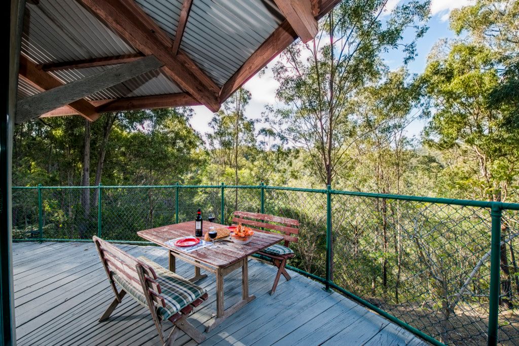 "The Tree House" is a hi-set house located up high almost near the end of Upper Brookfield Road, adjacent to the border of the southernmost section of the D'Aguilar National Park. The minimum block size in these parts is 10 acres but what divides each block is not your fences but amazing hills, valleys and streams. It's all about a special home in a beautiful bush land setting with total privacy and isolation, except for the occasional whiptail wallaby and friends. This sought after acreage suburb is importantly within easy access to the Brisbane CBD. Brisbane is just 40 minutes, while Kenmore with all its quality shopping and cafes just 20 minutes. The quaint village of Brookfield with its general store & cafe, produce store, show grounds and dressage arena is only 15 minutes away.