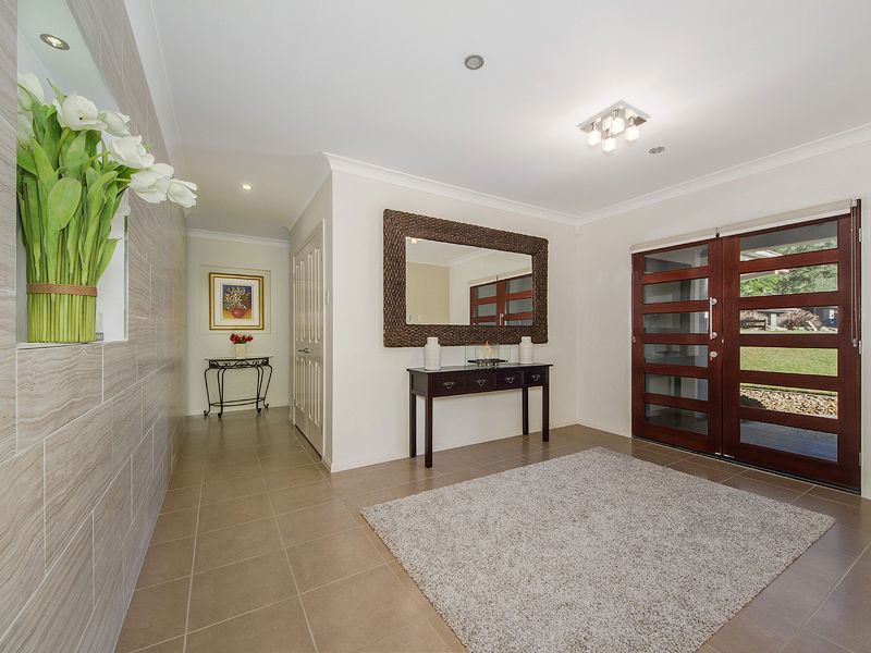 The separate carpeted living room is surrounded by beautiful Plantation shutters and a warm elegant gas fire featured on the wall, which without a doubt is where you will be relaxing on these cool winter nights with your favourite warm drink or glass of red wine. For the astute entertainer, there is a separate butler's pantry to die for with its own sink, mountains of storage, steamer oven, microwave convection oven and so much more! Complete opulence graces every room as you visualise your own family enjoying this tasteful lifestyle.