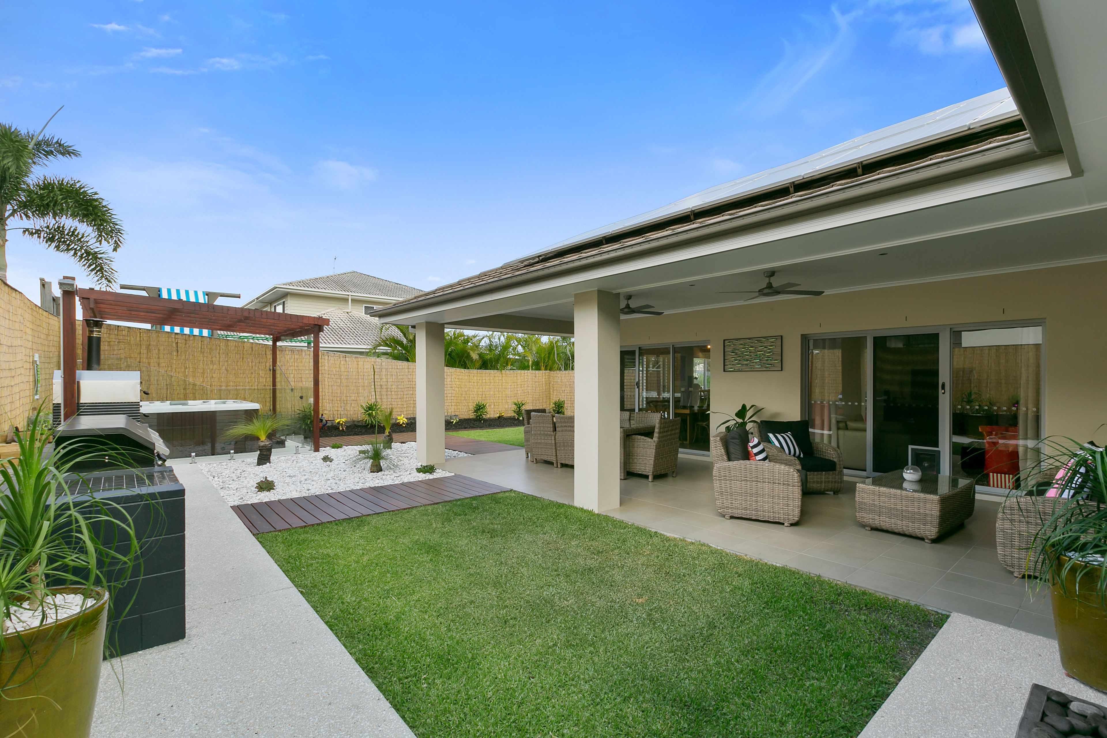 Contemporary living with fantastic space to entertain. This elegant quintessential single level family home is situated in the highly sought after 'Coomera Springs' estate. Presenting a fluid layout offering multiple living areas with generous proportions throughout the home - residences of this home will be offered everything they need for ease of living! Impeccably presented, this home offers a great sized indoor living space that smoothly transitions to a large outdoor alfresco area complimented with a built-in 6-burner barbeque and a large spa bath.