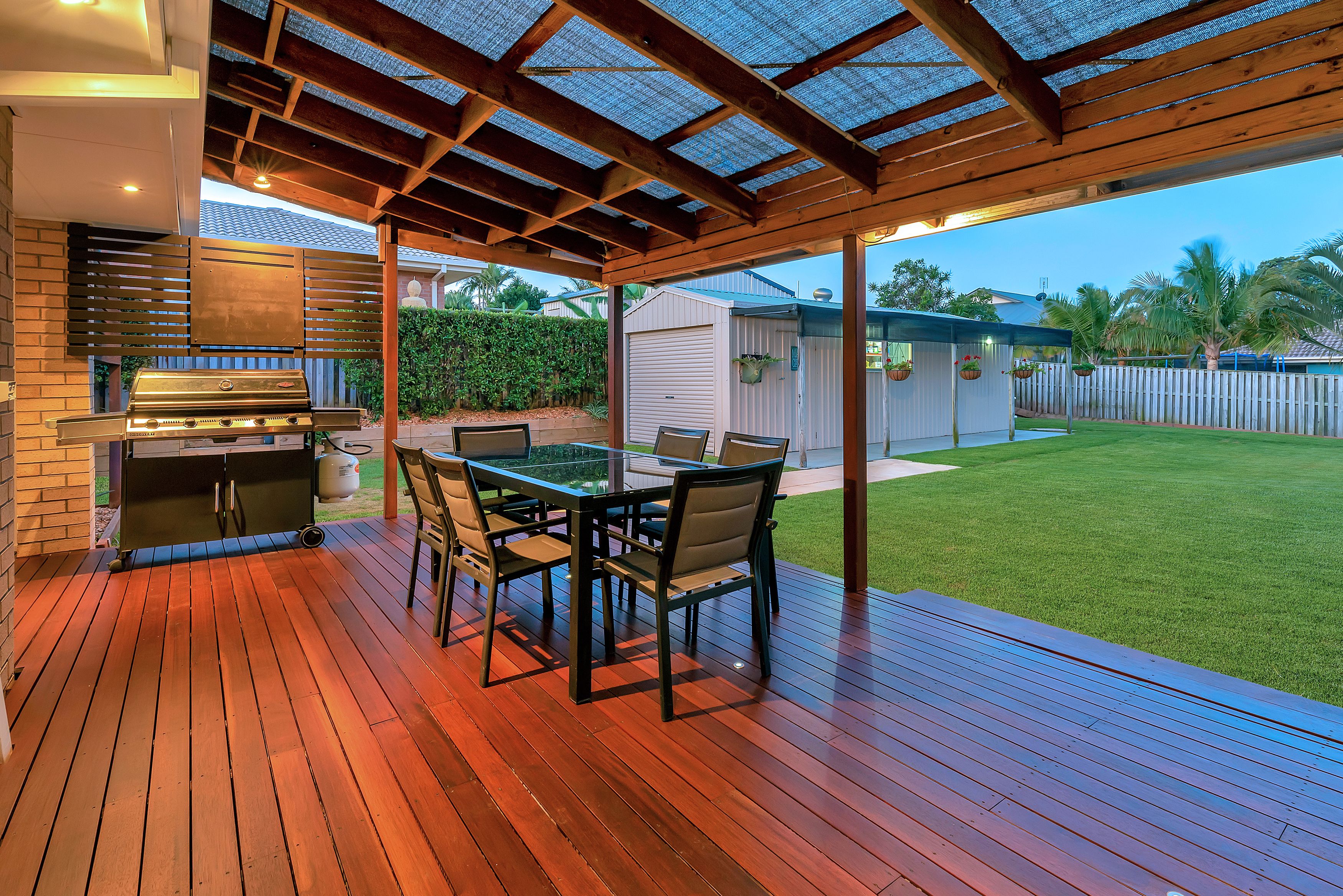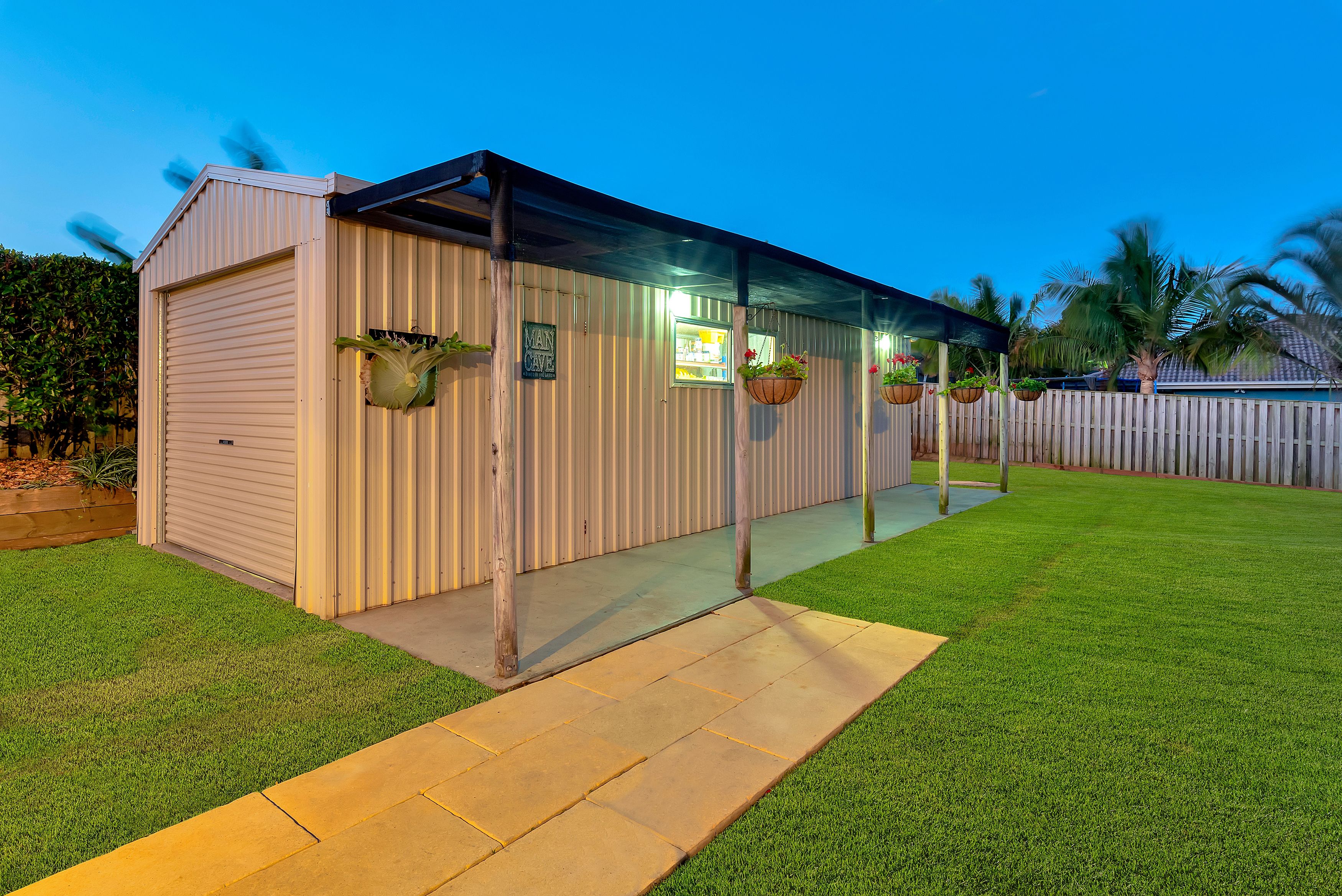 - Outdoor entertainment area and shed has feature lights to make the yard light up