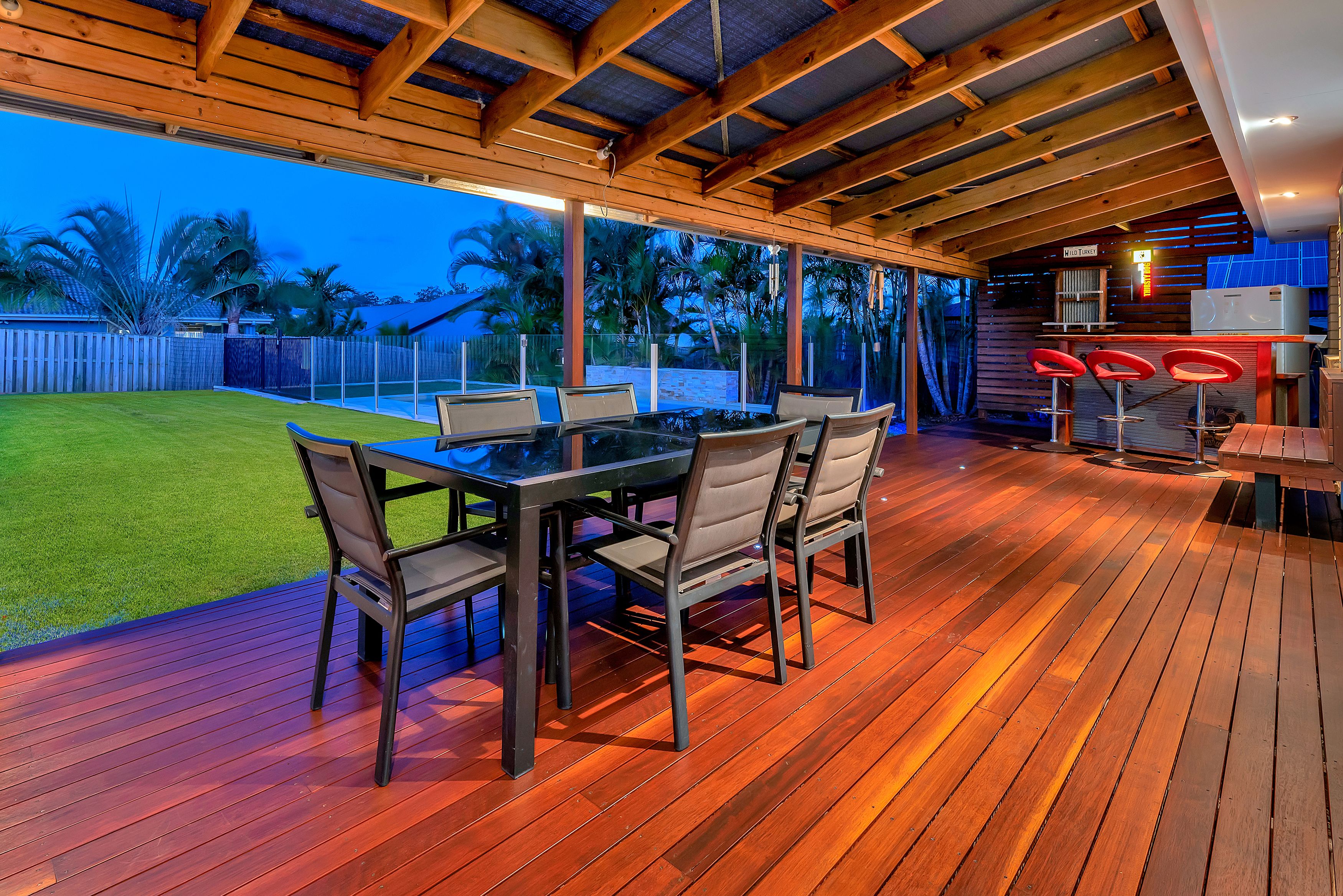 Moving outdoors and I'm sure the pictures speak for themselves.. All situated on a flat block, you have a massive powered shed with a roller door and 10 power points, a picture perfect in ground pool with a water fountain, outdoor deck with a bar, side access, very well maintained gardens and more flat grass area perfect for running around space for the kids. This outdoor area is the Queensland dream and is to die for. Imagine spending this Summer out the back of this house, it will keep the whole family happy!