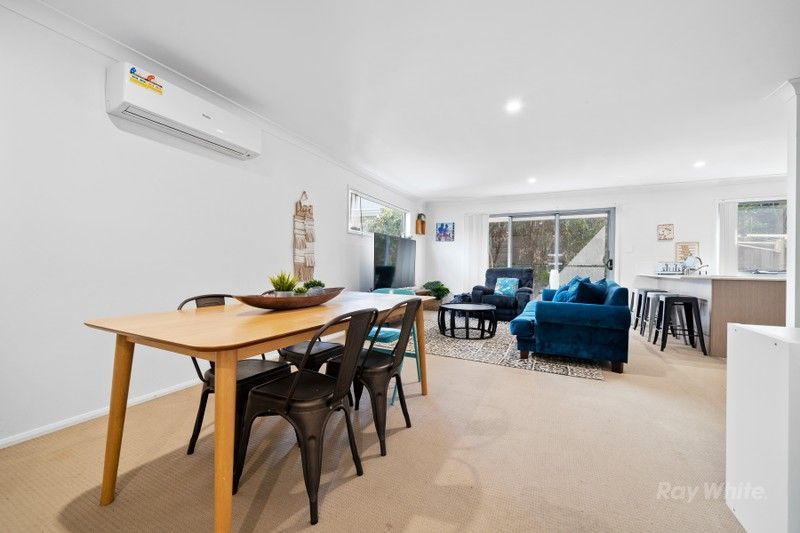 The property boasts open-plan living and dining areas, filled with natural light and designed for modern living. The seamless connection to the outdoor patio creates a perfect space for entertaining or unwinding after a busy day. The fully fenced yard ensures privacy and safety, while the complex's shared pool adds a touch of resort-style living, perfect for warm Queensland days.