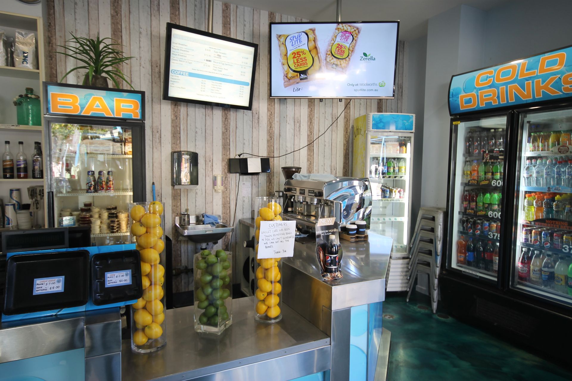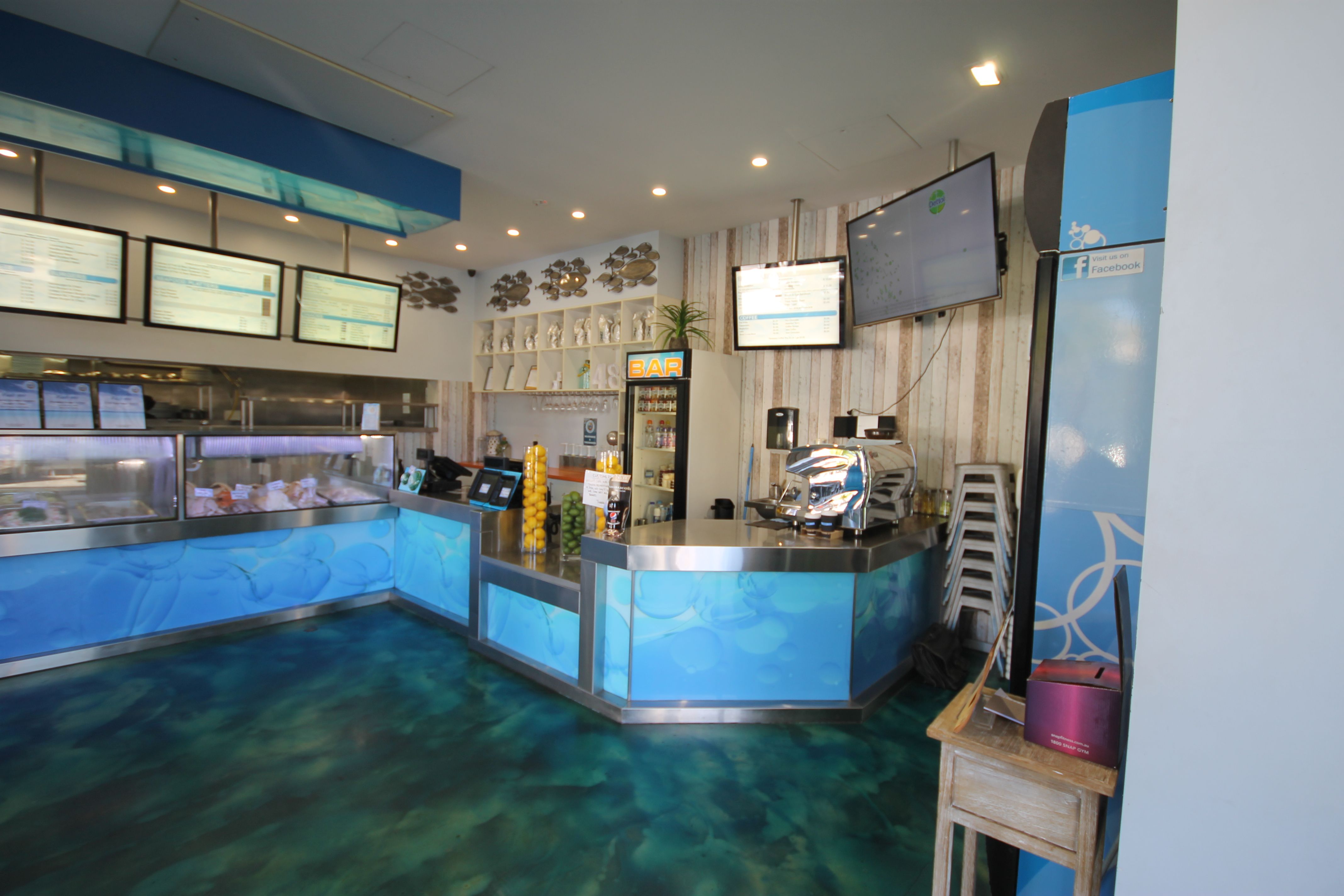 Offering hot and cold seafood, coffee, drinks. Dine in or Take Away currently being run under management with 10 casual staff working the Counter and Kitchen.
