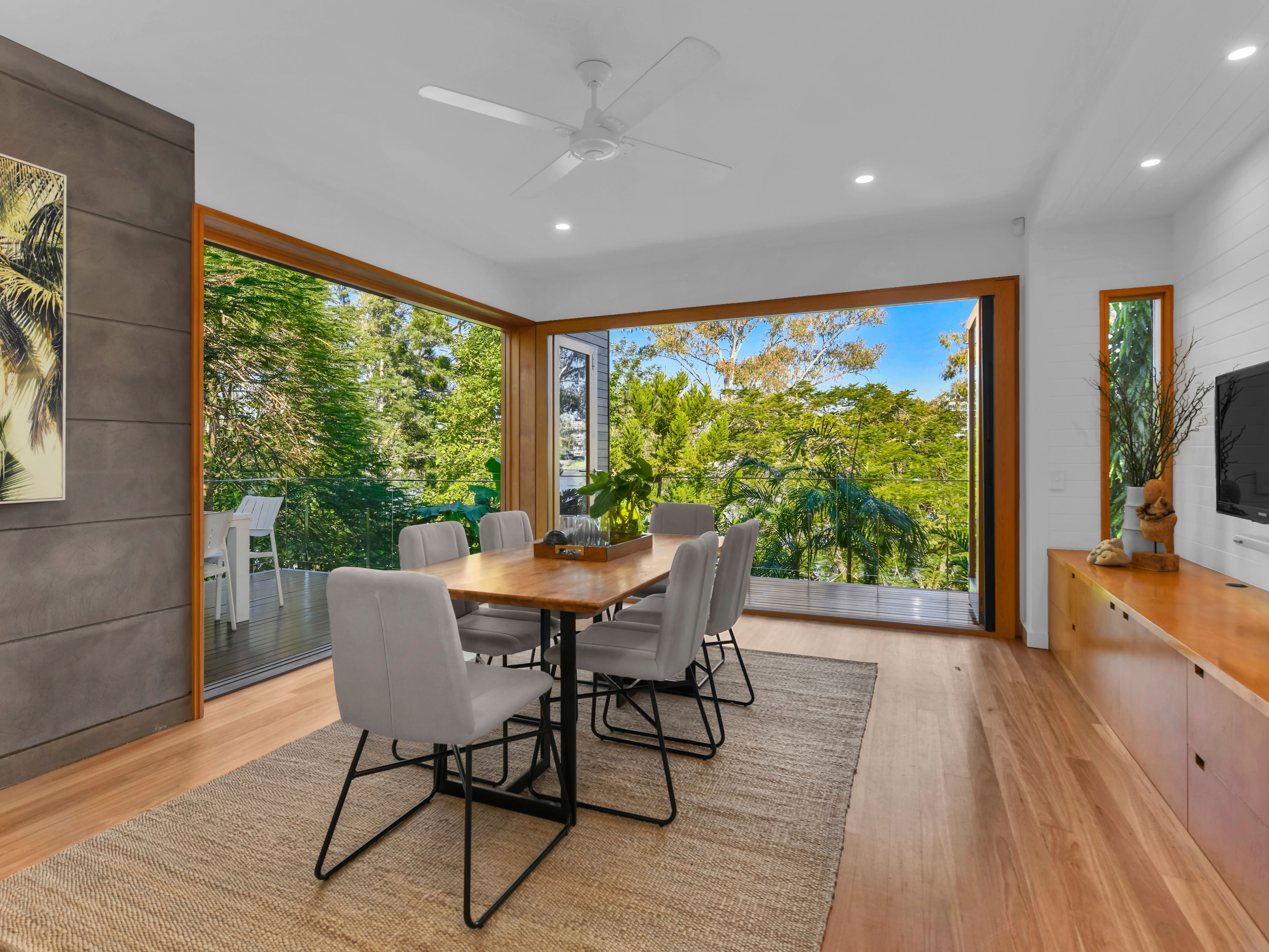 • Three levels of riverfront living with panoramic views of the Brisbane River • Four spacious bedrooms including master suite with walk-in robe, ensuite and private balcony • 683 square meter riverfront allotment with leafy aspect • Large airy living zones and gallery with natural light and central sunlit courtyard with lush plantings • Polished concrete and reclaimed timber flooring throughout • Grid-connected electricity and photovoltaic solar panels • 71,000L rainwater storage and grey water recycling system • Lower level entertainment deck with plunge pool • Easy cycle to West End markets, South Bank, art galleries, parks and superb cafes • 3 Minute walk to West End Ferry across to the University of Queensland in St. Lucia • Easy access to 24-hour express City Glider Bus and riverfront bikeway to the C.B.D • West End State School and Brisbane State High School catchment • Within 3kms to Brisbane C.B.D, Lady Cilento Children's Hospital and Mater Hospital • Within 5kms of Brisbane's leading prestige private schools • Architecturally designed by Conrad Gargett Riddel Architects