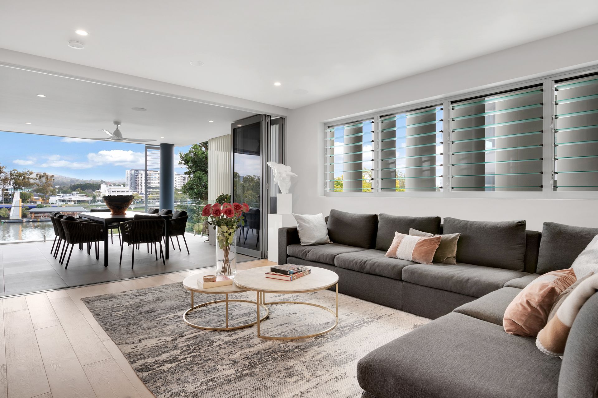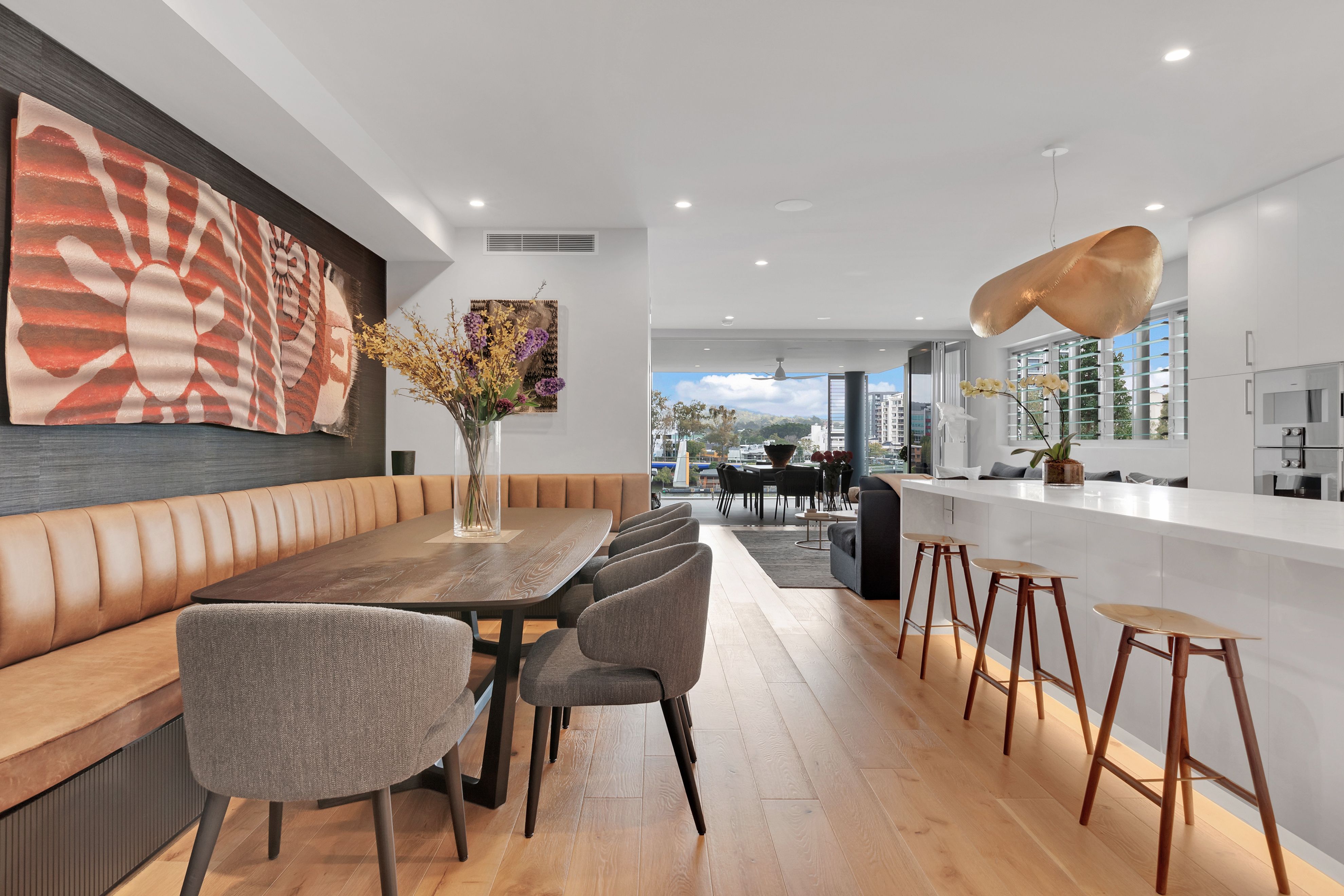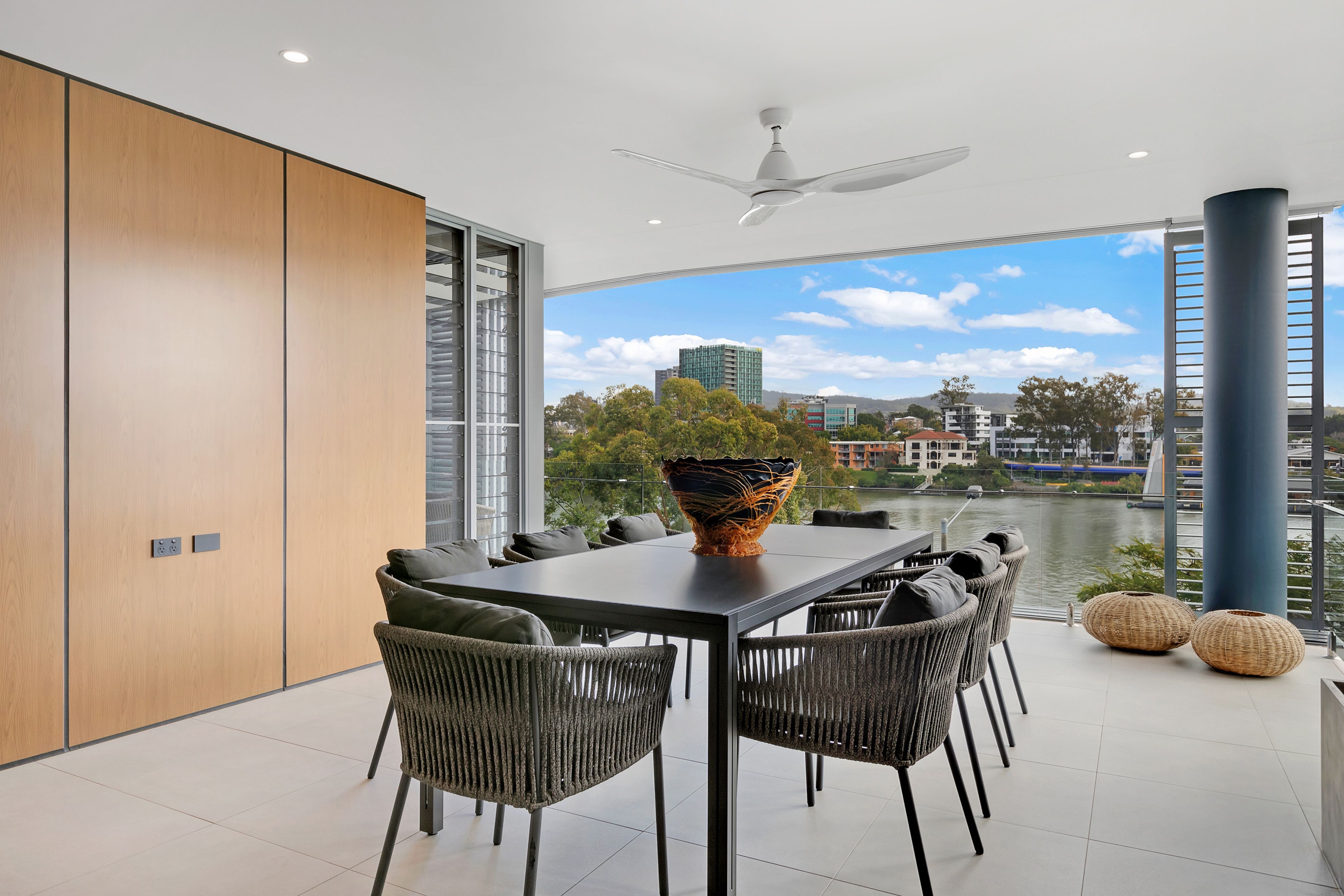This generous five-bedroom riverfront apartment is located in the prestigious Virtuoso complex. Situated at the northern end on the third floor, this exclusive zone of Virtuoso enjoys the best views of the Brisbane River and closest proximity to the riverside parklands. Nationally-acclaimed interior designer Louise Walsh's modifications have taken this luxury residence and given it a boutique hotel vibe. From the moment you walk through the door you can feel the quality, with custom-made Wyer & Craw joinery, the finest European appliances, natural stone, brass and timber combining to create a sophistication and elegance rarely available for rental. Extensive use of glass provides ample natural light and open-plan living flows seamlessly to an expansive balcony making this residence perfect for entertaining. Three minutes walk to the new Woolworths, cafes and restaurants at Montague Markets. This location provides walkable access to Queensland Ballet, the Brisbane CBD, Southbank and Cultural Centre.
