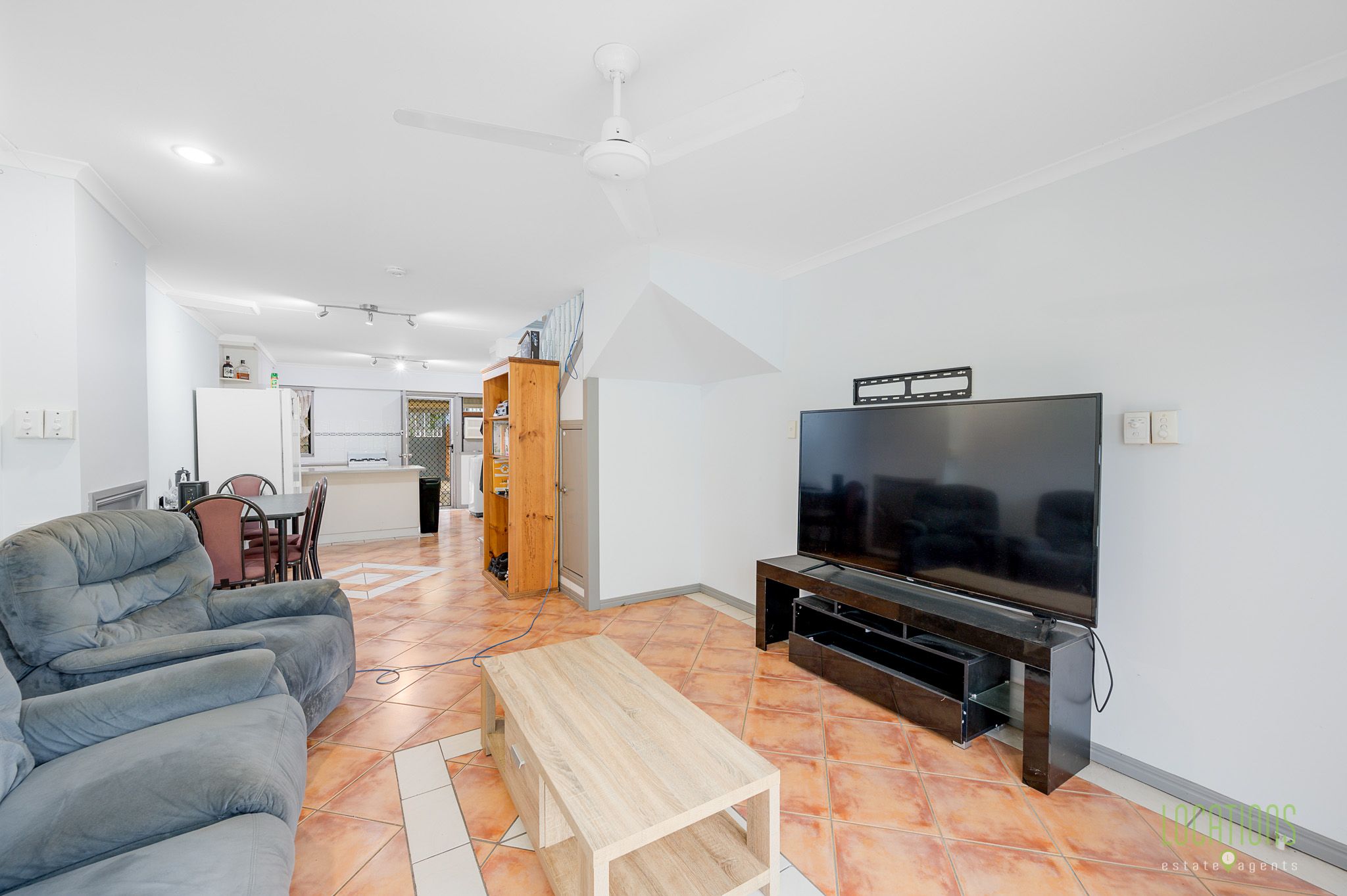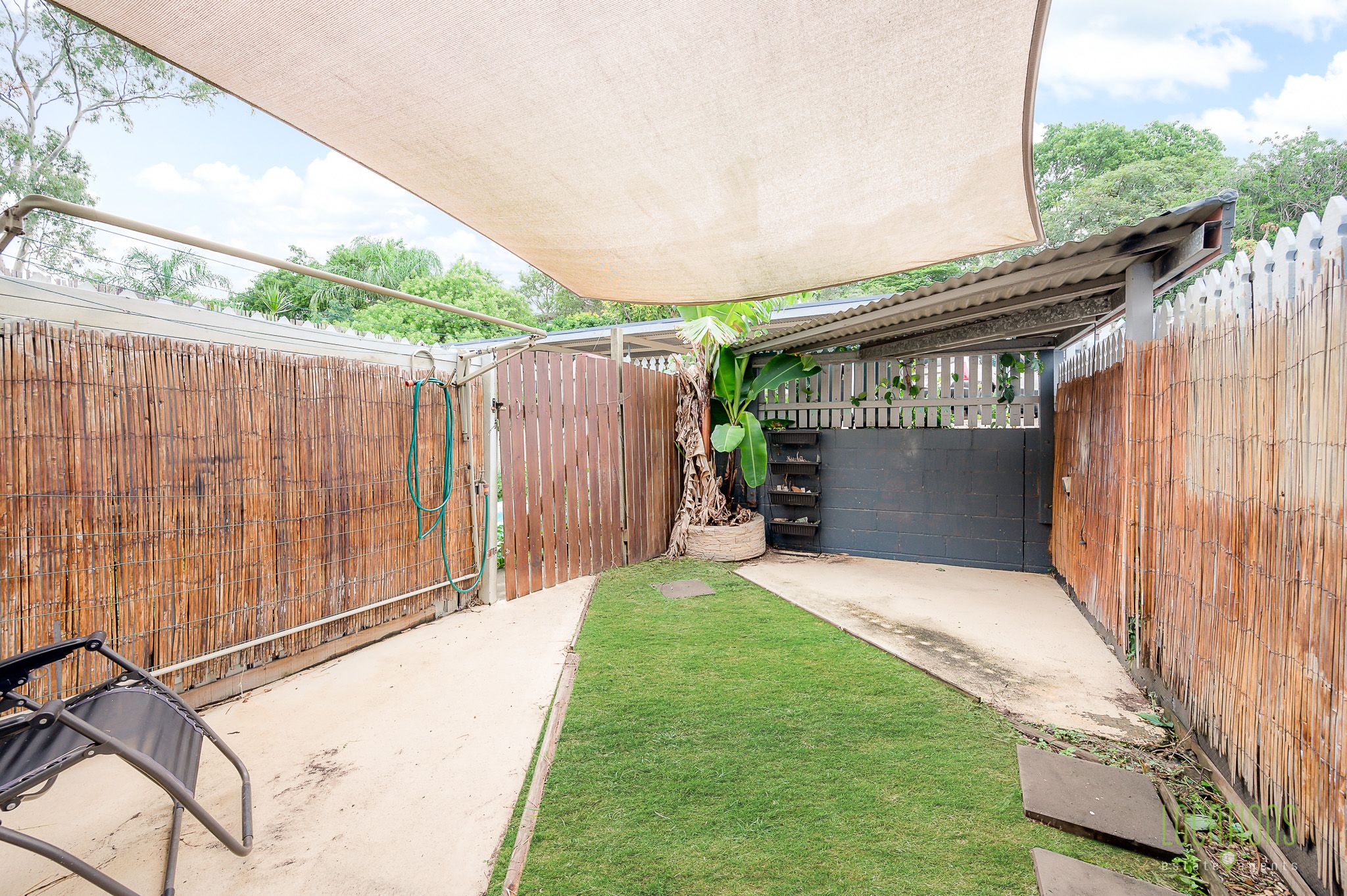 Property Features: Lower Level: Open plan living, dining, and kitchen. Kitchen: Gas appliances and plenty of cupboard space. Security: Screen doors. Access: Internal timber staircase leading to the upper level. Bedrooms: Main bedroom with built-in robes, carpet, ceiling fan, and stylish louvres. The second bedroom features a built-in robe, ceiling fan, and box air conditioner. Bathroom: Spacious layout with vanity, shower over spa bath, and toilet. Outdoor Space: Paved courtyard with a lockable gate, grassed area, and rear garden. Parking: Allocated undercover carport on the premises.