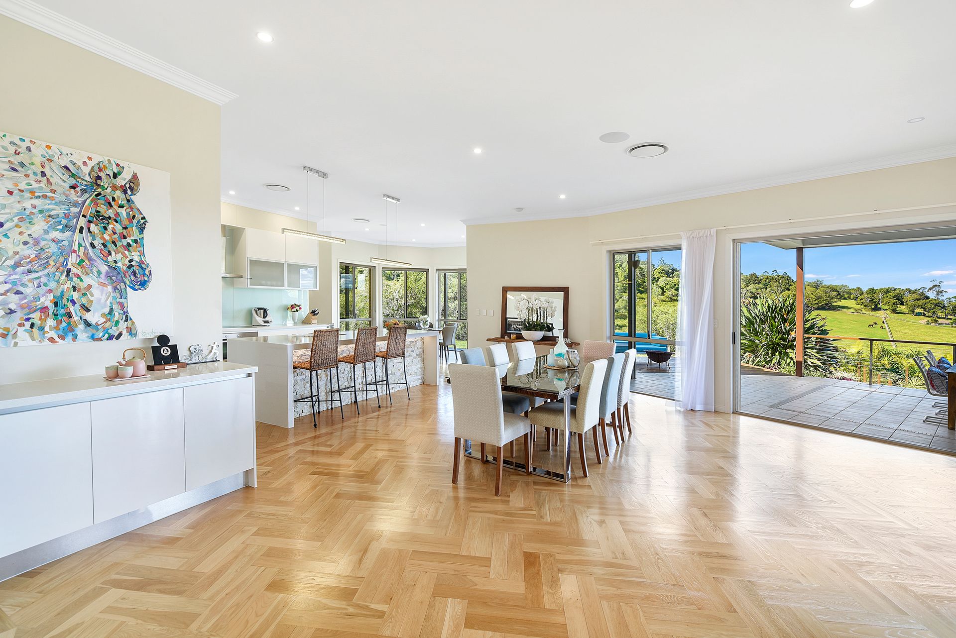 This solid brick family residence is surrounded by four fully-fenced horse paddocks, day stables, an equestrian arena, swimming pool, terrace, entertaining deck and landscaped gardens.