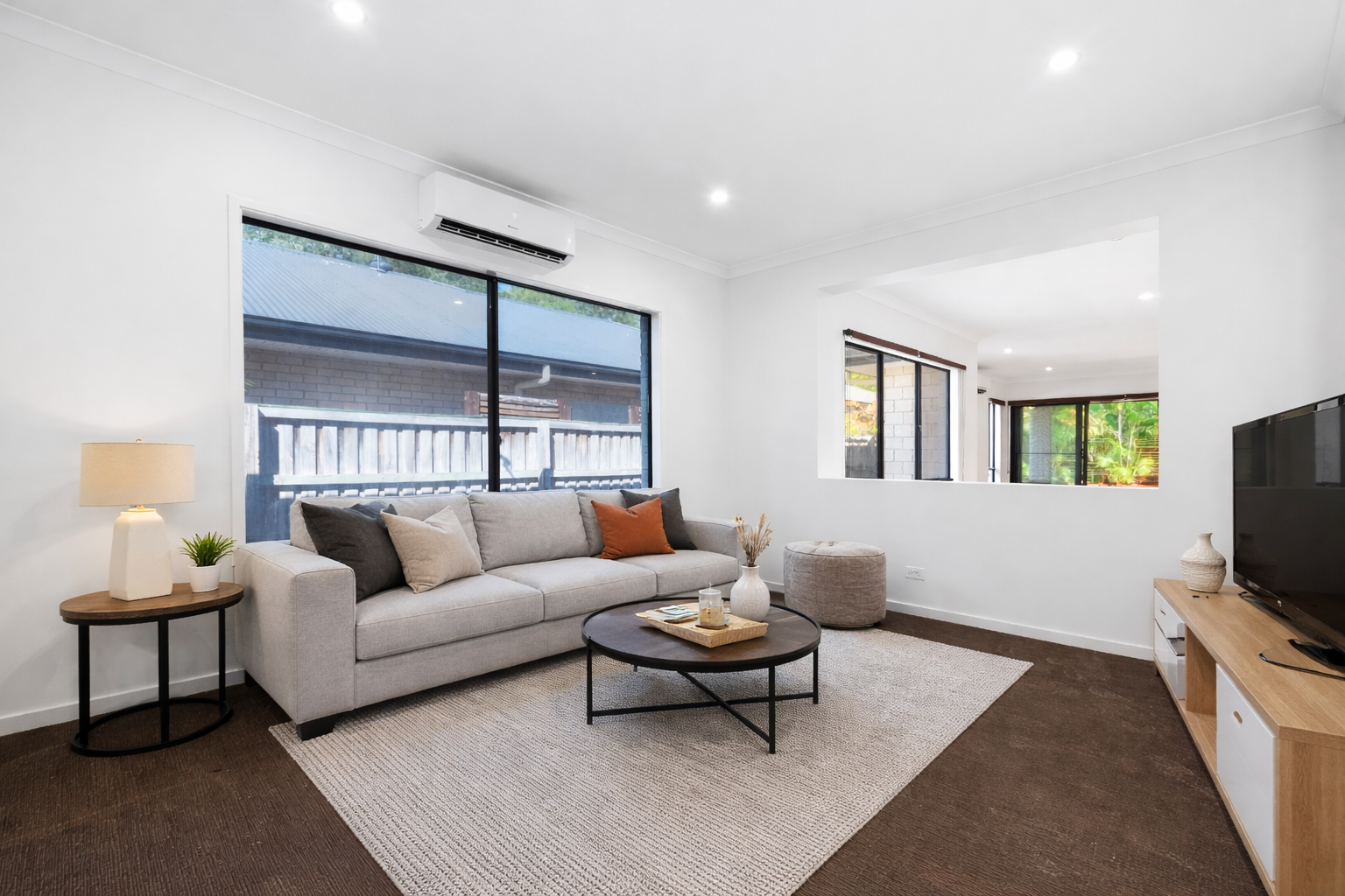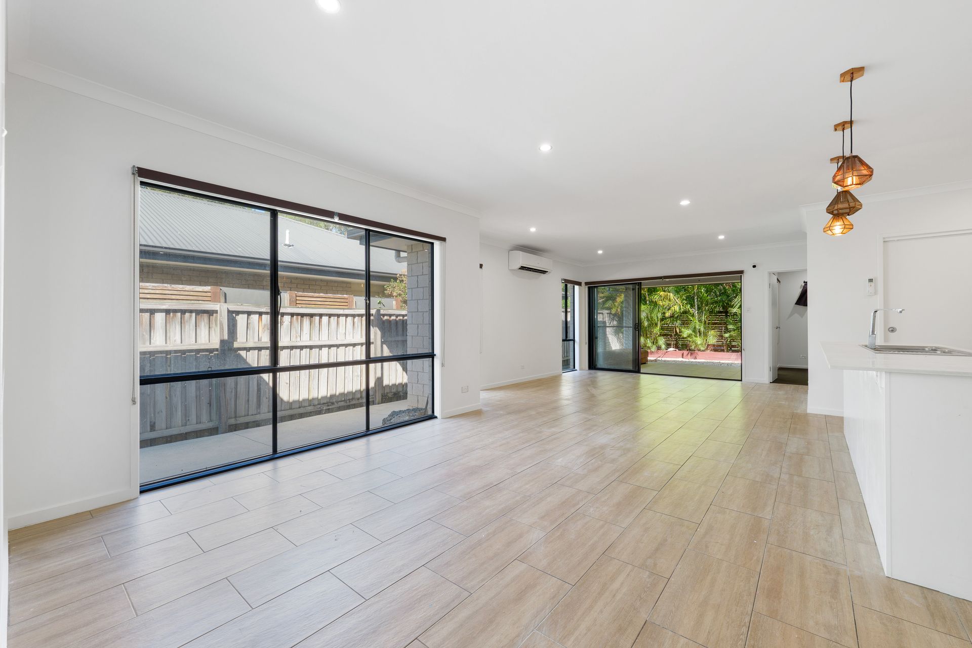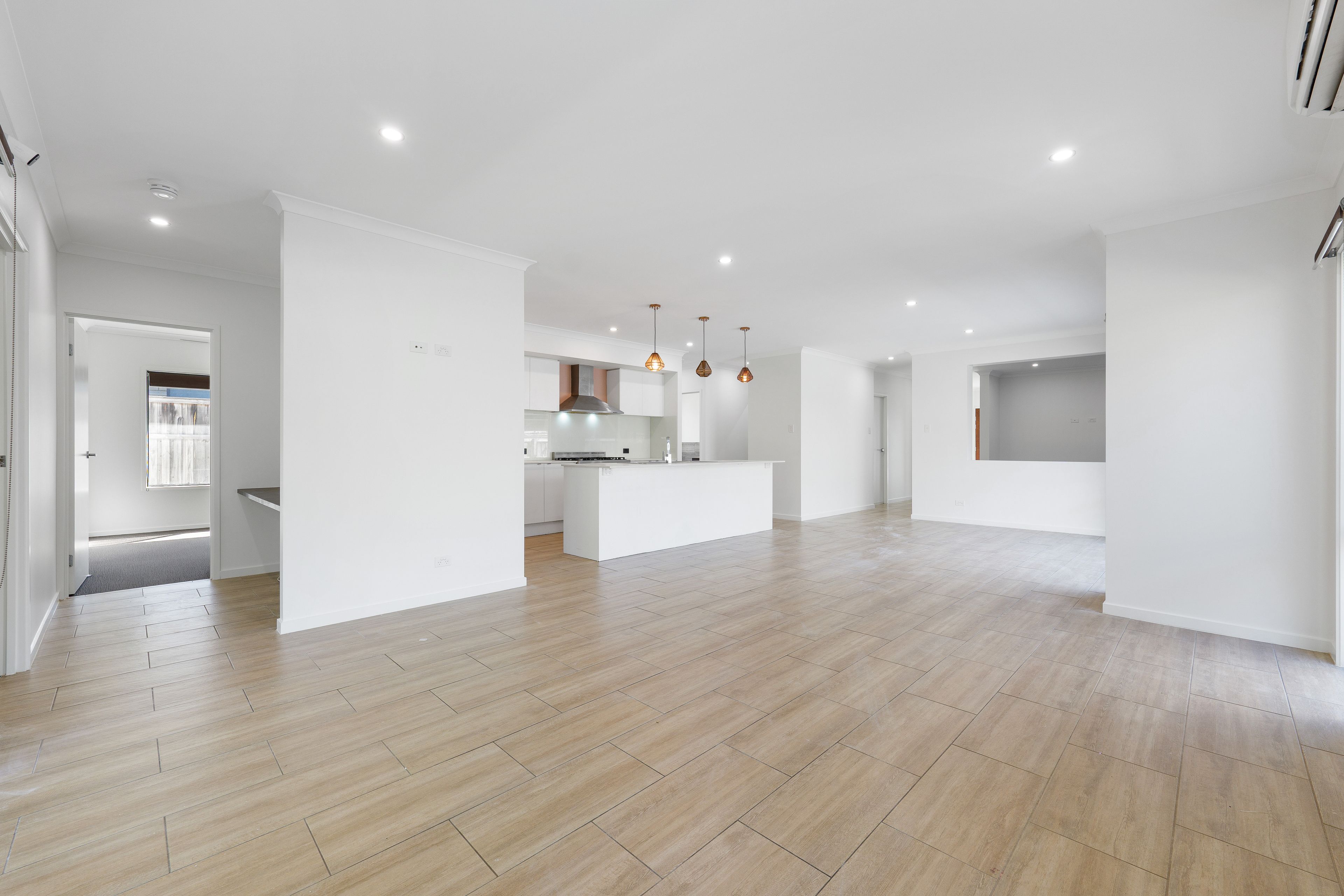 At the heart of the home is the open-plan living, dining, and kitchen zone, designed for effortless everyday living and entertaining. The kitchen features excellent bench space, pantry storage, and a functional layout that connects seamlessly to the main living areas. Sliding doors extend the space outdoors to the covered alfresco, creating an inviting setting for entertaining or relaxing while enjoying the privacy of the backyard.