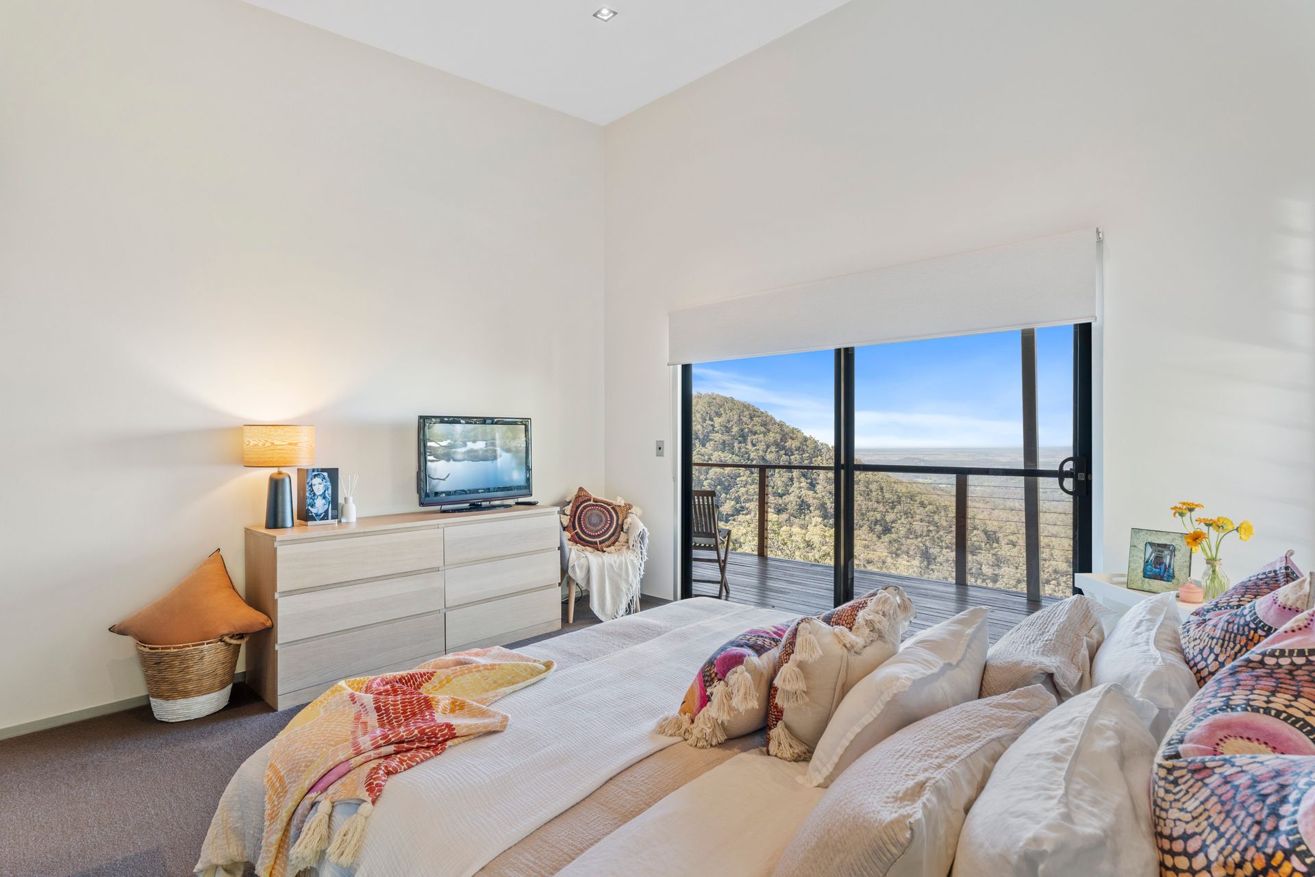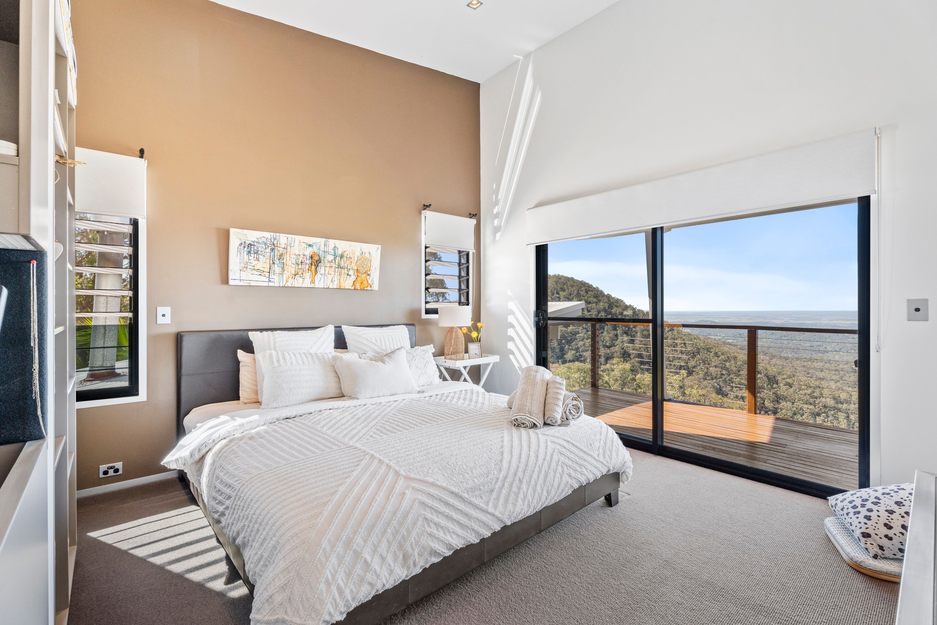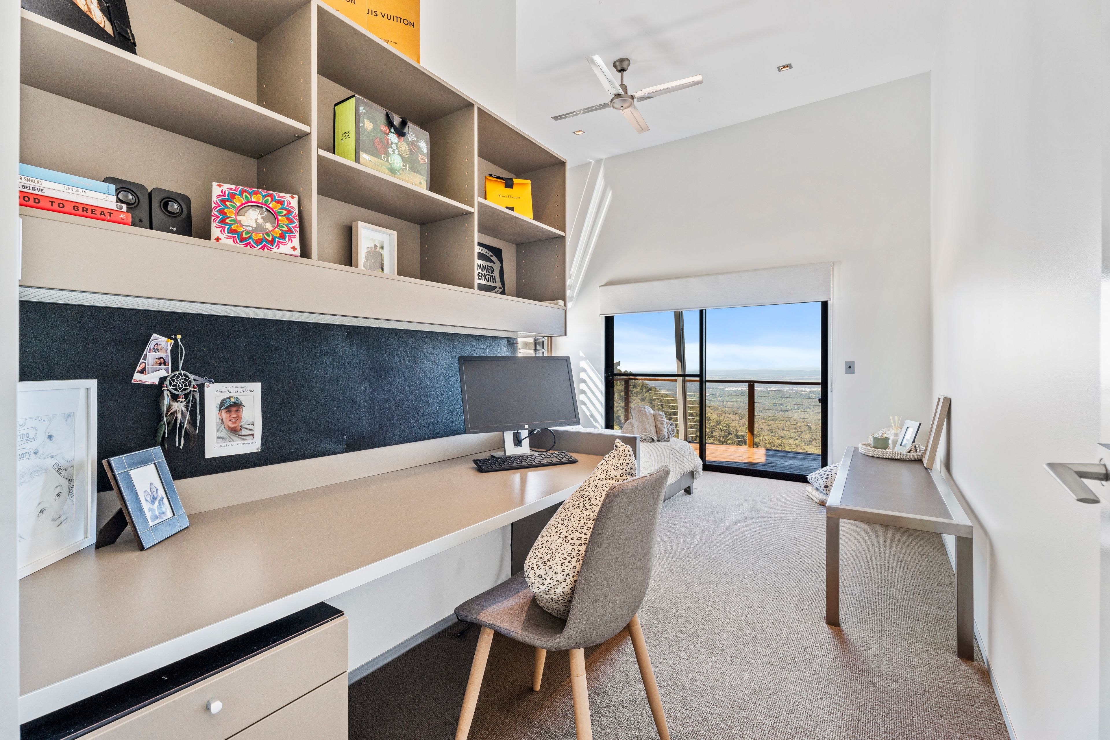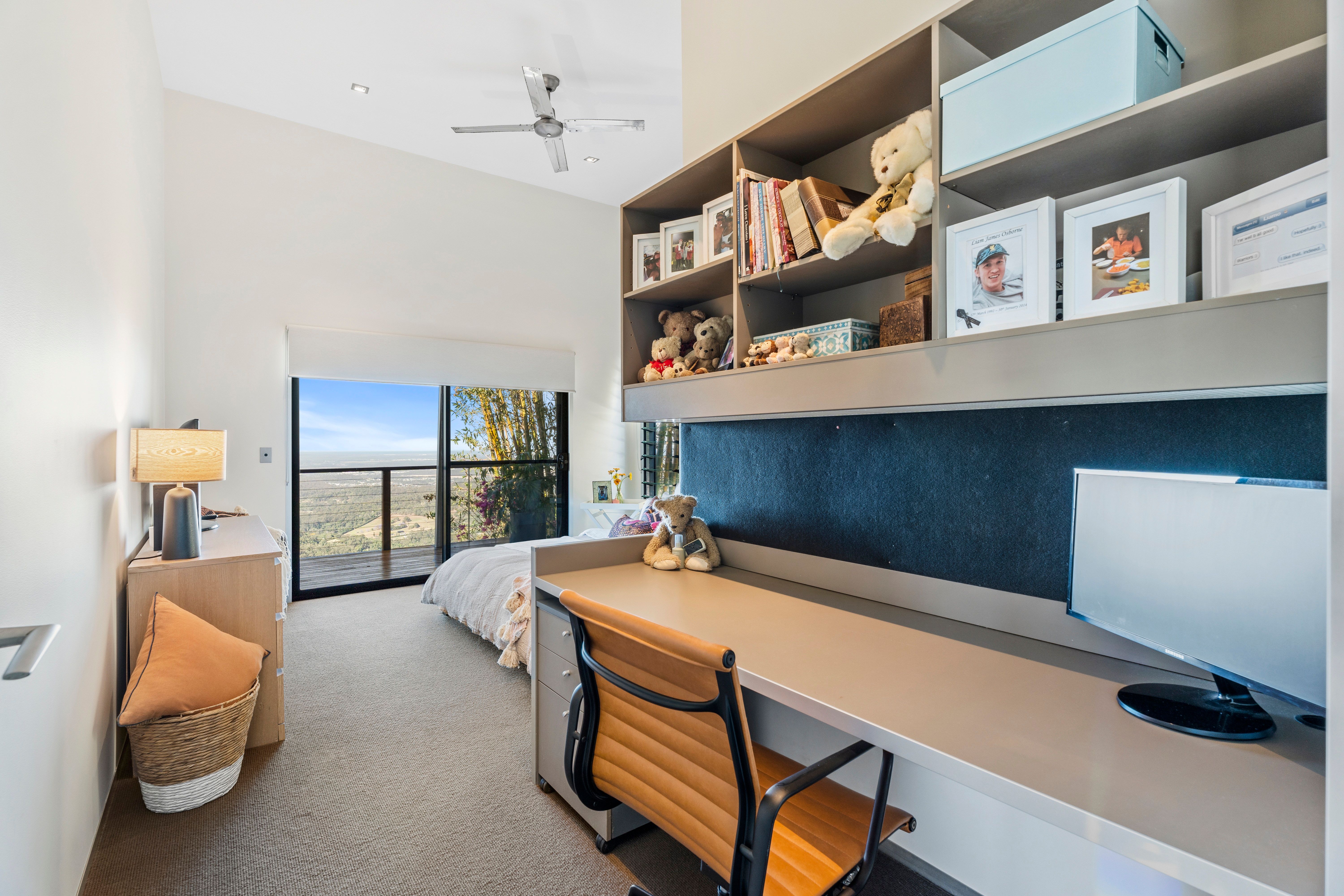 Upstairs, a private retreat awaits with three bedrooms (two of which, featuring built in desks and walk in robes), plus a kitchenette, living area, balcony, and more spectacular views to enjoy.