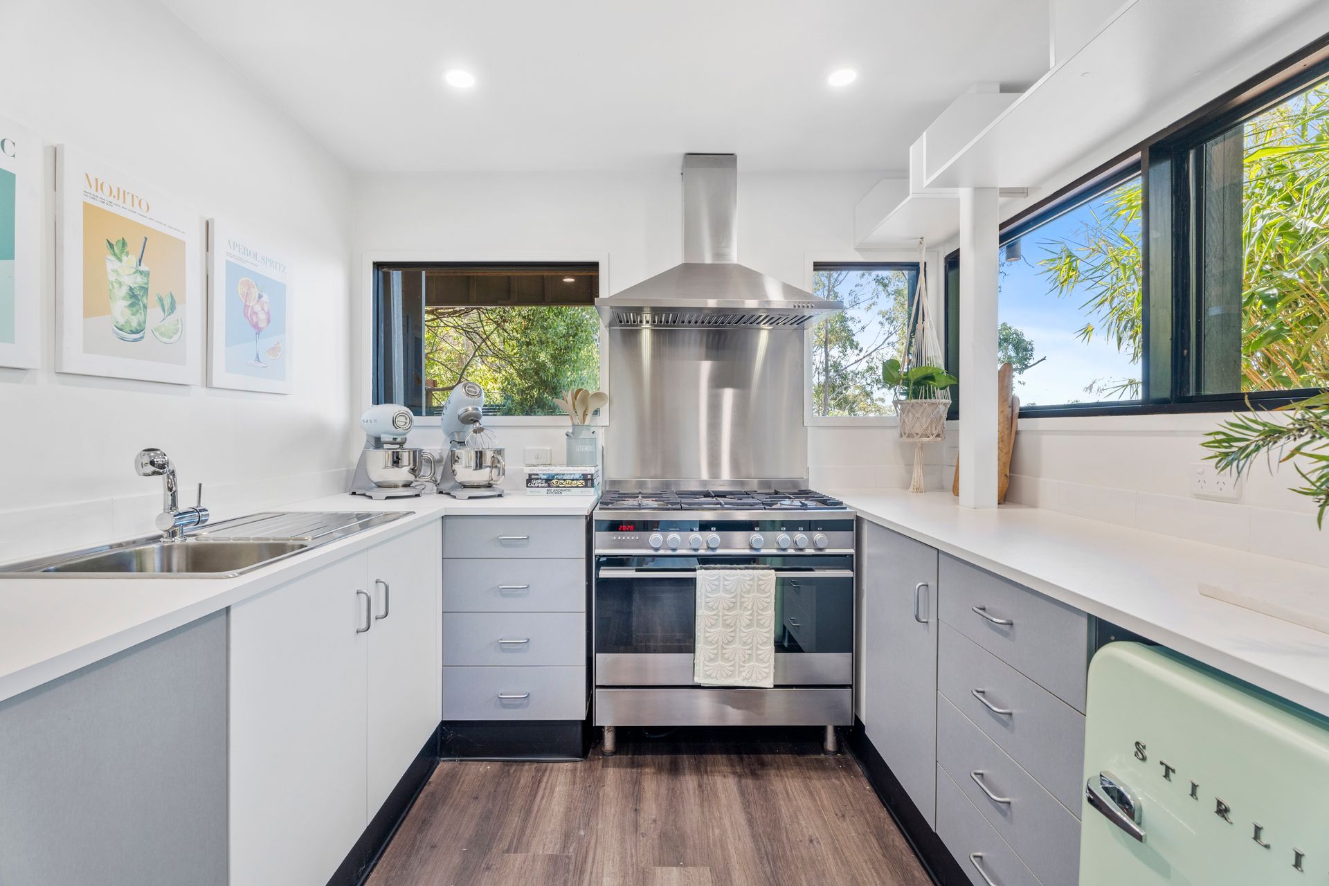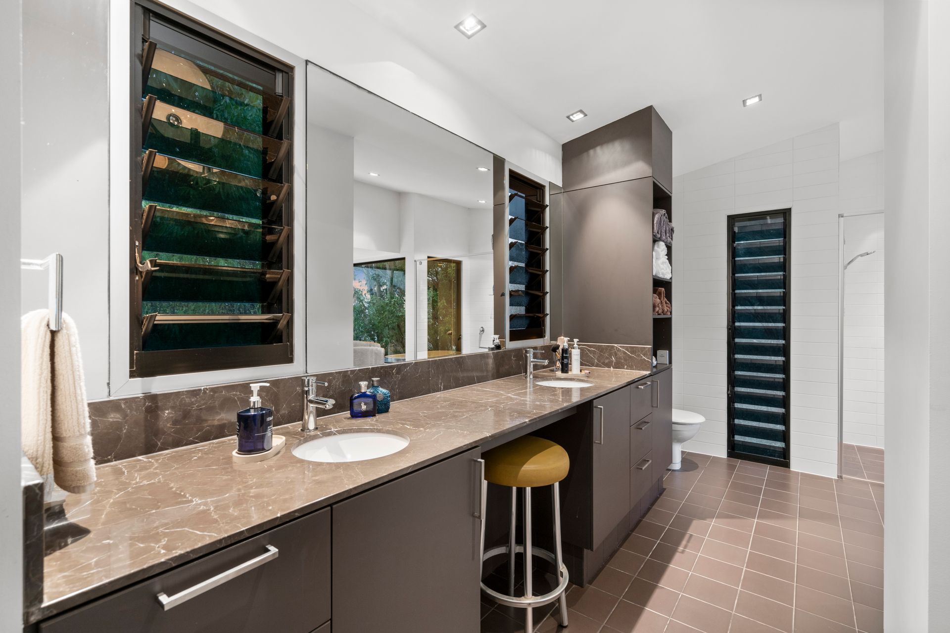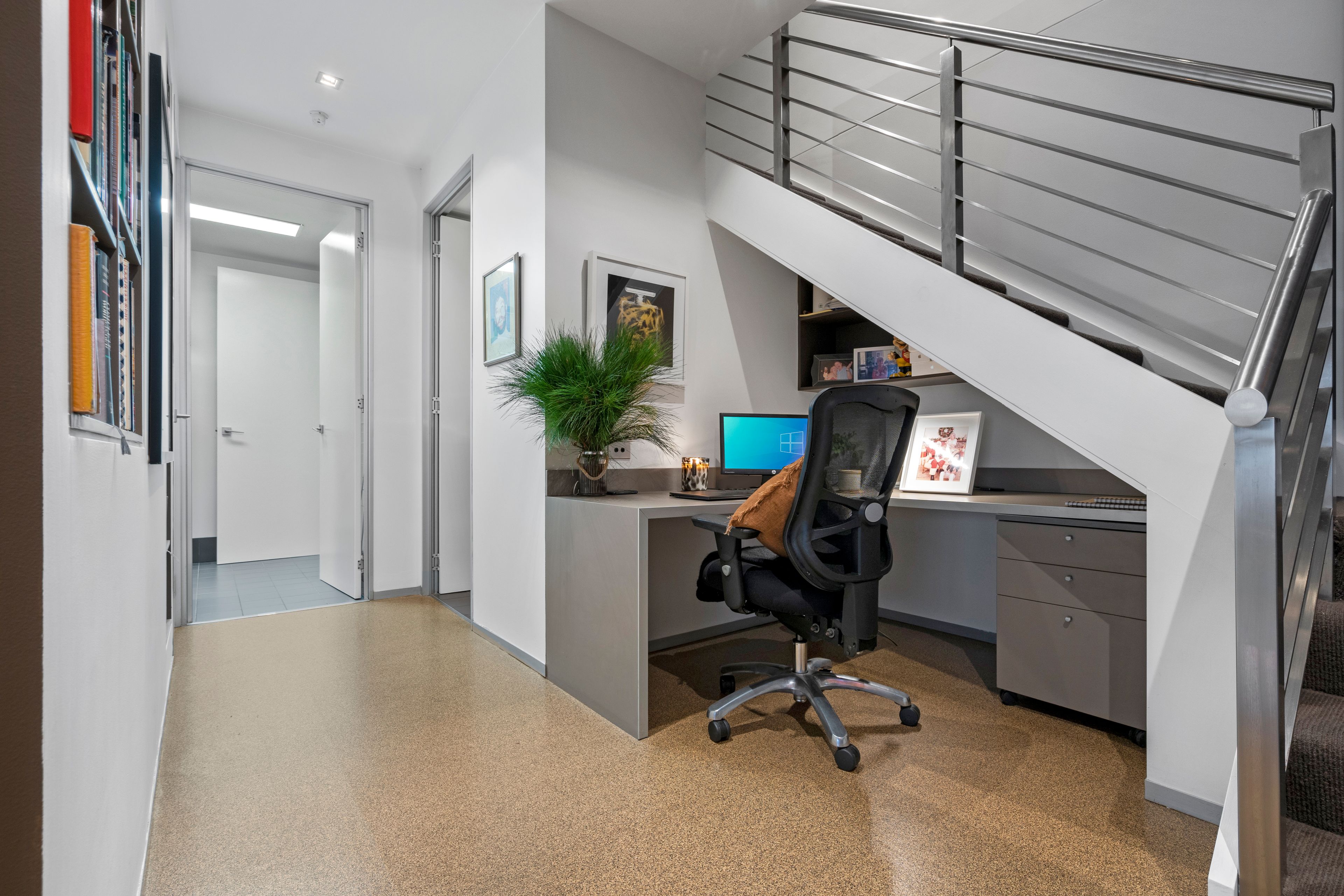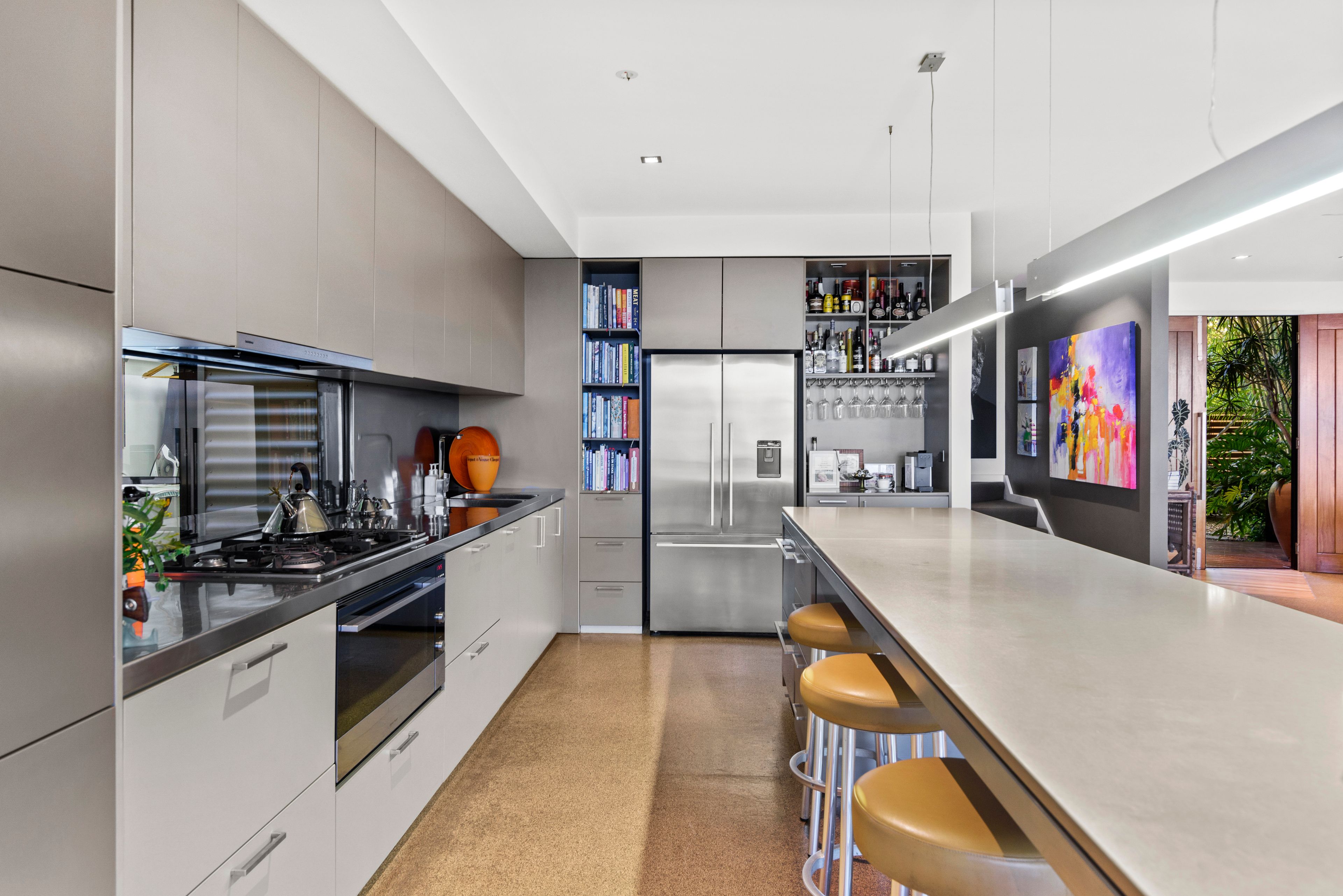 Upstairs, a private retreat awaits with three bedrooms (two of which, featuring built in desks and walk in robes), plus a kitchenette, living area, balcony, and more spectacular views to enjoy.