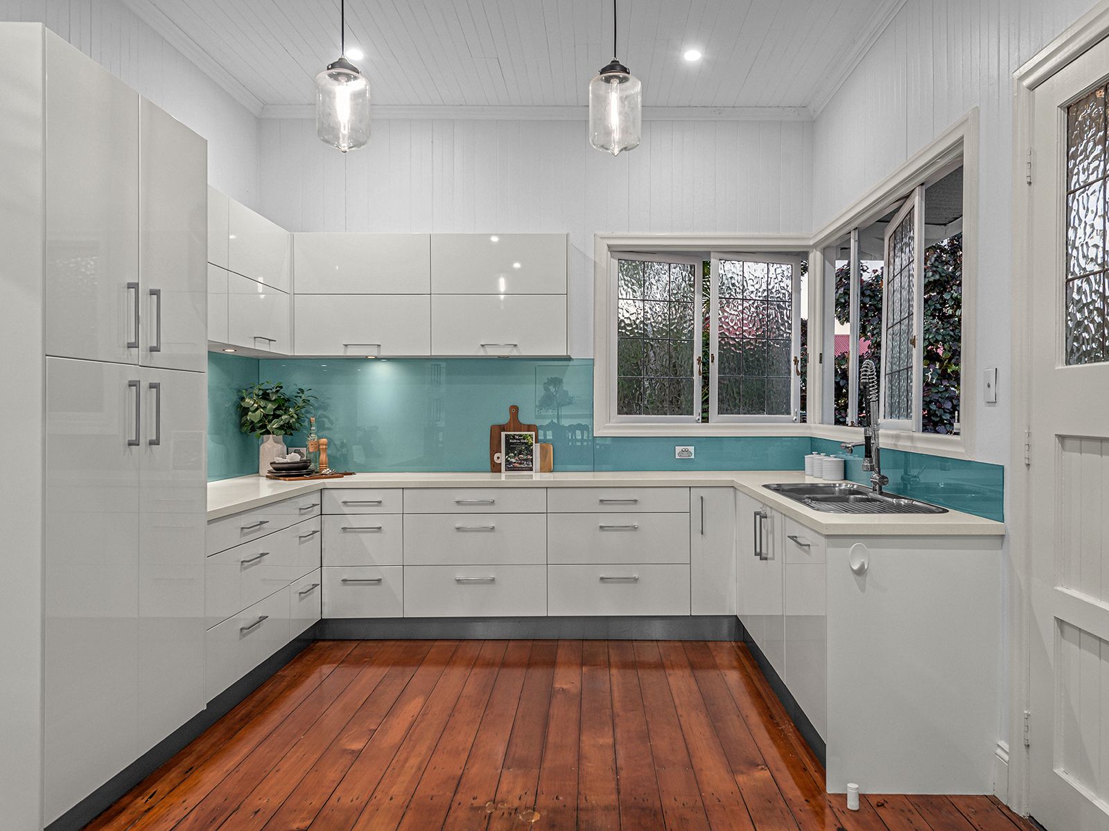This elevated Character Queenslander is situated on a blue chip 830m2 (2 lots) allotment in one of Wooloowin's quietest locations. This spacious residence enjoys 3m ceilings, restored character features such as wide timber floors, VJ walls, lead-light windows & fretwork. Boasting generous living areas, a gourmet kitchen with an abundance of bench & storage space, and an enormous rear balcony ideal for entertaining all year round
