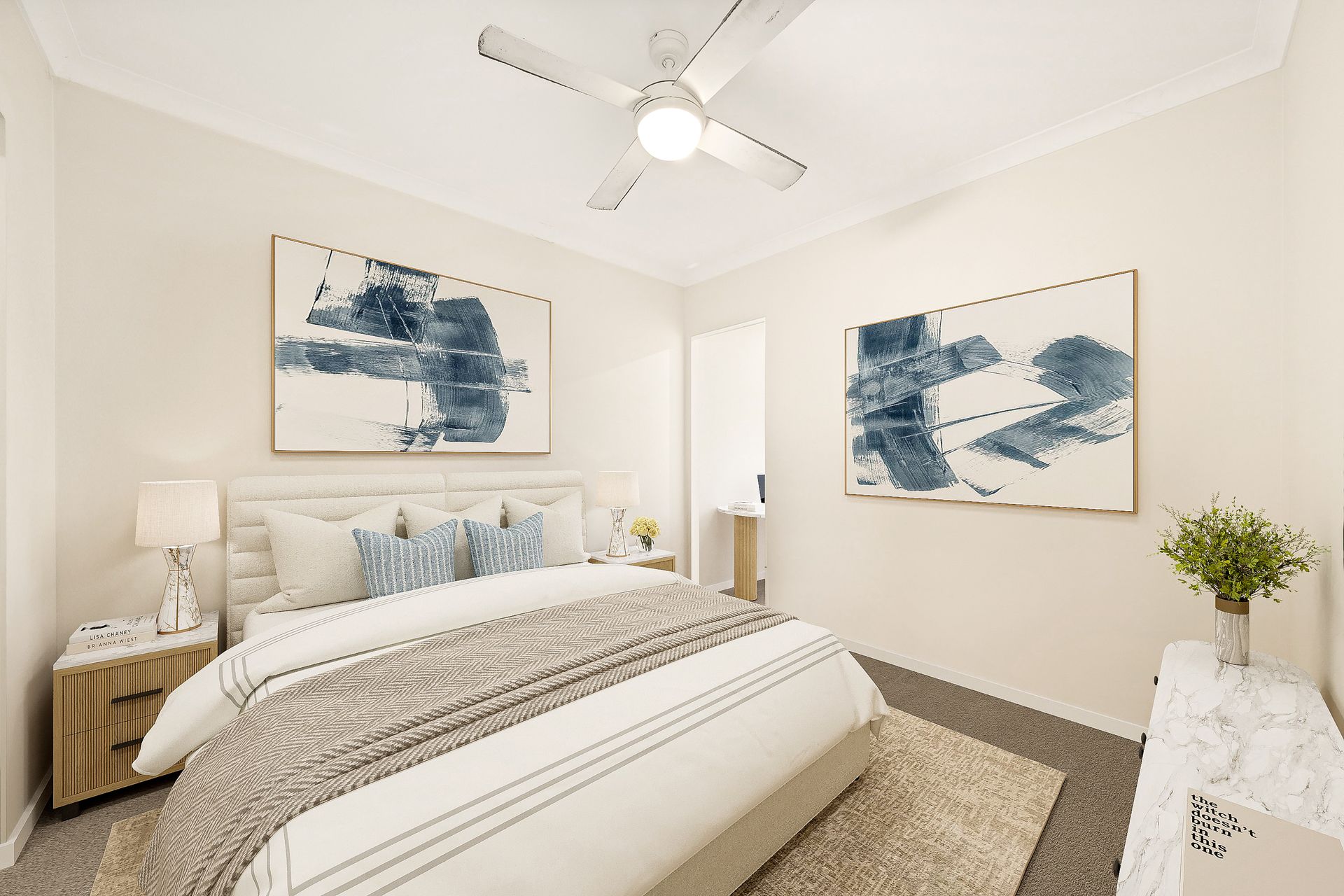 The well-appointed kitchen features stone benchtops, quality appliances and ample storage, while two generous bedrooms include walk-in wardrobes and excellent natural light. A versatile study nook provides an ideal work-from-home setup or additional storage space.
