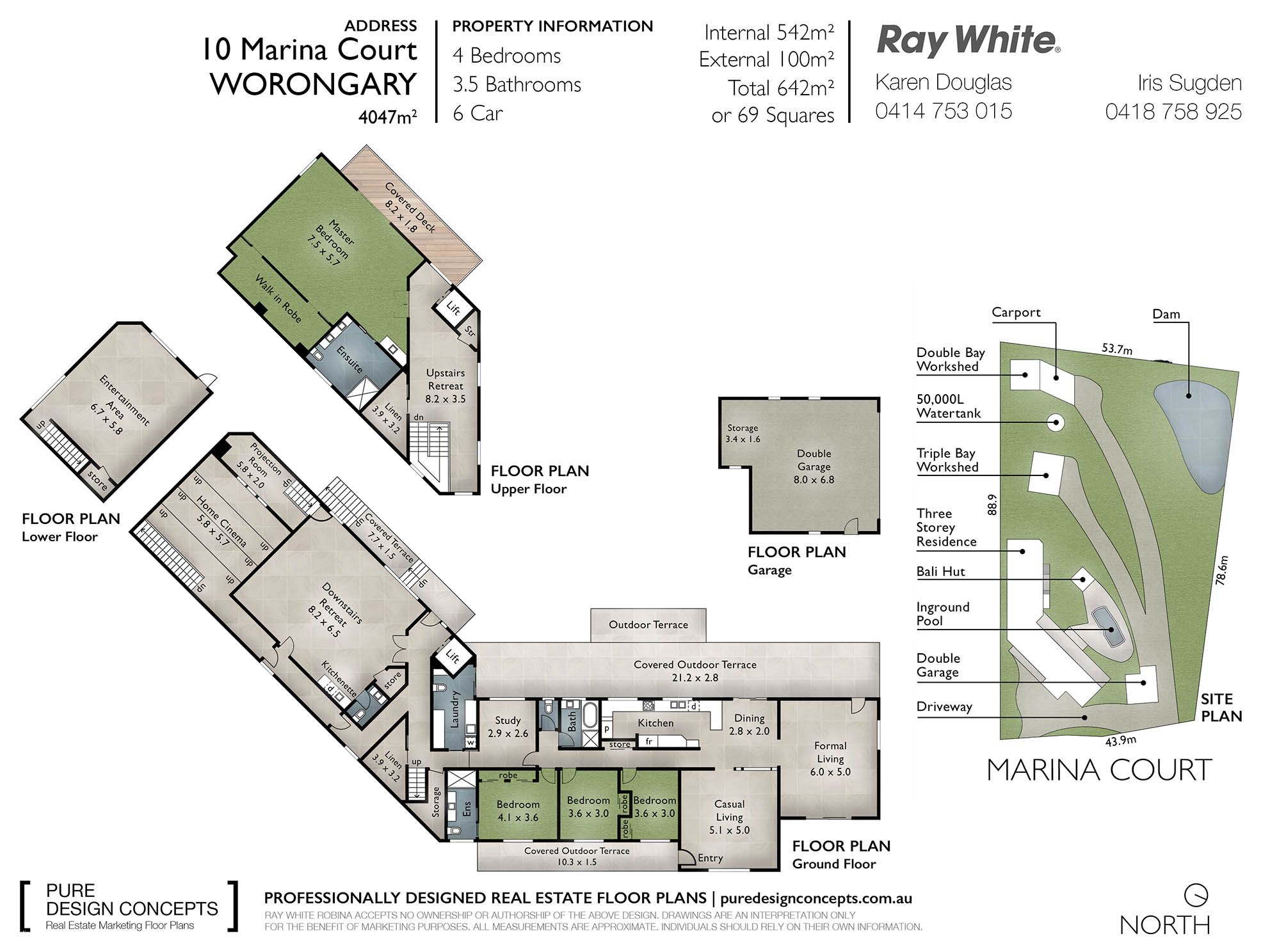 * 4 bedrooms plus study * Master bedroom retreat on separate level with balcony, customised dressing room, and contemporary ensuite * 3 bathrooms, 4 toilets * Tiered cinema with screen and separate projection room * Internal lift * Very large office/games room, with separate entrance * Modern kitchen with 900cm gas stove, plumbed fridge space, lighted pantry, and double door dishwasher * Fully renovated laundry * 3 separate internal living areas, all with access to the outdoors * Approx 22m covered entertaining area adjacent to the pool * Ducted air conditioning plus 4 split system units and fans