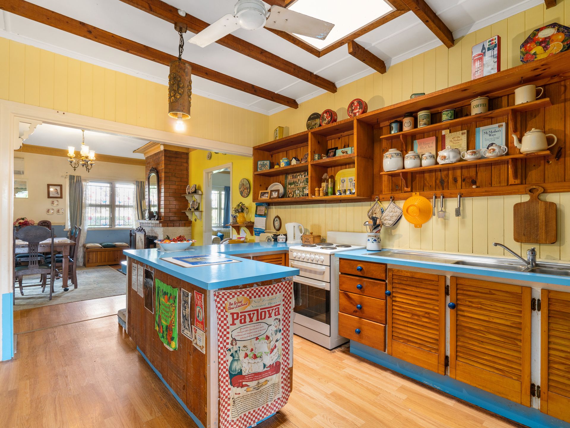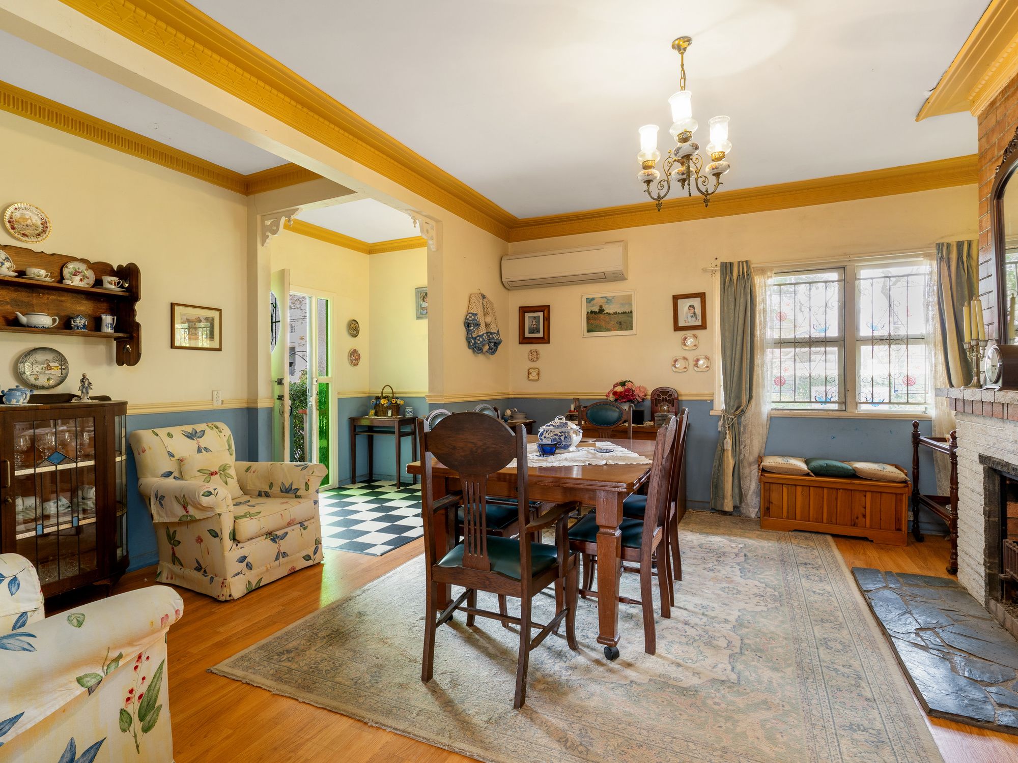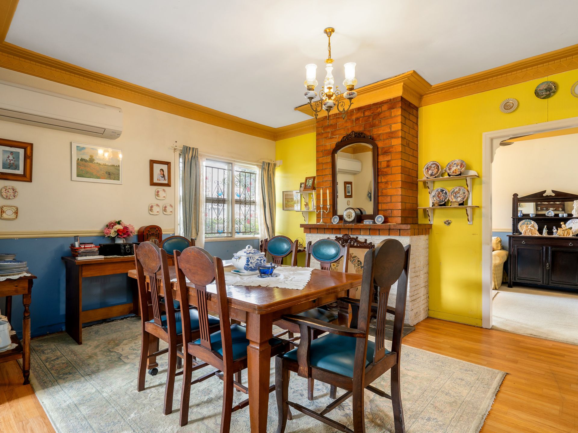 Internally - 2.7m ceilings throughout with ornamental cornicing - Master Bedroom with reverse cycle air conditioning system and ceiling fan - The second and third bedroom both have ceiling fans - Open planned kitchen with ceiling fan - Formal dining room with fireplace and reverse cycle air conditioning system - Intimate and versatile living room with ceiling fan - Fully covered large veranda with enclosed laundry and separate toilet
