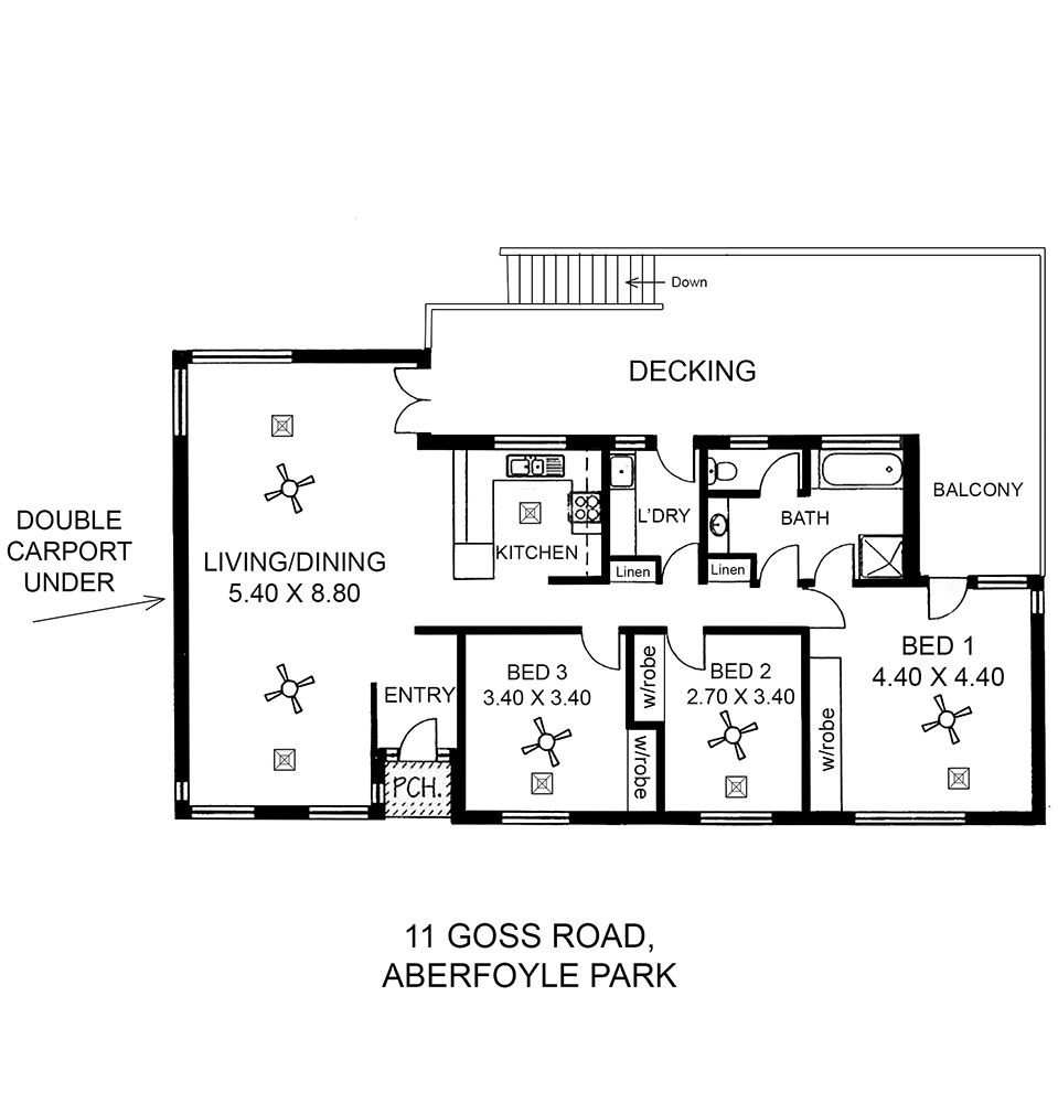 A solid red brick path leads you through the front garden and across a wooden boardwalk to the front entrance, once inside you will be delighted to see the pristine upkeep of this home, as if it were just built. A partitioned wall, well designed at the front entrance, stops prying eyes from the front door so that only welcomed guests can view the content of your home. Once you enter the home you are welcomed buy a large open plan living, Kitchen, and Dining. With new beige carpet, nine foot high ceilings and white walls the home is very spacious and a perfect canvas for you to show case your individual style. The two large corner windows in the dining area and one corner window in the living area enhance the open space with plenty of natural light flooding in. In fact all rooms captivate the natural light and feeling of space, with an abundance of well-planned storage areas, built in sliding wardrobes and ceiling fans. The kitchen with ample storage and bench space, features gas appliances and a modern stainless steel dishwasher for easy cleaning following the endless dinner parties you will want to host in your new home. The home comprises of 3 bedrooms. Two functional bedrooms are designed with built in sliding wardrobes complete with floor to ceiling mirrors and the master bedroom is fitted with double sliding, mirrored built ins for his and her space. The bathroom is elegant and fresh with a semi seamless shower, bath and single vanity. It also comprises of a private W.C. and has access from both the hallway and the master bedroom. Out the back a very generous deck wraps around the side of the house, with access from the living area, and from the master bedrooms French Doors. Looking down from the deck and on to the impressive landscaped, low maintenance garden with manicured garden beds and lush green grass, you will find it a delight to have such a pleasurable garden with such little work. Under the house is a double undercover carport for two cars and a substantial shed. There is also plenty of room under the house for additional renovations should you desire even more storage or shed space. 11 Goss road is in impeccable condition and boasts many desirable features. With such low maintenance and an already blank canvas awaiting your touch, it's hard to see this property being on the market for long.