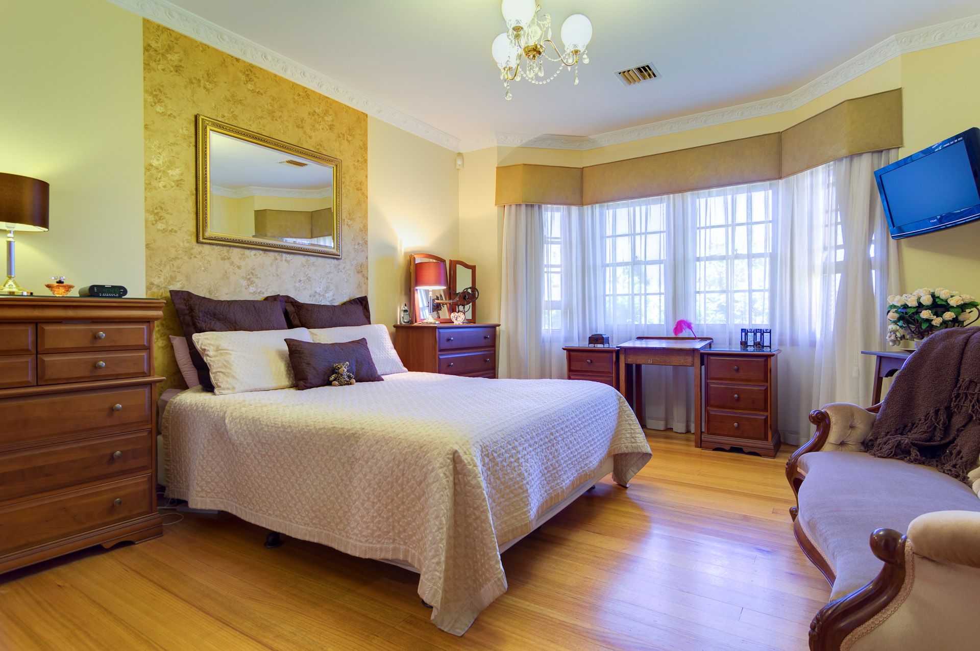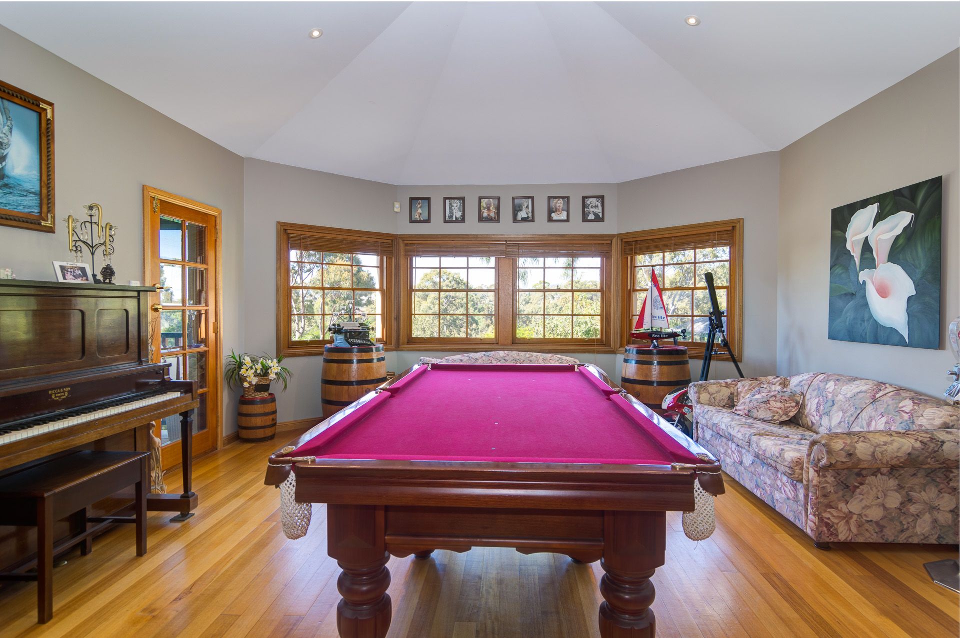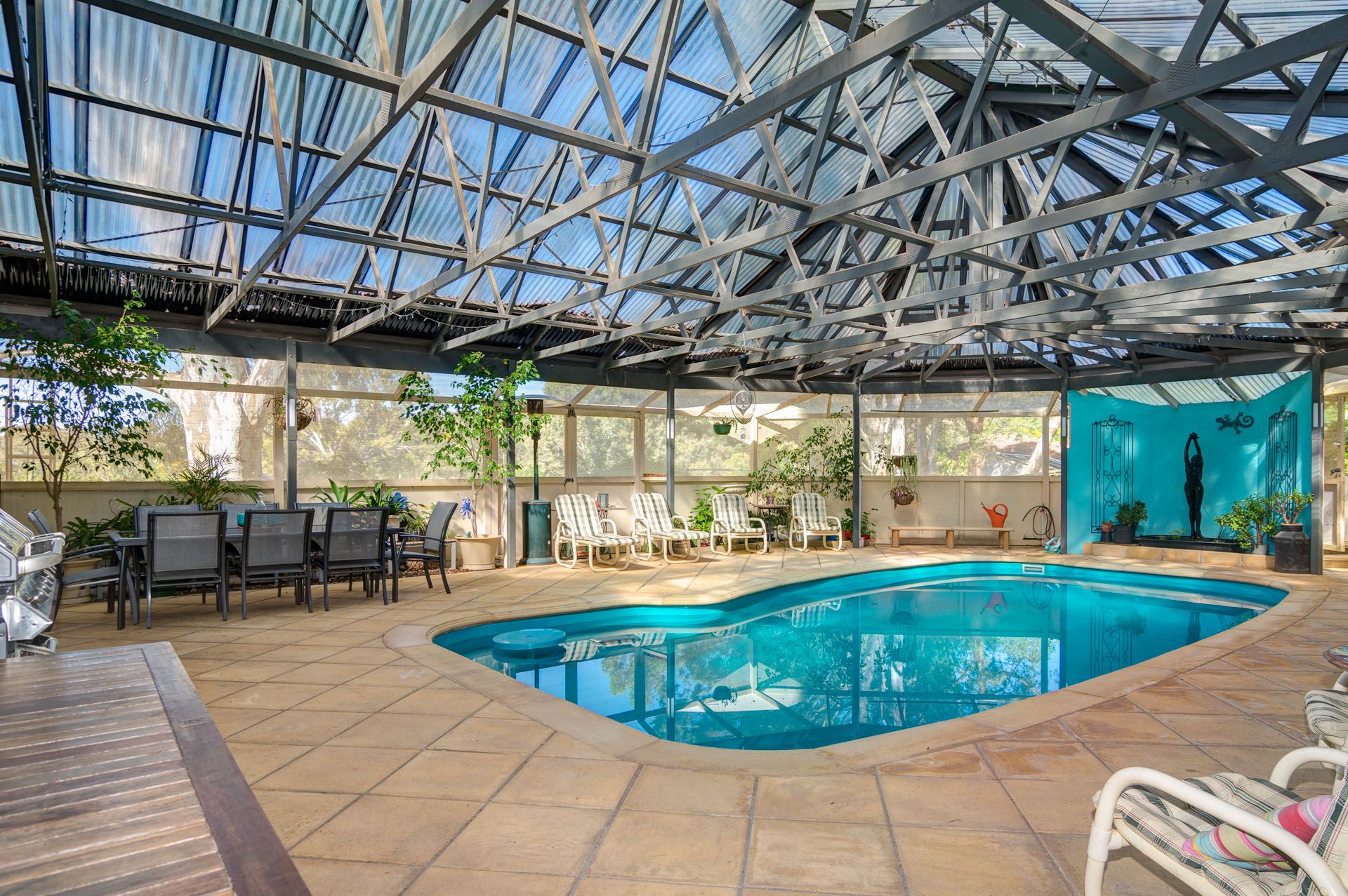 The solar heated pool and gas heated spa are under the cover of an enormous outdoor pergola, for year round enjoyment. Downstairs is a tradesman's paradise with vast areas of workshop and garage space.