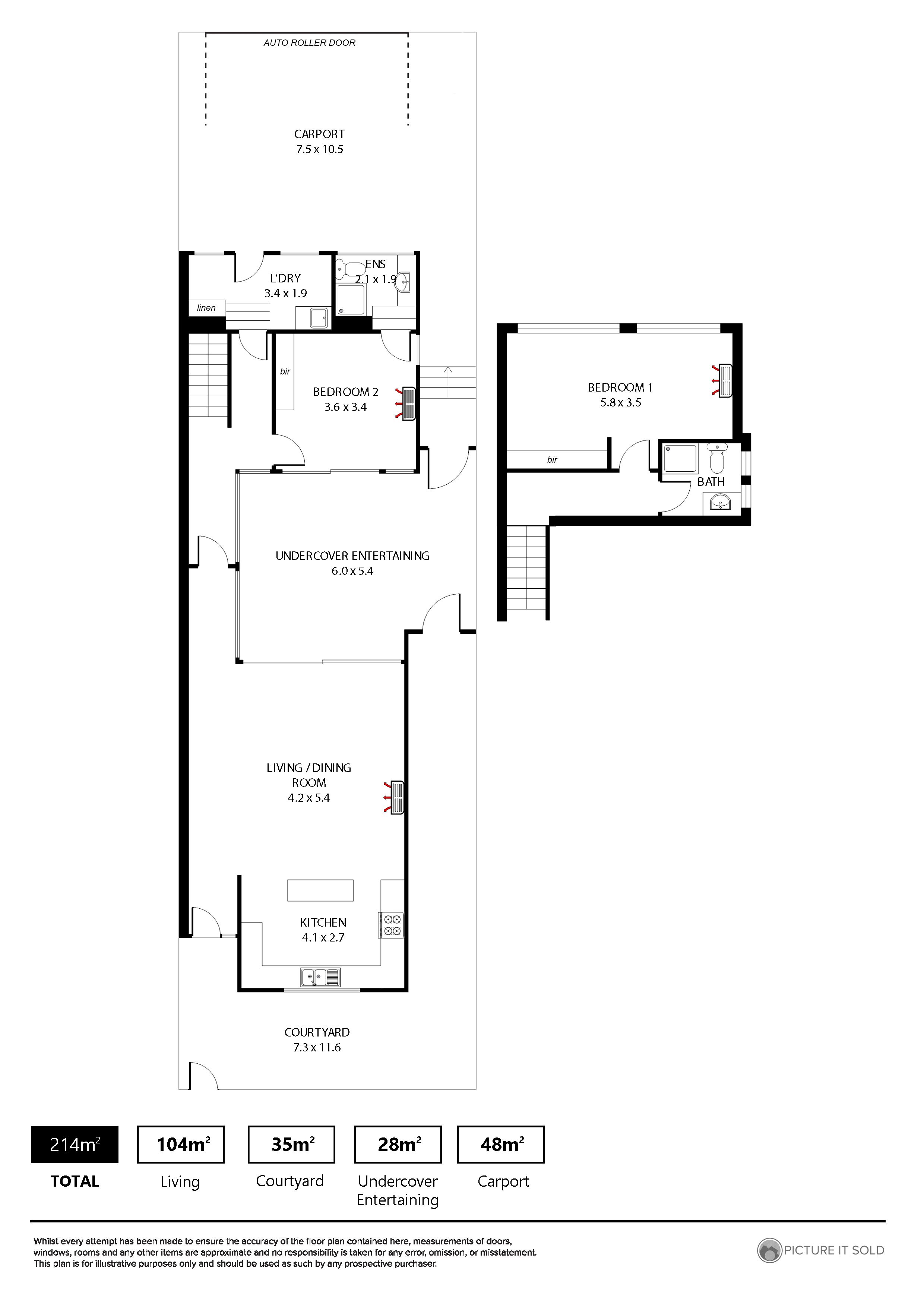 * Torrens Title * 2 large bedrooms, both with full ensuites and built-in robes * Spacious, open plan living & dining area * Stylish updated kitchen with gas cooking, dishwasher & stone bench tops * Lovely private central courtyard perfect for entertaining friends * Convenient separate laundry * Reverse cycle air conditioning on both levels * Good sized allotment of approximately 209sqm * Private front courtyard with valuable side access * Double side by side secure garage with automatic roller door to private rear laneway * Investors note - currently leased to fantastic tenants until February 2024 at $600pw with maybe some flexibility with end of lease through mutual negotiation.