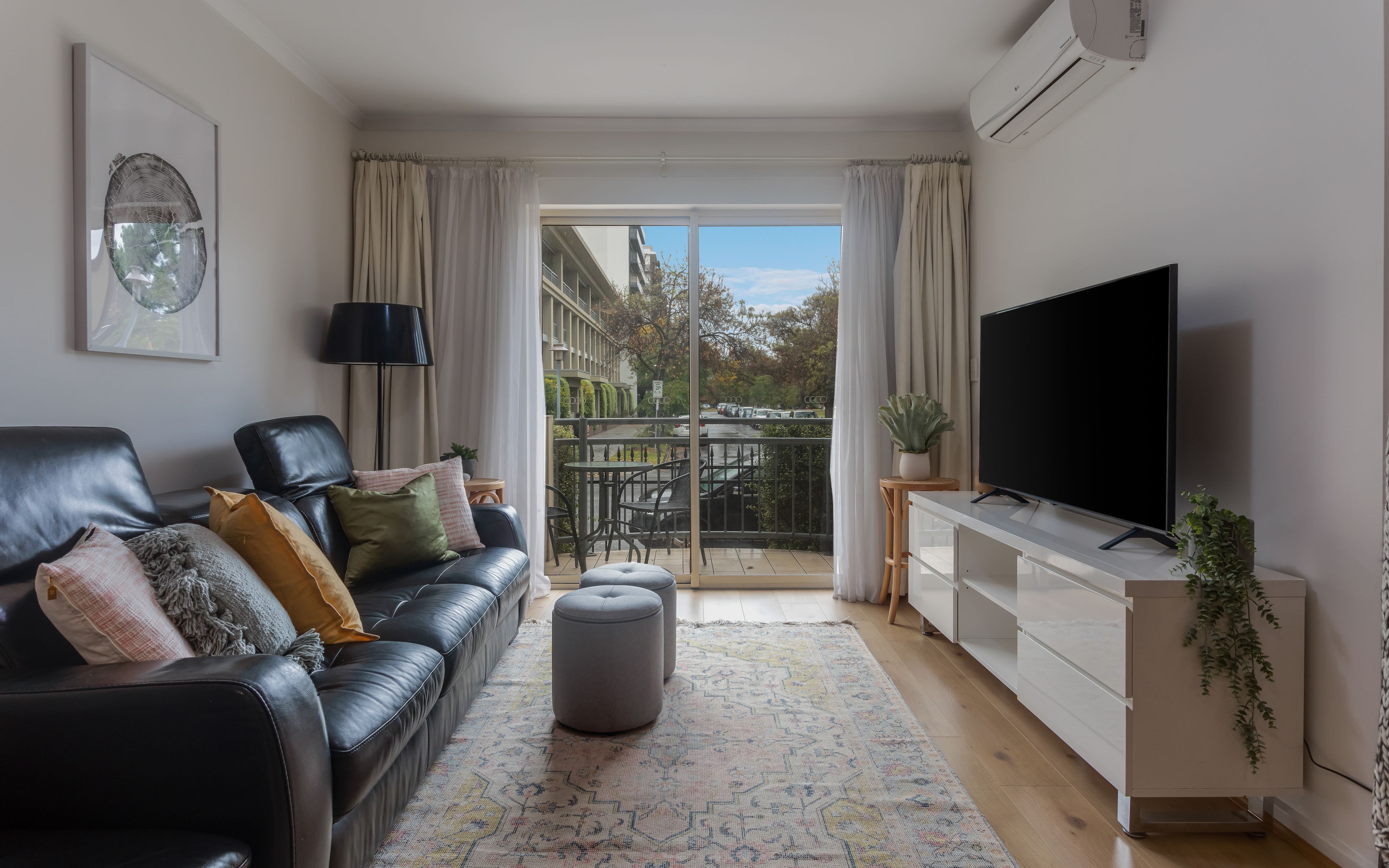 * 3 Spacious Bedrooms, main with built in robe * Light filled open plan dining/ lounge looking out to park * Modern tidy kitchen * Spotless bathroom with integrated laundry, * Reverse cycle air conditioning * Quality furniture can be negotiated on if interested in continuing airbnb * Pleasant neutral tones throughout with quality window treatments * Secure access * Lovely private balcony with leafy Hurtle Sq outlook * 1 Secure underground car park