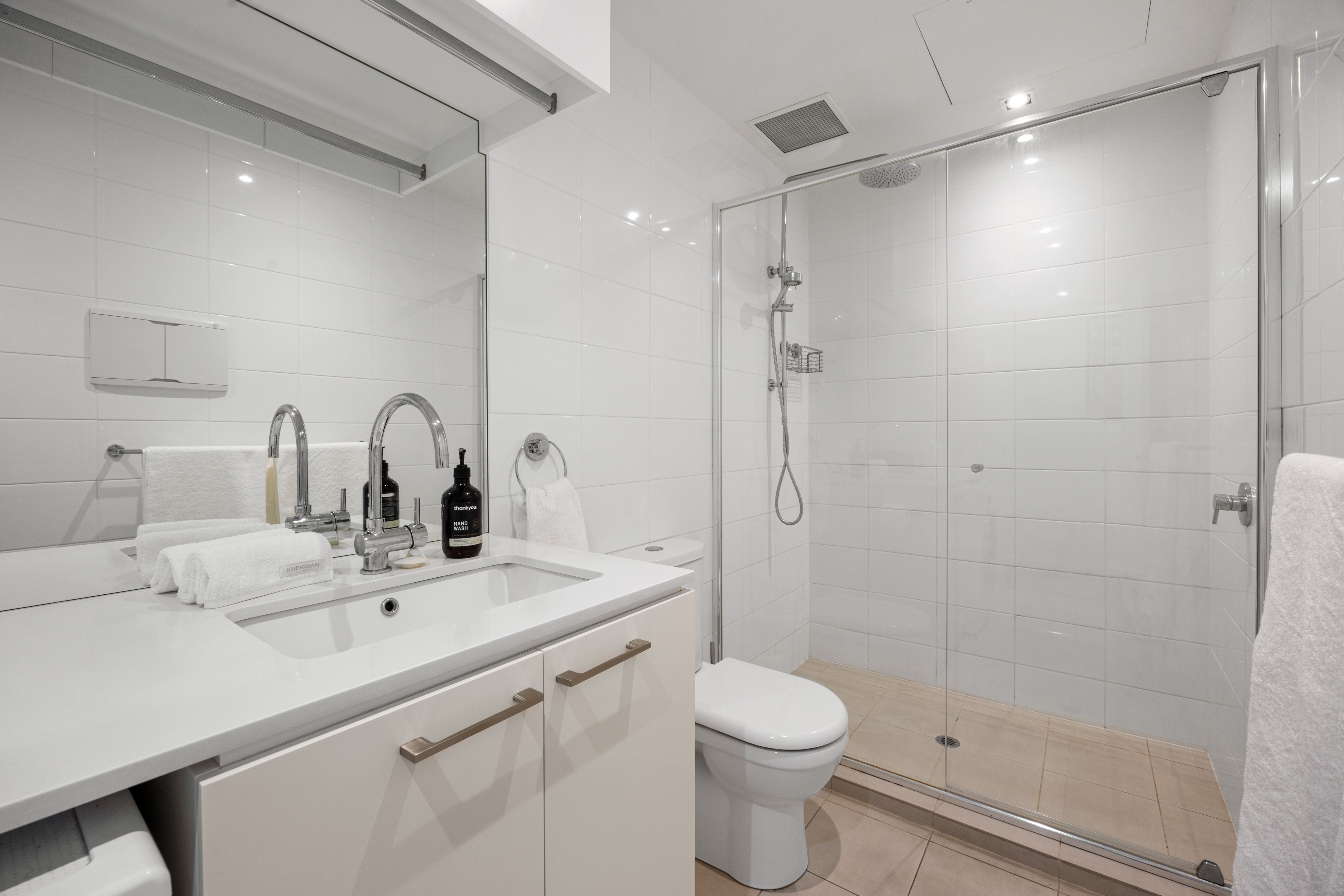 - Sparkling bathroom with plenty of storage