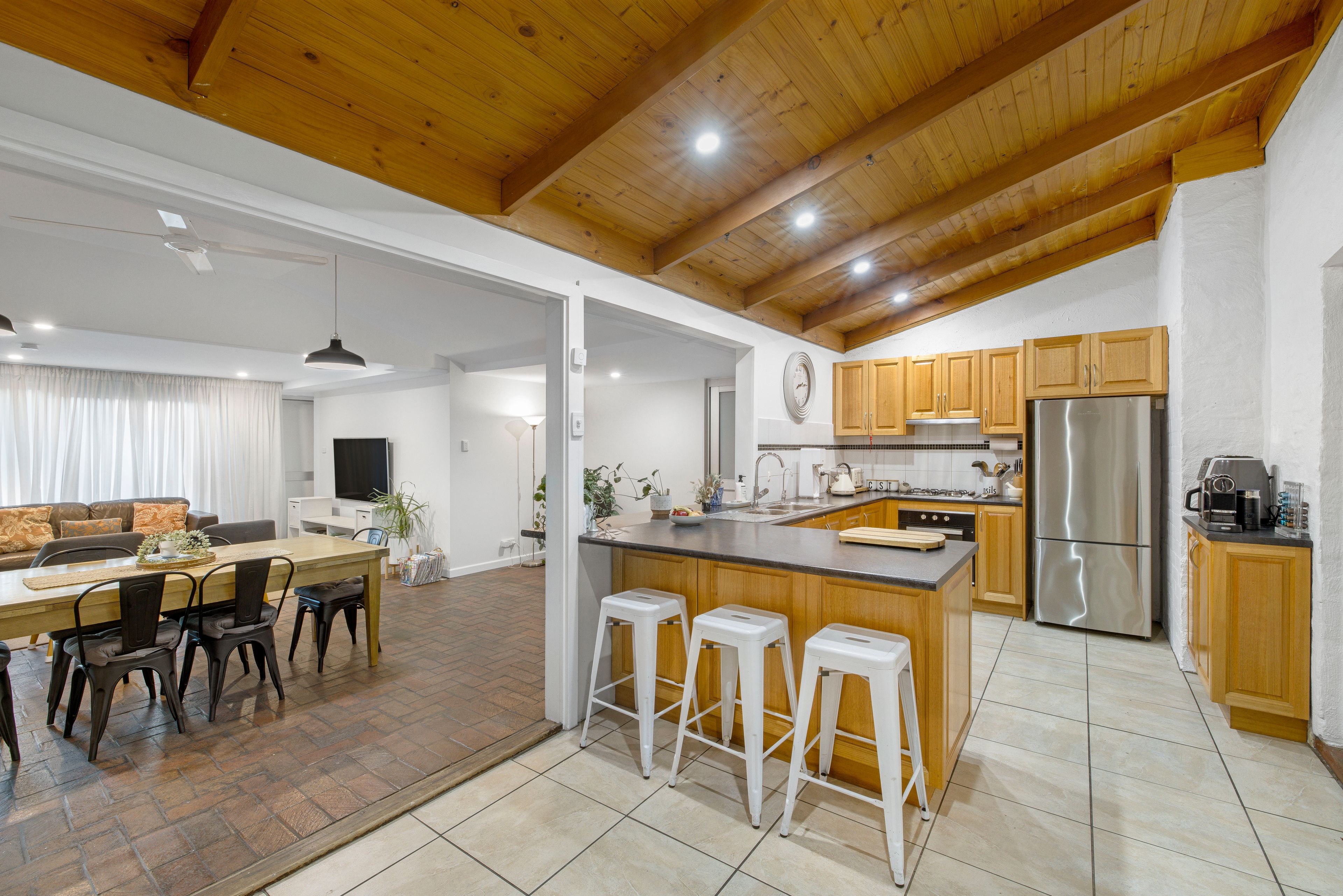 Experience the perfect blend of timeless charm and modern convenience in this stunning character bungalow, nestled in the heart of Albert Park. Thoughtfully designed with beautiful finishes, the home features vaulted ceilings with elegant wooden panel detailing in the kitchen and floor-to-ceiling windows that fill the open-plan living and dining area with natural light, creating a seamless indoor-outdoor flow. Ideal for families, the spacious layout includes four generously sized bedrooms, plus a versatile study or nursery. Adding to its appeal, a fully self-contained granny flat or teenager's retreat offers a sixth bedroom, kitchen, and bathroom-perfect for multi-generational living or as an income-generating investment.