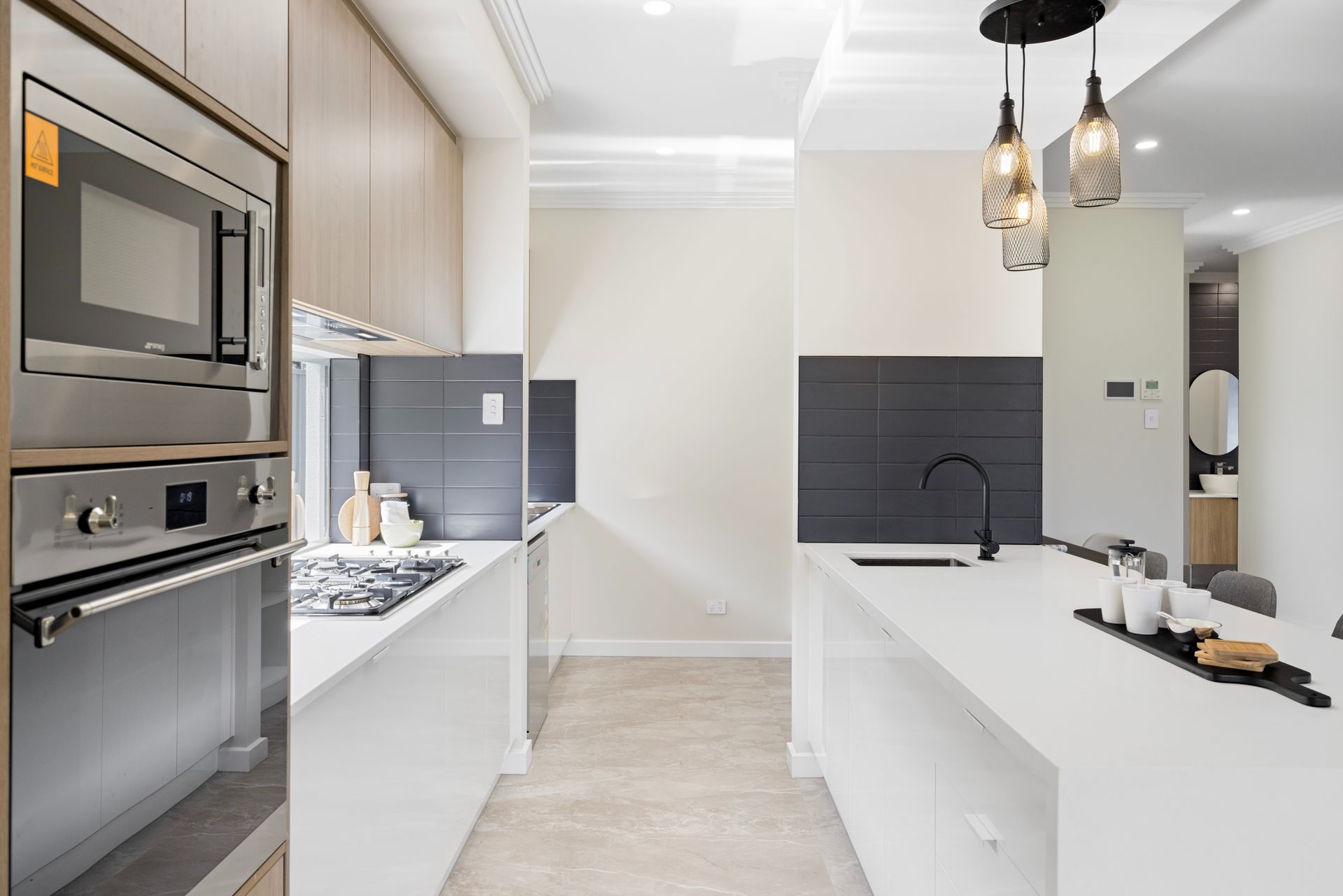 The kitchen is the heart of any home, this one will take your breath away - sleek timber-look cabinetry in the designer kitchen with full butlers pantry, SMEG appliances, gleaming stone bench tops, and marbled floor tiling brightened with ambient downlights throughout - there is an unmistakeably light and fresh feeling to this beautiful home.