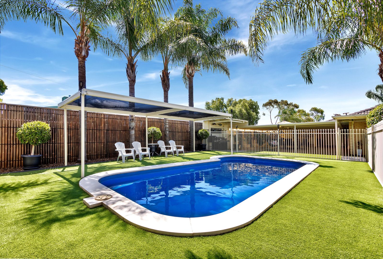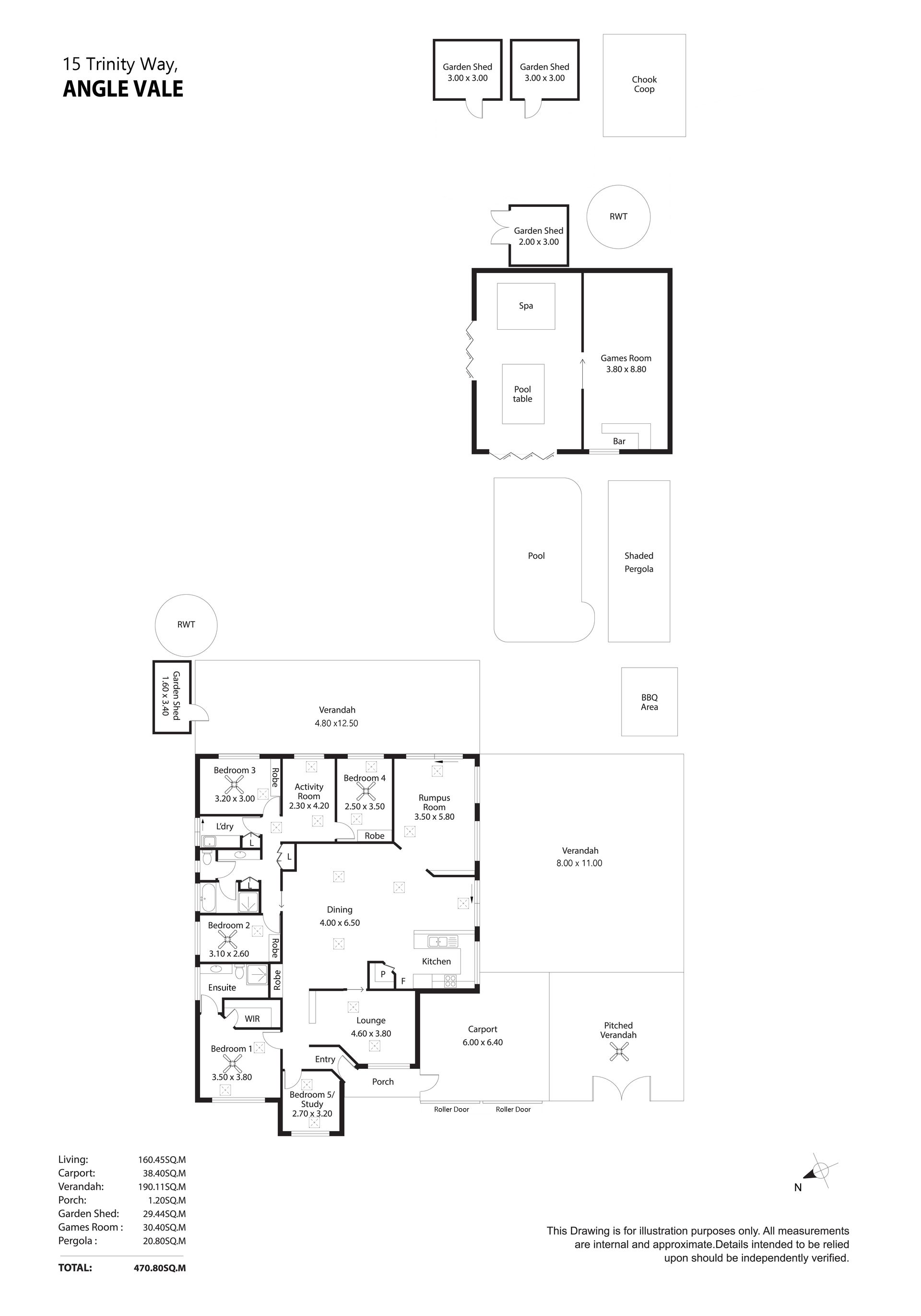 Features: • Master bedroom equipped with ceiling fan, ensuite and walk in robe • Rooms 2, 3 & 4 with ceiling fans and built in robes • Home office/5th bedroom • Formal lounge room for relaxation and intimate gatherings • Main bathroom, with bath, shower and separate toilet • Laundry with plenty of storage space and access to the enclosed cat/animal run • Stunning kitchen, living and dining featuring quality stainless steel appliances, ample storage and a large island bench that doubles as a stylish breakfast bar • Undercover verandah with an outdoor BBQ area, ideal for formal and informal entertaining • Sparkling in ground salt water, solar heated pool • Enviable games room with a bar and air conditioning • Maintained gardens and 4 concreted sheds, two with solar lighting • Secure double carport with rollerdoors • Ducted evaporative air conditioning throughout home • Two 22 thousand litre Rainwater tanks • 13KWATT Solar system