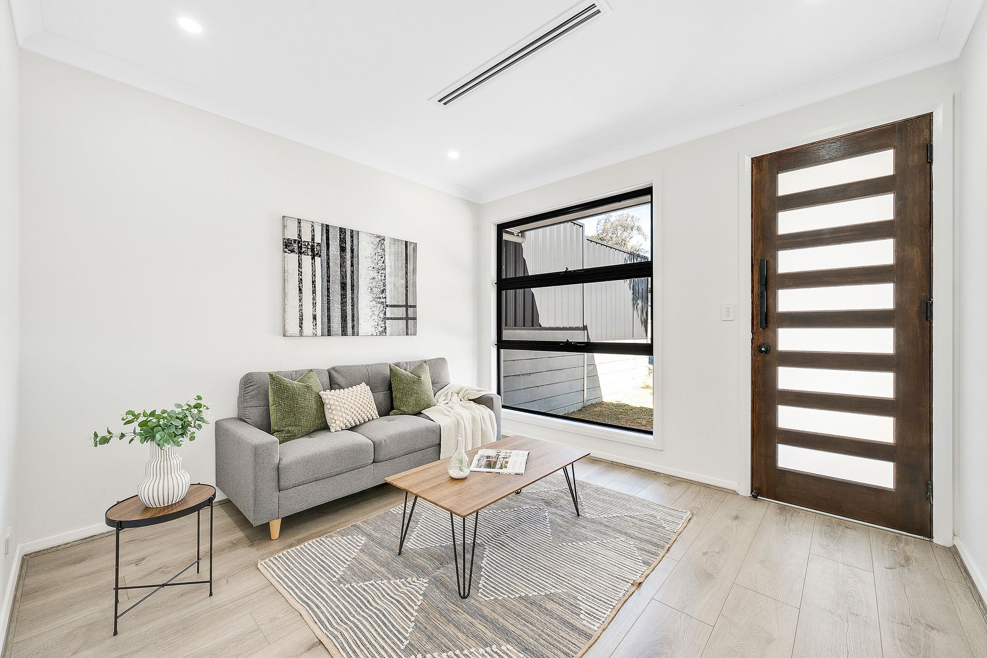 Sleek timber grain floating floors, fresh neutral tones, LED downlights and ducted reverse cycle air-conditioning ensure a comfortable interior decor where natural light gently infuses through clever window placements.