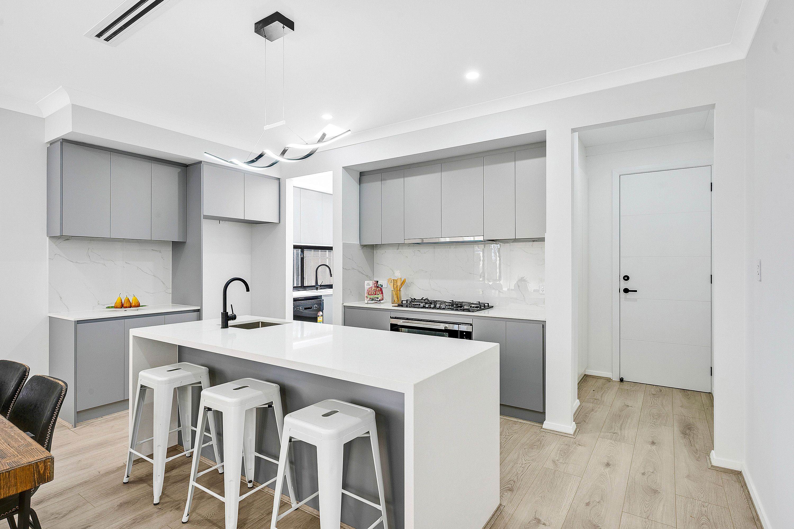 Let your MasterChef creative energy flow as you prepare the daily meals in style with stainless steel appliances, composite stone bench tops, waterfall island breakfast bar, generous butler's pantry, tiled splashbacks and stunning pendant lighting.