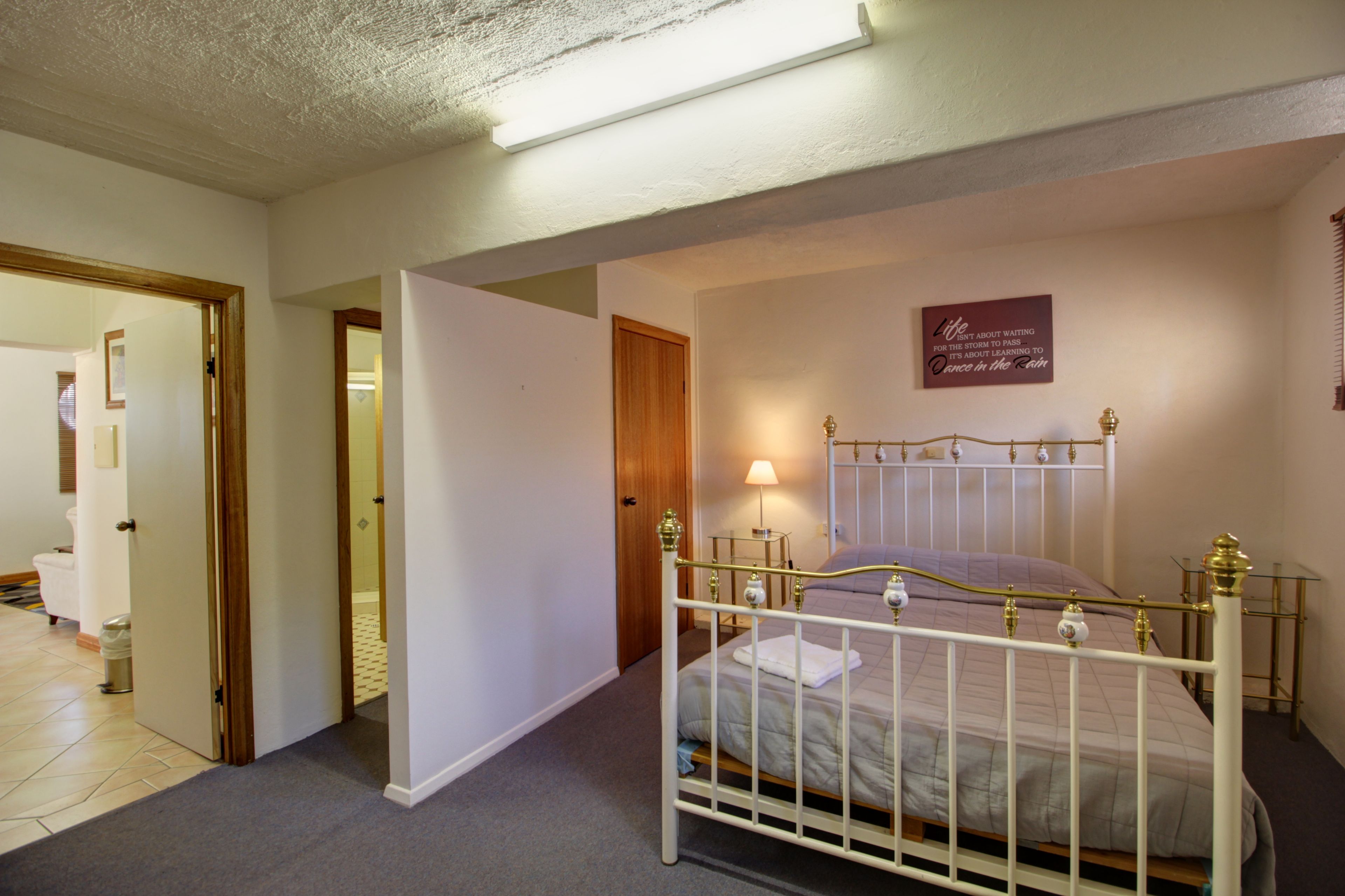 • 1 bedroom with walk-in robe • Kitchenette with fridge, microwave and convection oven • Spacious lounge room with reverse cycle air-conditioning • Bathroom complete with corner shower, vanity and toilet • included in weekly rent is electricity