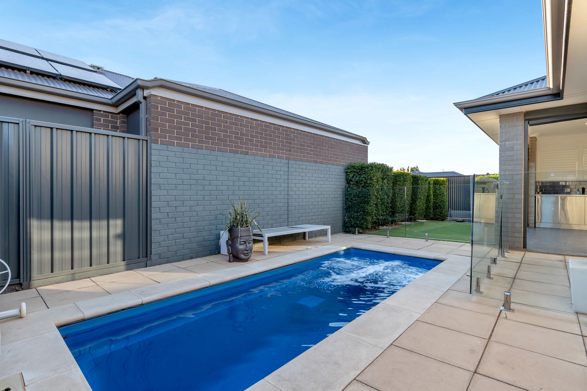 Features Boast: • 4 spacious bedrooms • Bedroom 2 equipped with built in robe • All bedrooms with quality carpet • Bedroom 1 with MASSIVE walk-in robe, double access and ample storage area • Bedroom 1 stylish ensuite • Ceiling fan in bedroom 1 • Dual shower in ensuite • Vanity in ensuite with dual basins • Main bathroom with toilet and open shower and neutral colours • Bedroom 4/ theatre area with outdoor alfresco area and sliding doors • Modern stylish and swish kitchen • Dual ovens with electric cooktop and rangehood • Dishwasher • Butler's pantry with ample storage and extra appliances • Sink in main kitchen and butler's pantry • Soft touch cupboards • Huge open plan lounge dining area • Tiled in main living areas • Plantation shutters in Lounge/ Dining area, alfresco area and bedroom 3 • Downlights fitted throughout • Huge laundry area with ample storage • Built in linen press • Double car lock up garage with panel lift door • Extra storage area in garage suitable for a bike • Huge 4.9M X 4M tiled outdoor alfresco area with built-in stainless-steel bench tops and built in BBQ with huge fridge • Lock out blinds in alfresco area • Ceiling fan in alfresco area • 2.7M Ceilings throughout home • Artificial lawn to front and rear gardens • Fibreglass pool to rear of property • Sliding door access to pool from bedroom 1 • Solar panel system for energy efficiency • Ducted reverse cycle air-conditioning for all year comfort • Convenient location in the Blakes Crossing Precinct