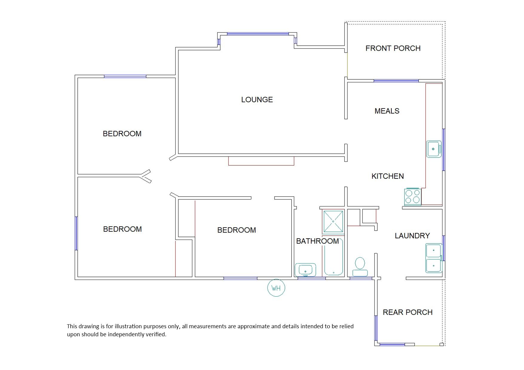 Light and bright kitchen with gas oven and enough room for a family dining table. Spacious lounge room with split system air conditioner, gas heater and ceiling fan. Rear porch, front porch with blinds and roller shutters along the front.