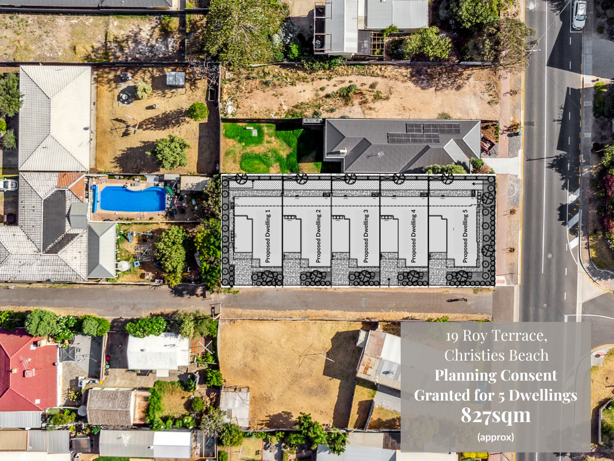 Notable Features: • 827 square metres (approx) • 18 metre frontage (approx) • City of Onkaparinga Council • Housing Diversity Neighbourhood Zone • Planning Approval Consent granted for 5 new dwellings • Community Titled residences • Street facing • 2 off street car parks