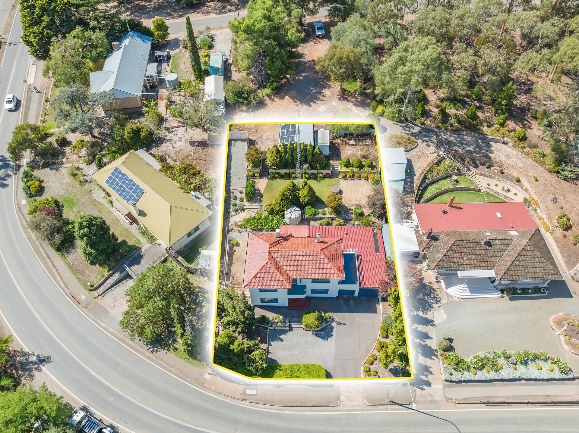 The features continue: • Tiered verdant garden offering a paved area with a fire pit for a second entertaining space. • Irrigation system through the garden • 2.1KW Solar • Instant gas hot water • Rainwater and mains connection • 10ft ceilings • Spacious 1090m2 block