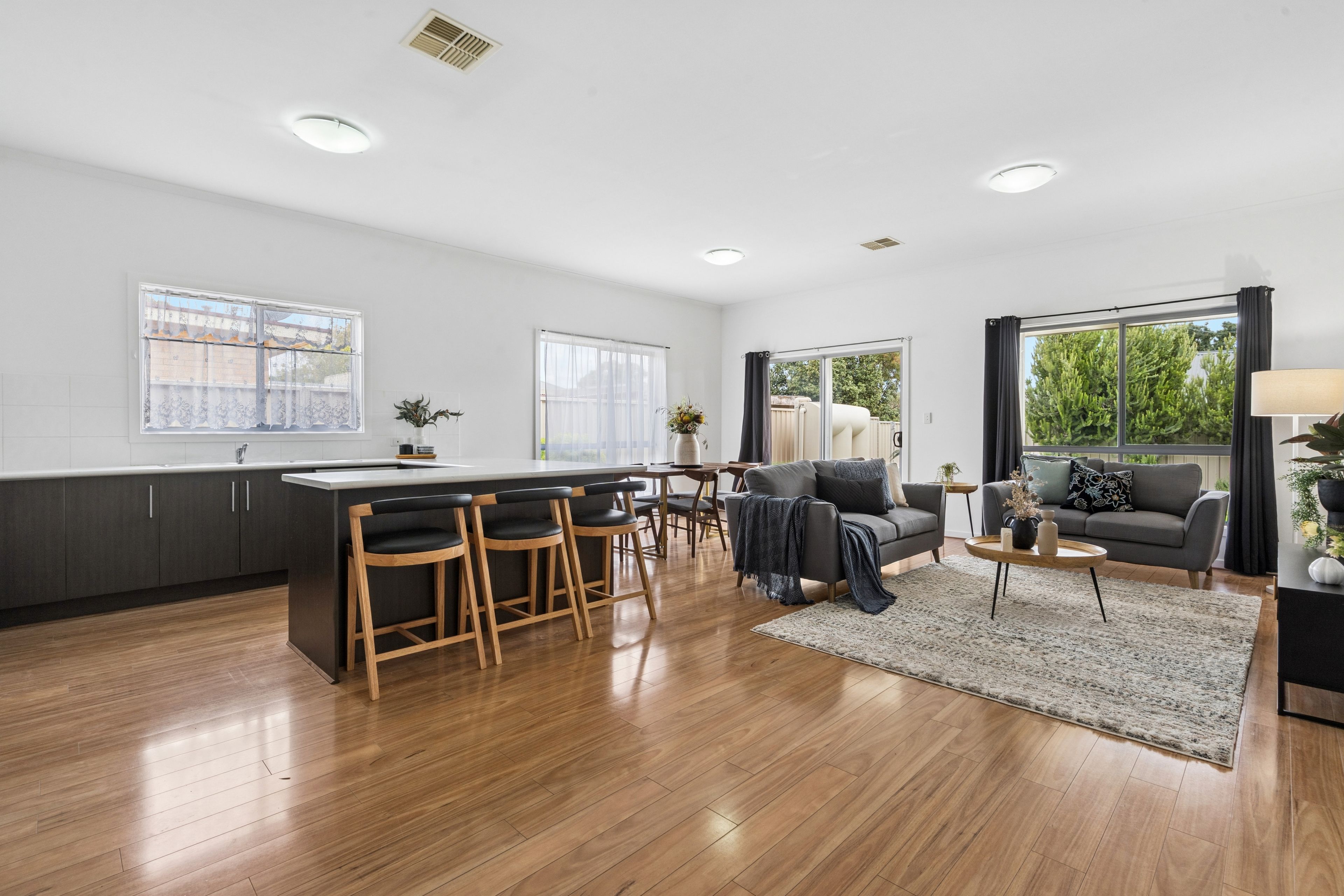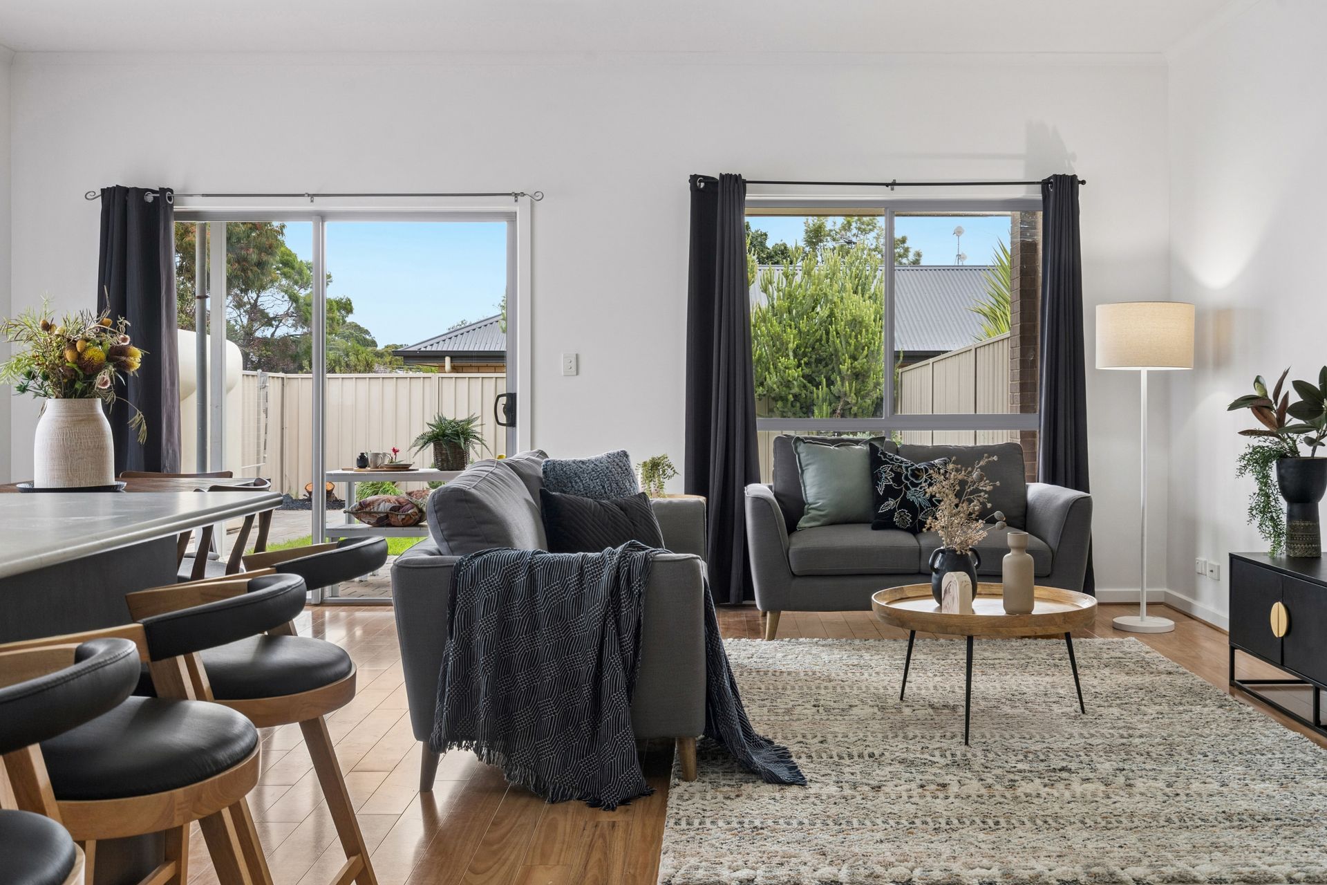 The expansive open-plan living and dining area is anchored by a spacious kitchen that would excite any home chef. Large sliding doors provide a seamless transition to the outdoor alfresco area, creating a cohesive indoor-outdoor flow that makes the most of the low-maintenance backyard. Whether you're hosting a weekend BBQ or enjoying a quiet coffee, the privacy and style of this home are unmatched.