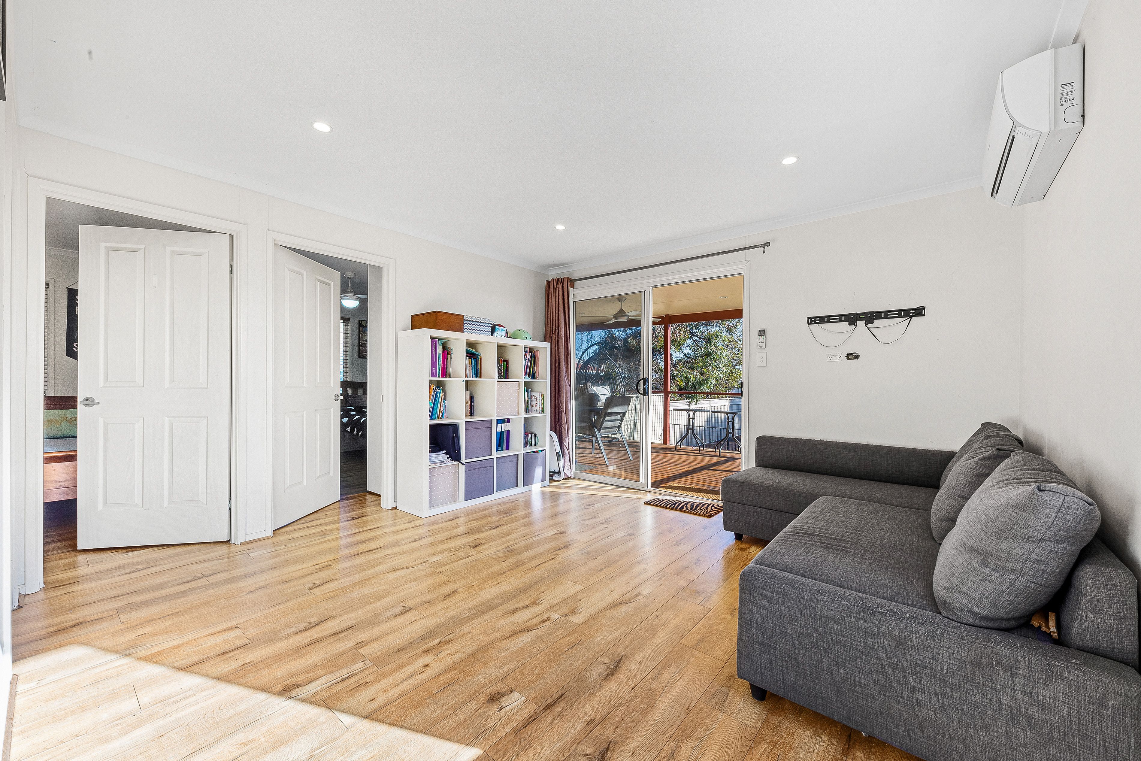 A cosy kitchen overlooks a combined living/dining room where an L-shaped configuration offers plenty of space for the family to relax together. When it's time for casual entertainment, a bright family room with split system air conditioner opens directly onto a raised deck, combining indoor and outdoor living with a seamless synergy. Enjoy the good life as you watch the sunset over the suburbs while the kids play in the deck lined swimming pool.