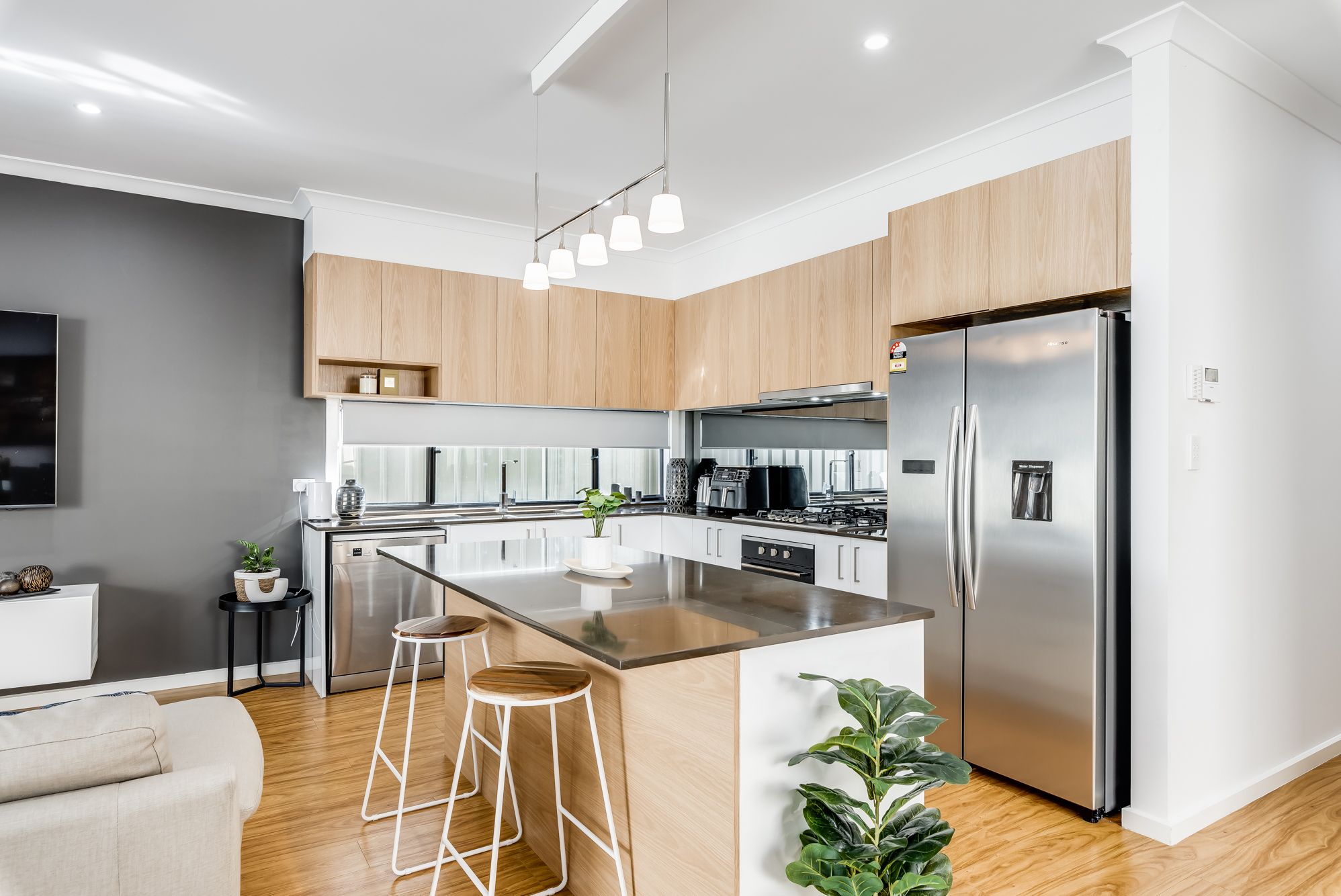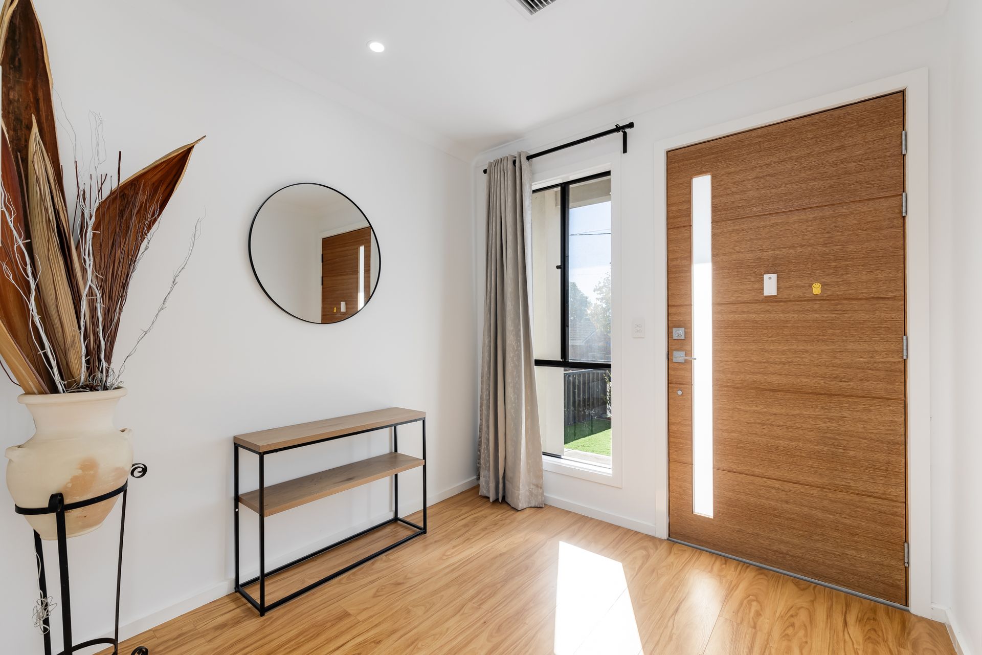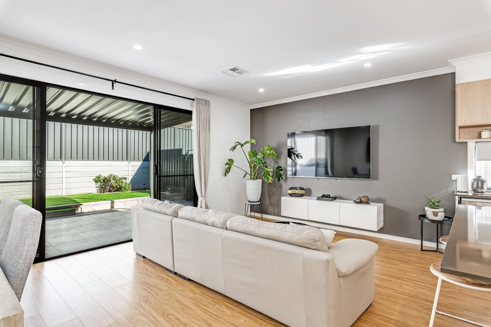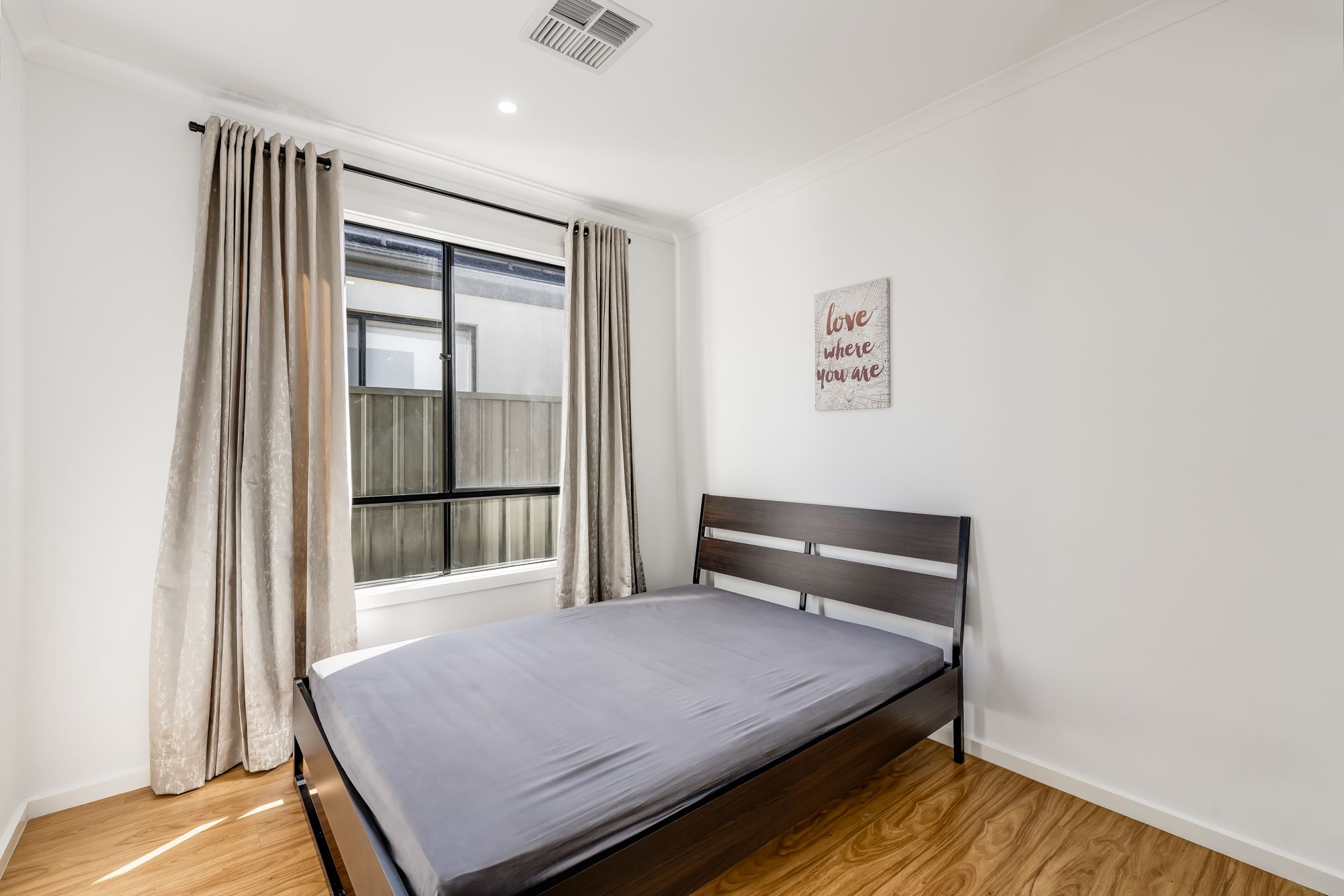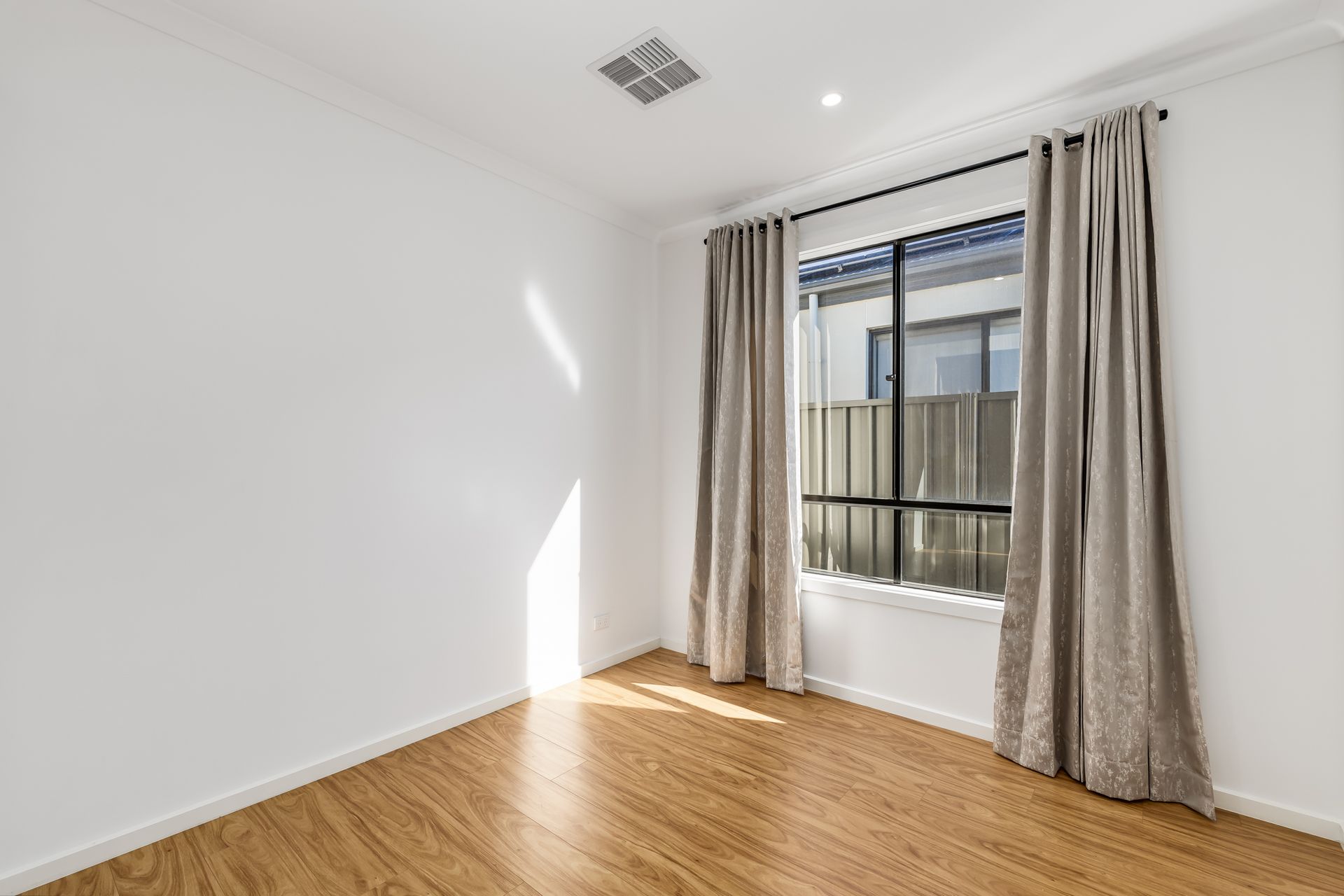 The features we love about this home include; * Study area upon entering the home. * 3 Spacious bedrooms, Bedrooms 2 & 3 including built-in robes with mirror panel doors. * Master bedroom with built-in robe and stunning ensuite. * Floating floorboards and 2.7m ceilings. * Modern kitchen overlooking the open plan living and dining, composite stone bench tops, island breakfast bar, pendant lighting, stainless steel appliacnes, recessed double sink, black mirror and window splashbacks plus ample bench and cupboard space. * Main bathroom with open vanity servicing residents and guests, floor to ceiling tiles, separate toilet, semi framless shower screens and bathtub. * The laundry features overhead, under trough and wall cabinetry providing generous storage options. * Double garage with auto lift panel door and drive-through rear roller door. * Ducted reverse cycle air-conditioning will provide year round comfort. * Tiled alfresco portico, low maintenance front and rear yards. * 6.6 KW Solar panels. * TV Bracket and TV unit are fixed to the living room wall and can remain in place for a tenants use.