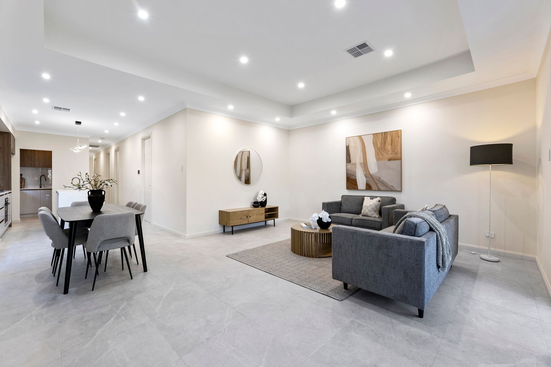 Delivering a deceptively spacious footprint, where 4-bedrooms branch off from the long central hallway, including master complete with WIR and ultra-luxe ensuite, this high-functioning haven blends exceptional versatility with sleek feature. From the striking stone-wash floor tiles, decadent recessed ceilings in the sweeping open-plan entertaining, luxury foodie's zone inviting guests to gather and graze around waterfall stone bench tops, while everyday cooking is made a stress-free affair courtesy of a Butler's pantry… the free-flowing elegance here is simply best experienced in person.