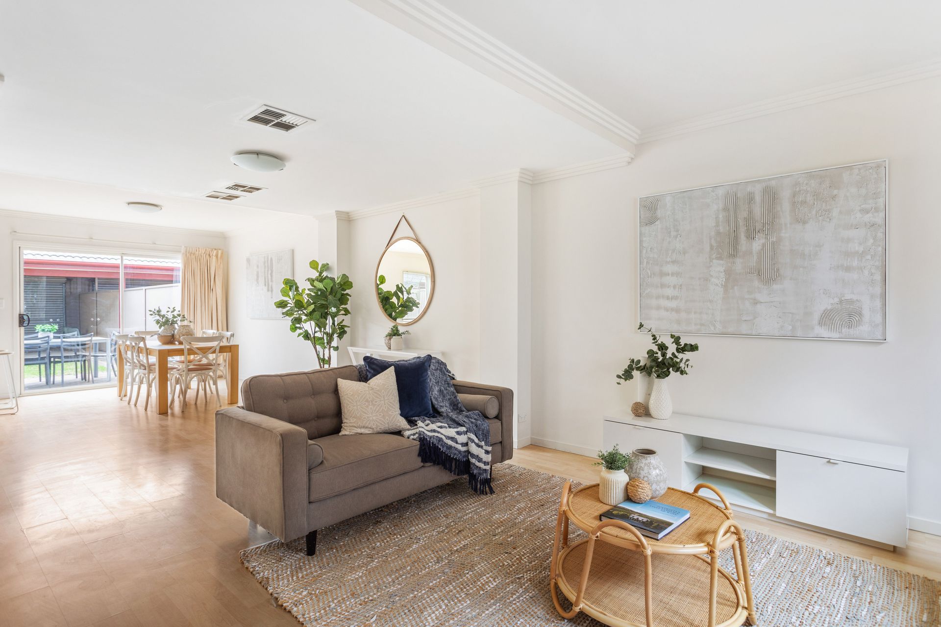 As you step inside, you'll be greeted by an inviting open-plan living, dining, and kitchen area. This spacious layout provides the perfect space for entertaining family and friends or simply enjoying a cosy evening at home. With its 3-step cornices, the attention to detail in this townhouse is truly exceptional, adding a touch of elegance to the overall design.