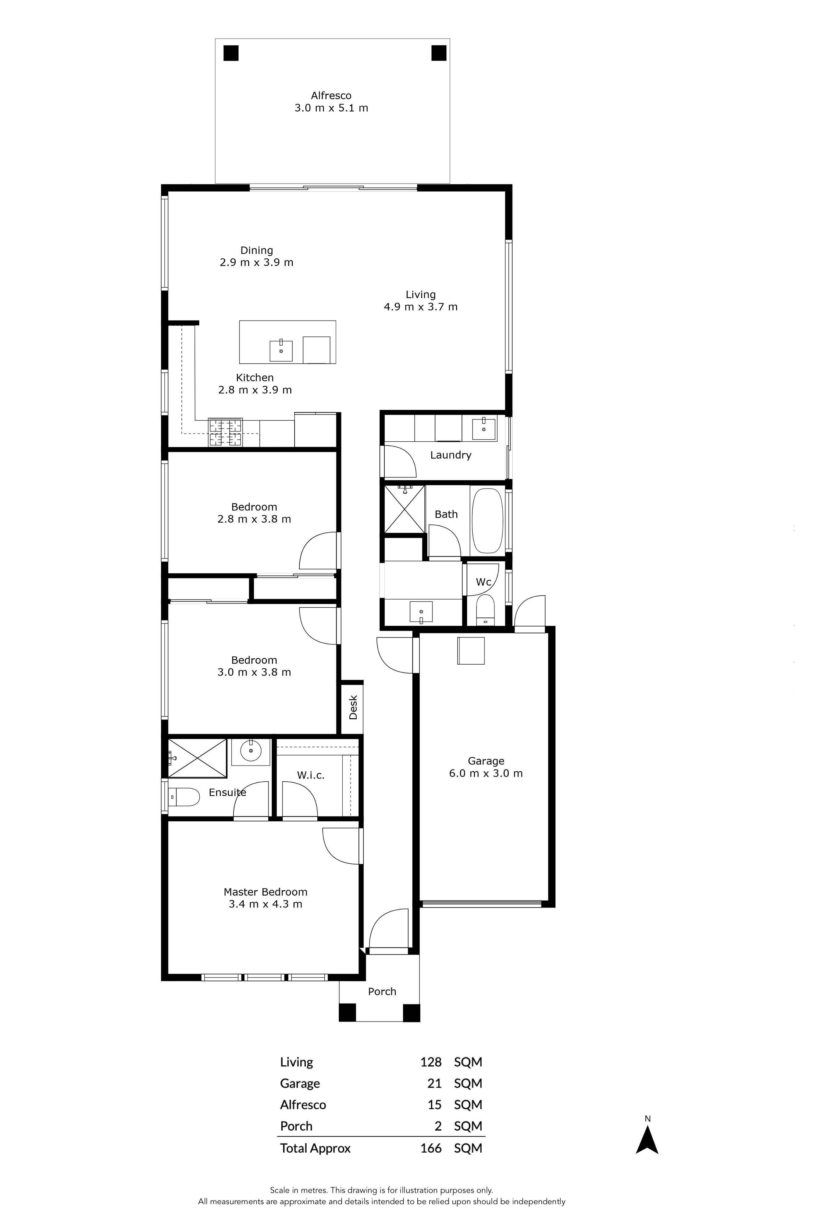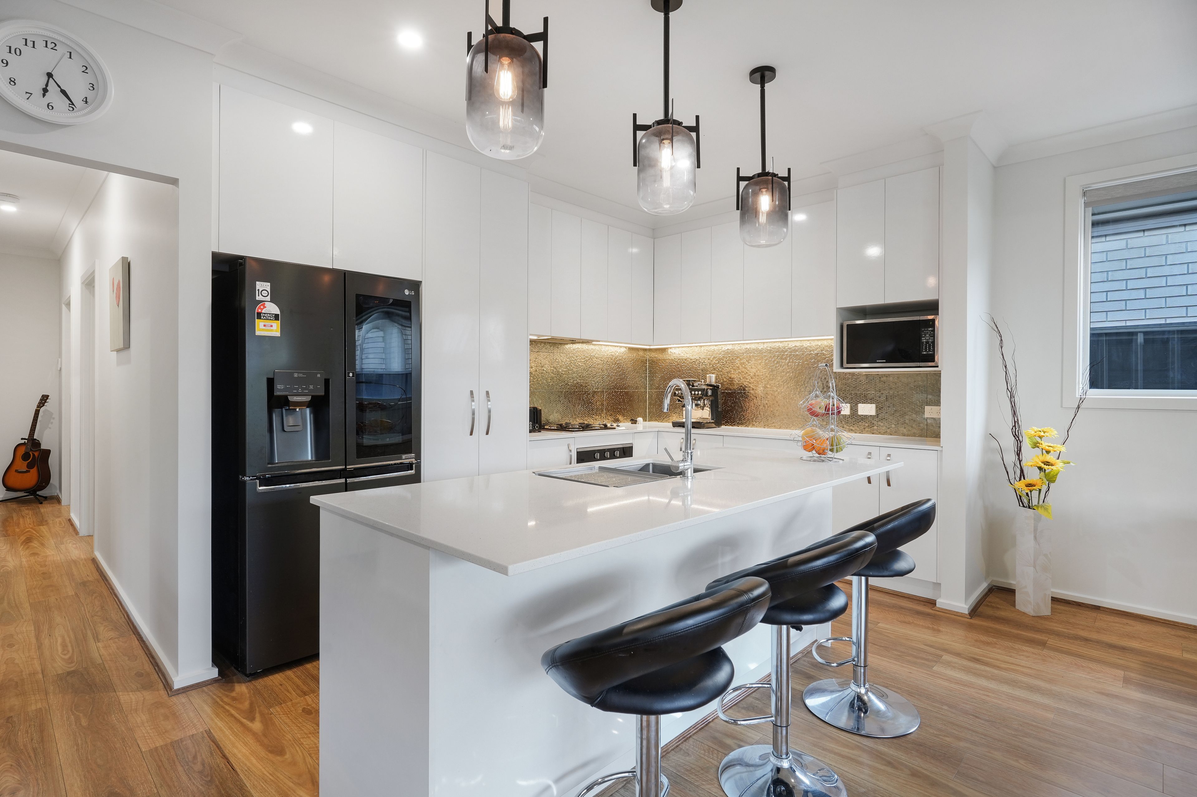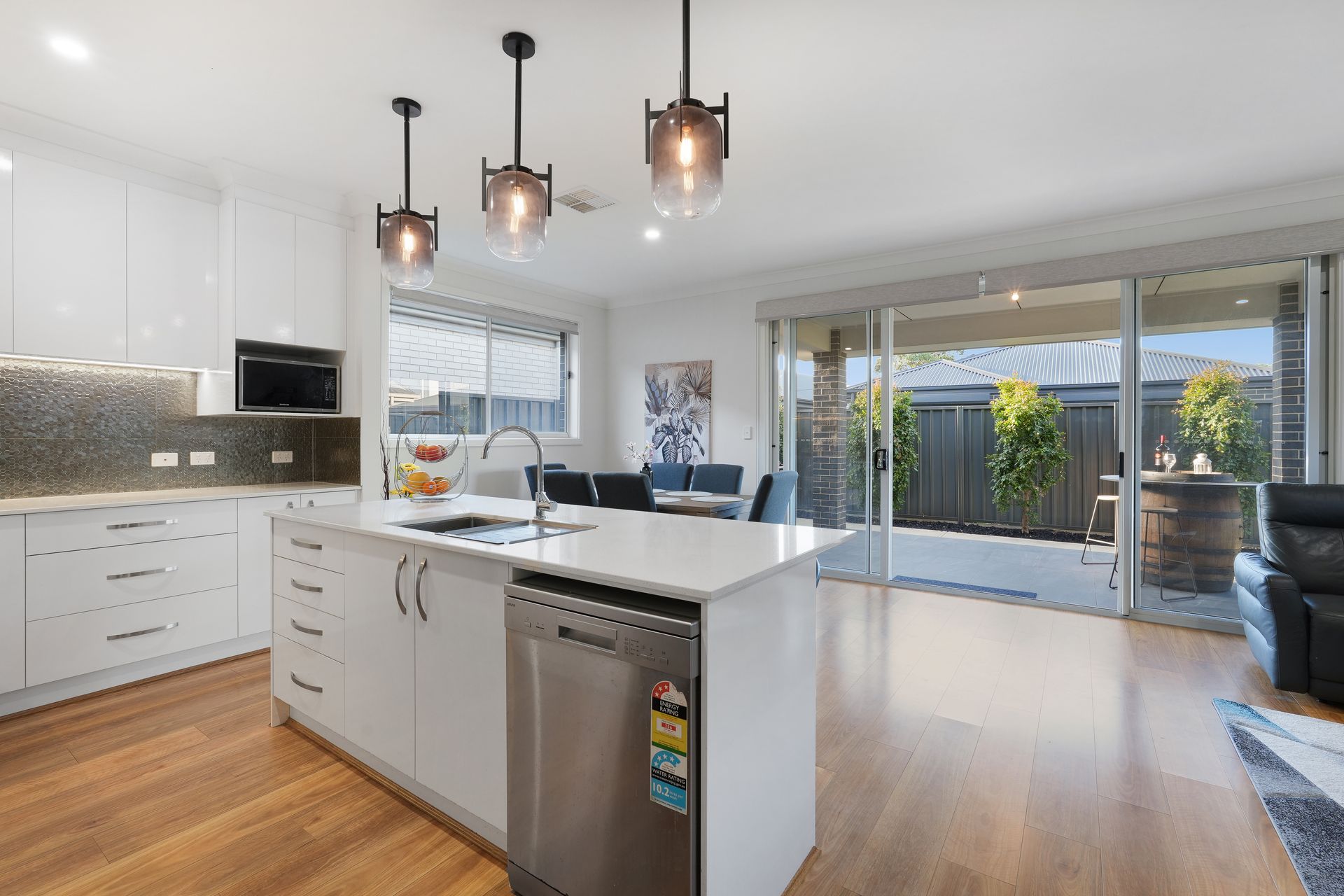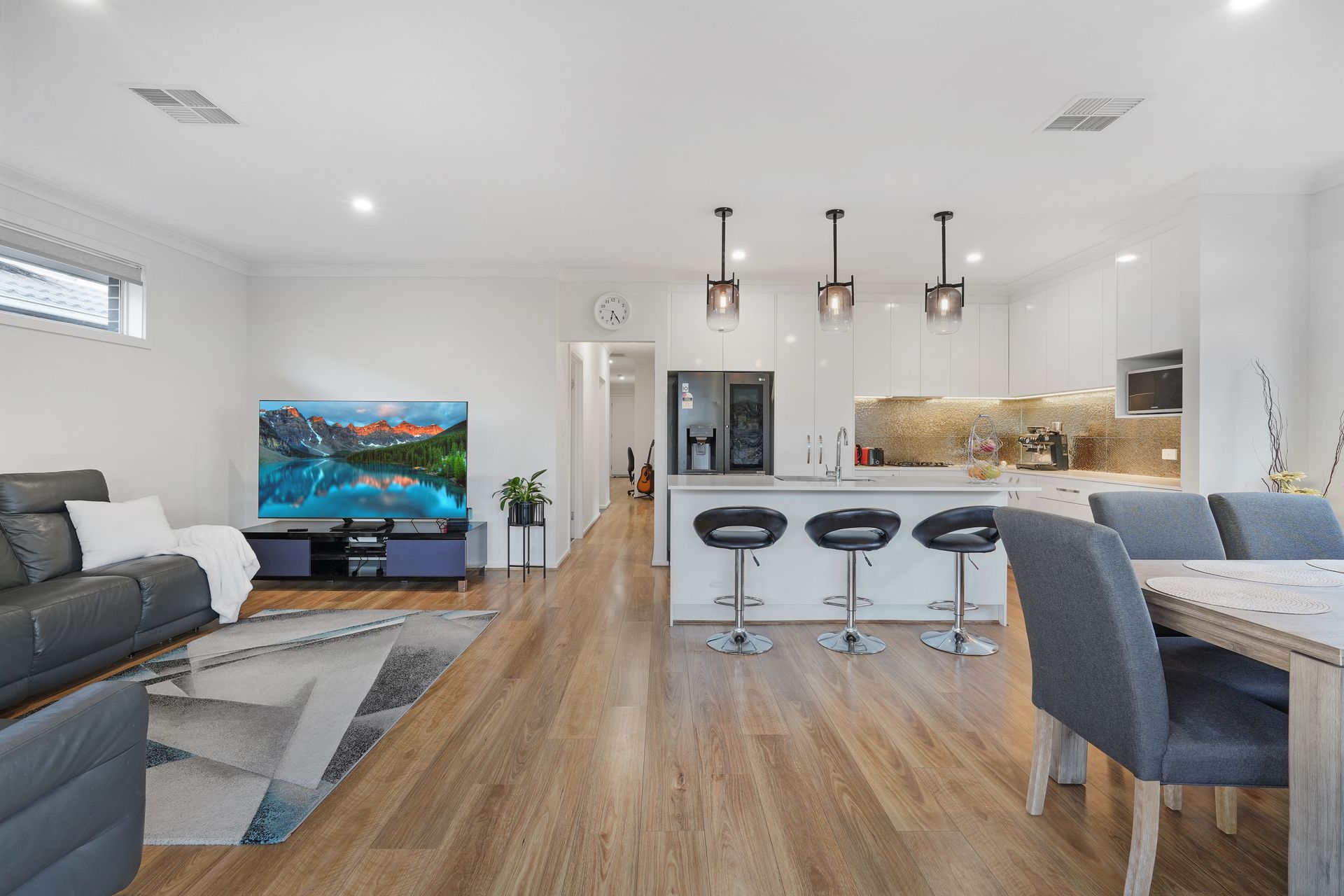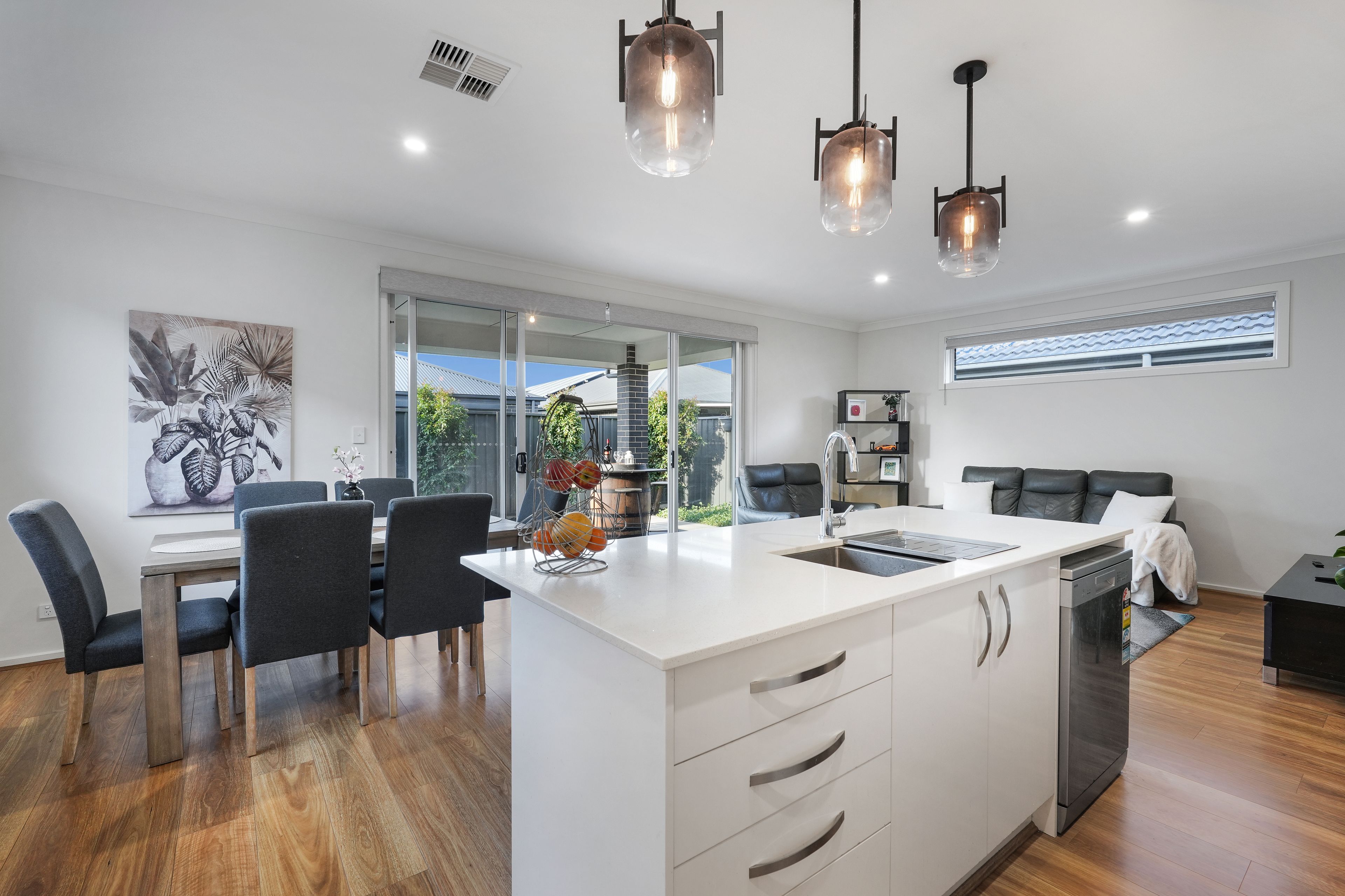 A flawless floorplan sets the sun-kissed primary social hub of this modern abode on its own at the rear, with the plush carpeted bedrooms, laundry and family-friendly main bathroom, branching off a central hallway extending from the front entry. Sporting fashionable hybrid flooring, this hub comprises a combined kitchen/living/dining area flowing seamlessly through window framed glass sliders onto a tiled alfresco entertaining patio capturing northern light across an easy-care no-mow fenced yard and high 2.7m ceilings.