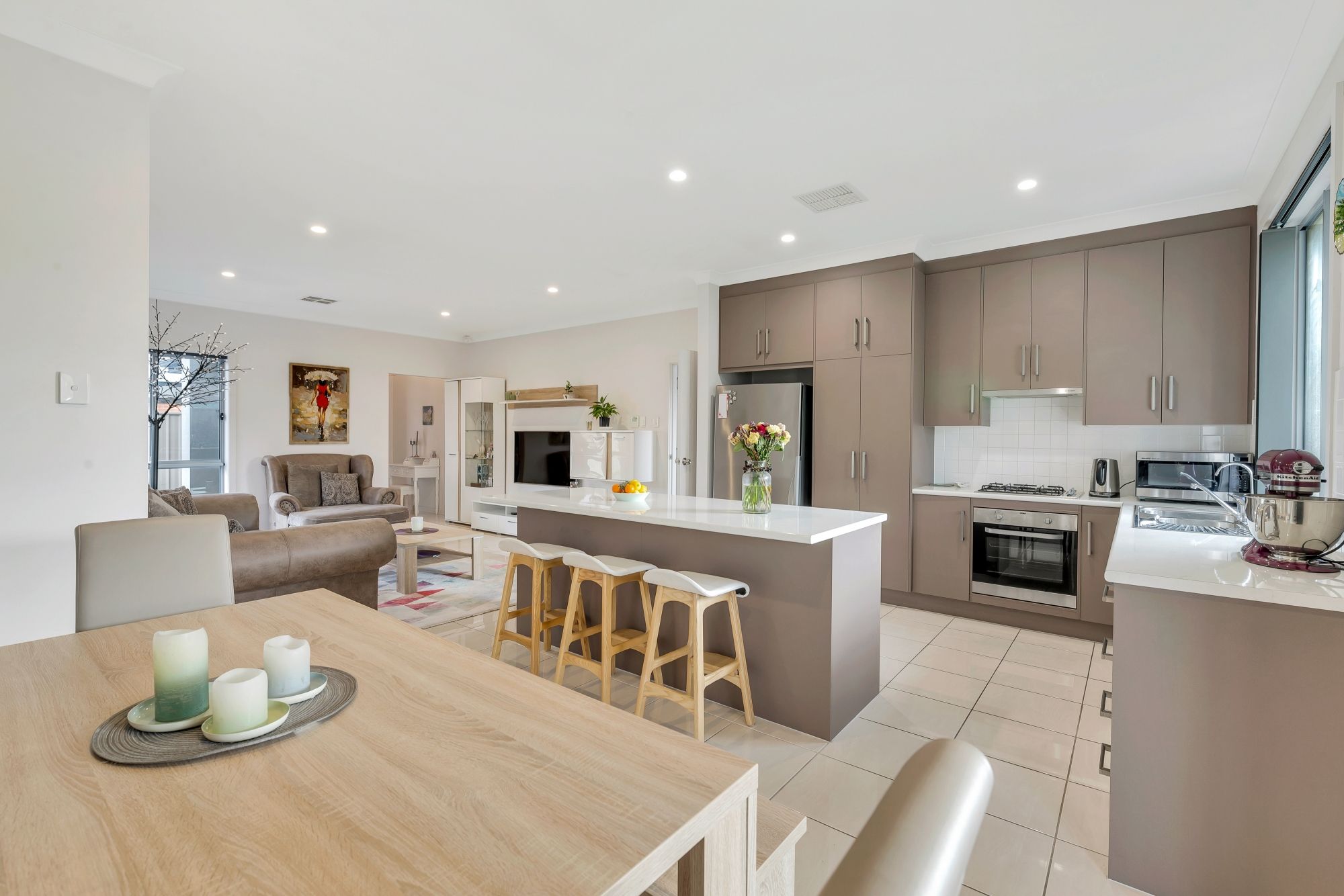 Tucked away down a private driveway and on a quiet street this home boasts - 3 great sized bedrooms all with built in robes - Master bedroom with ensuite - Modern kitchen with an abundance of cupboard and bench space, plus the convenience of a dishwasher - Large open plan living with stunning tiled flooring - Modern and sparkling bathroom with full sized separate bath and shower - Separate toilet - Ducted heating and cooling - Undercover entertaining at rear - Lock up double garage - Sorry, no pets