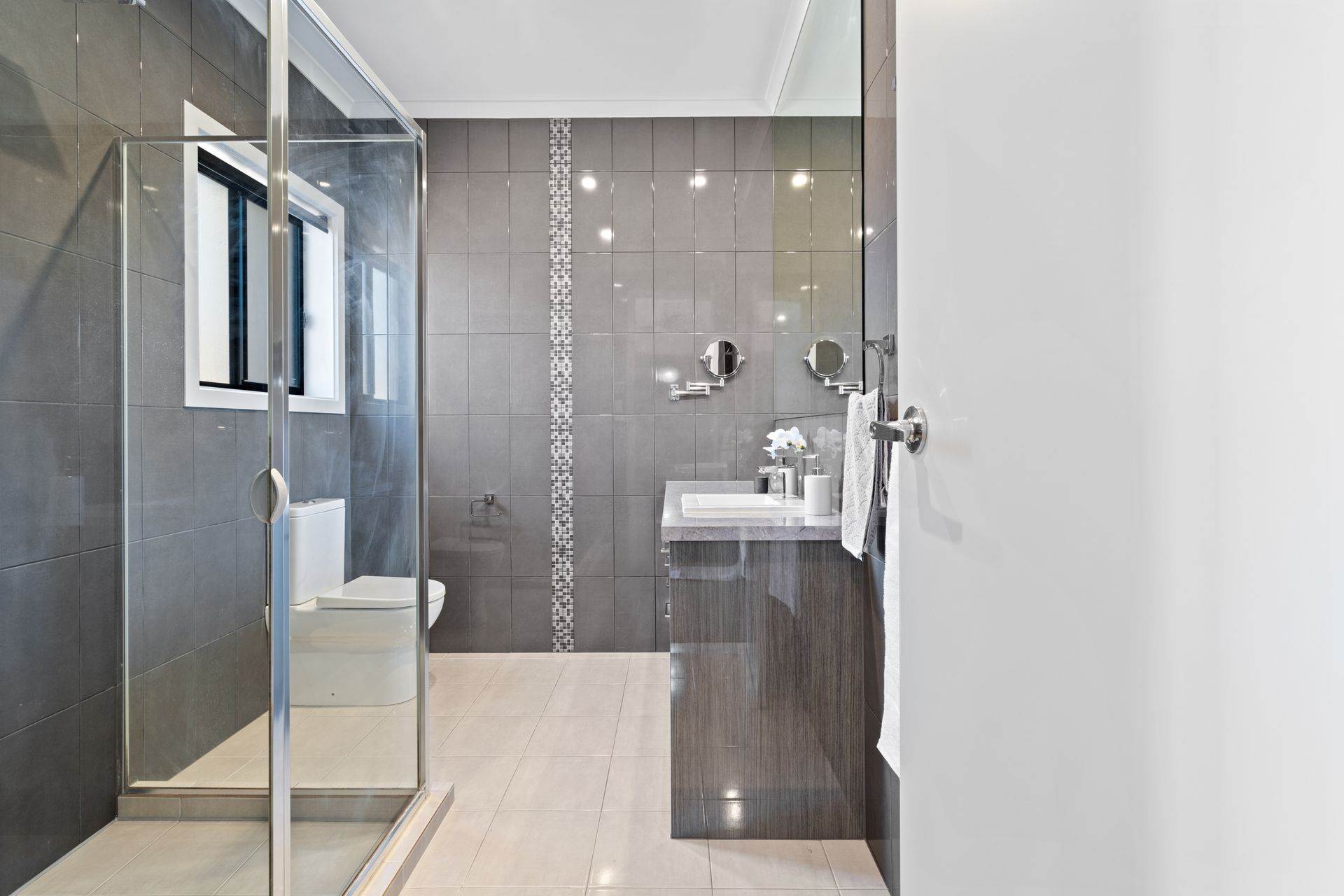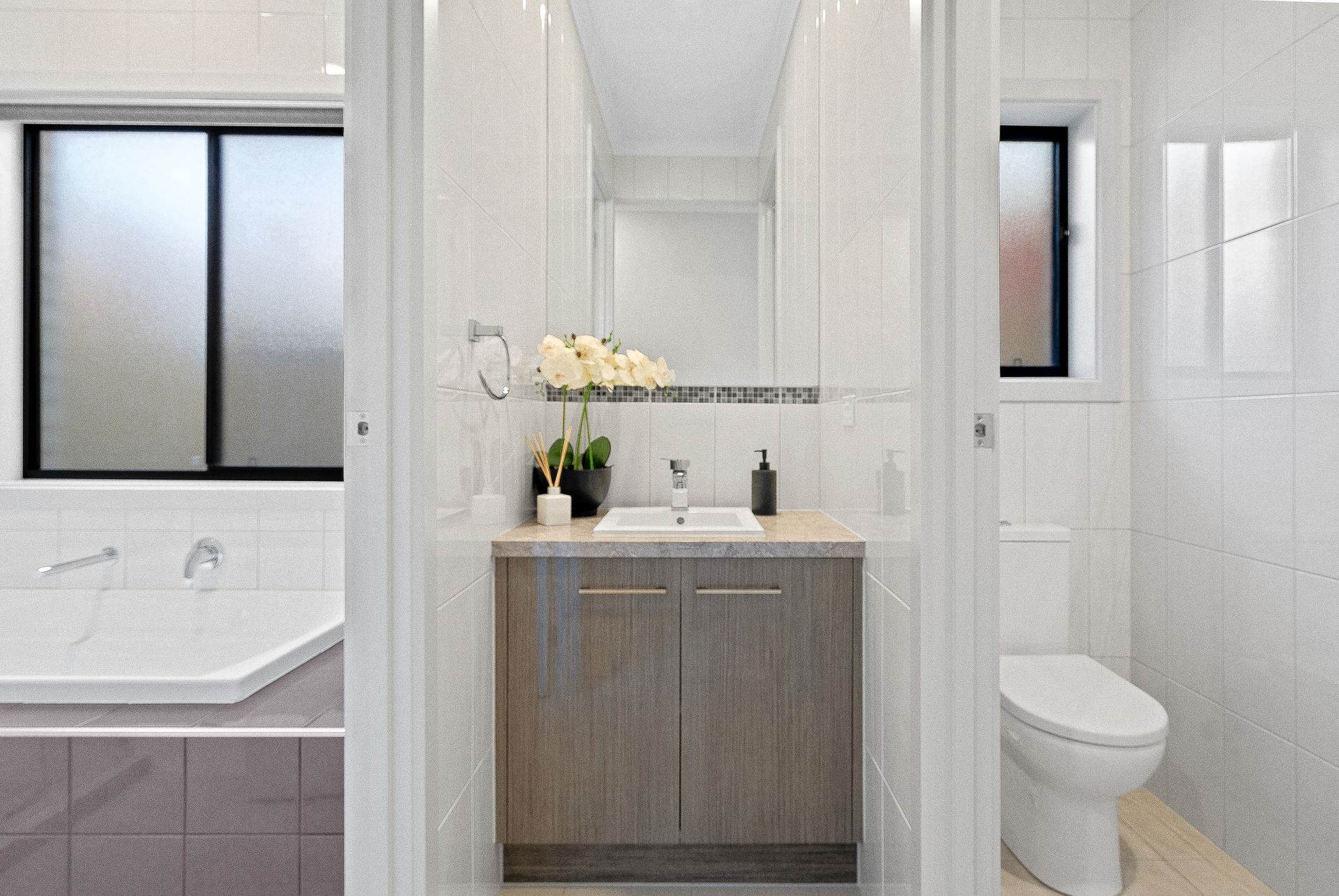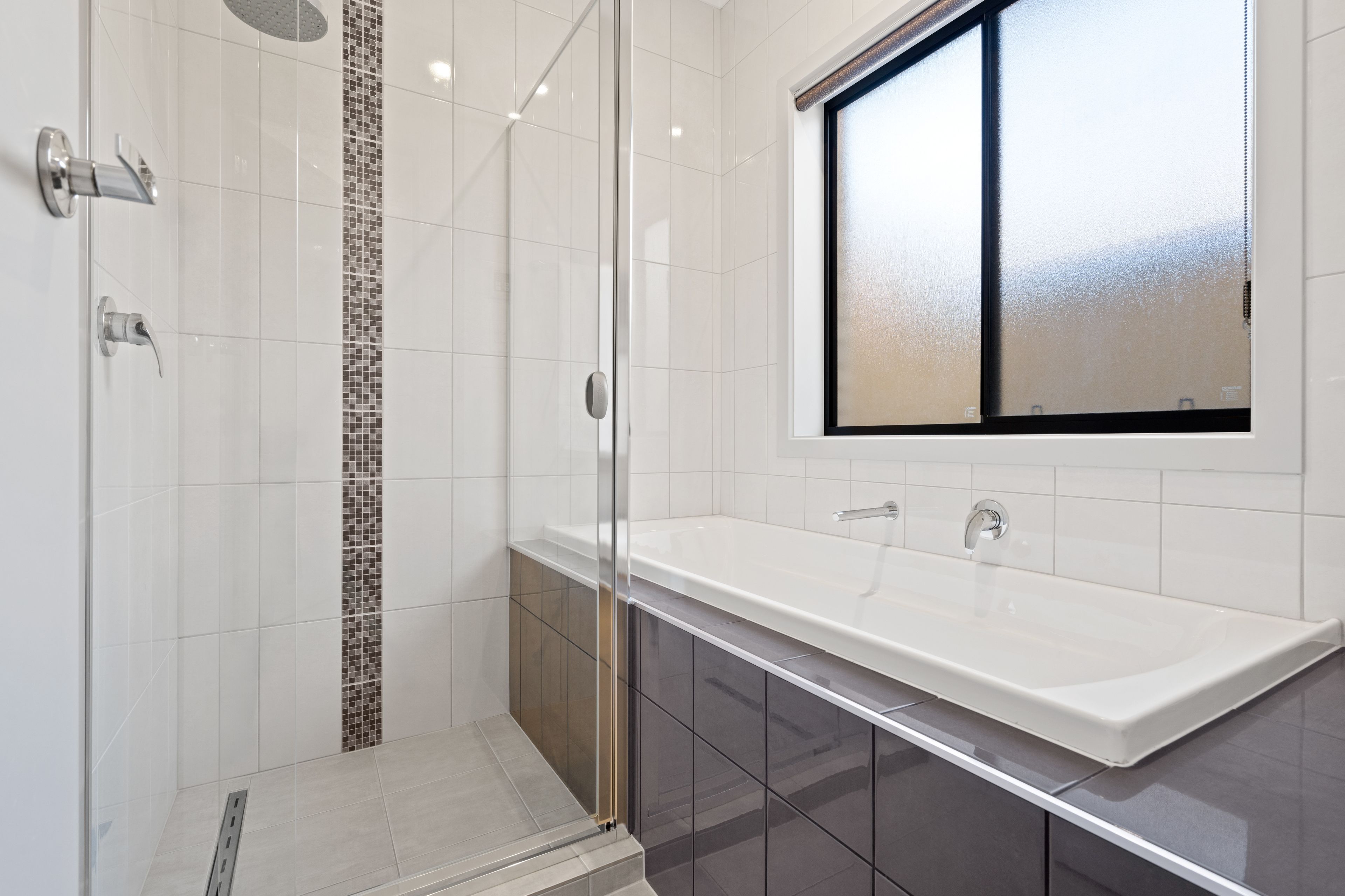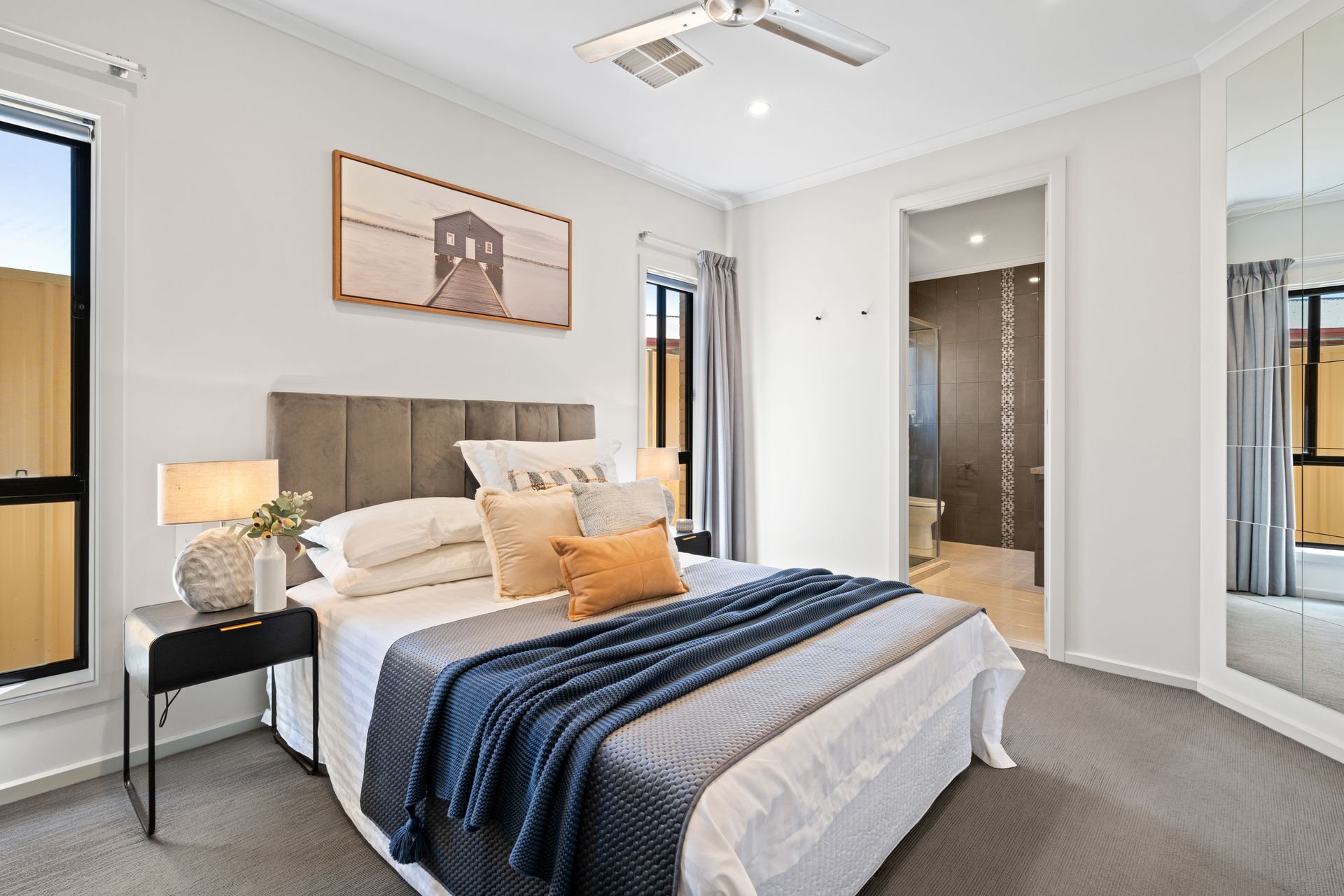 The home offers three well-sized bedrooms, each equipped with ceiling fans to ensure year-round comfort. The master suite is a true retreat, complete with a generous walk-in robe and a sleek ensuite with a spacious shower. The two additional bedrooms feature built-in robes and share a well-appointed central bathroom with a bathtub, perfect for unwinding after a long day. The laundry is well configured, with a deep sink, exterior access and handy under-sink and overhead storage.