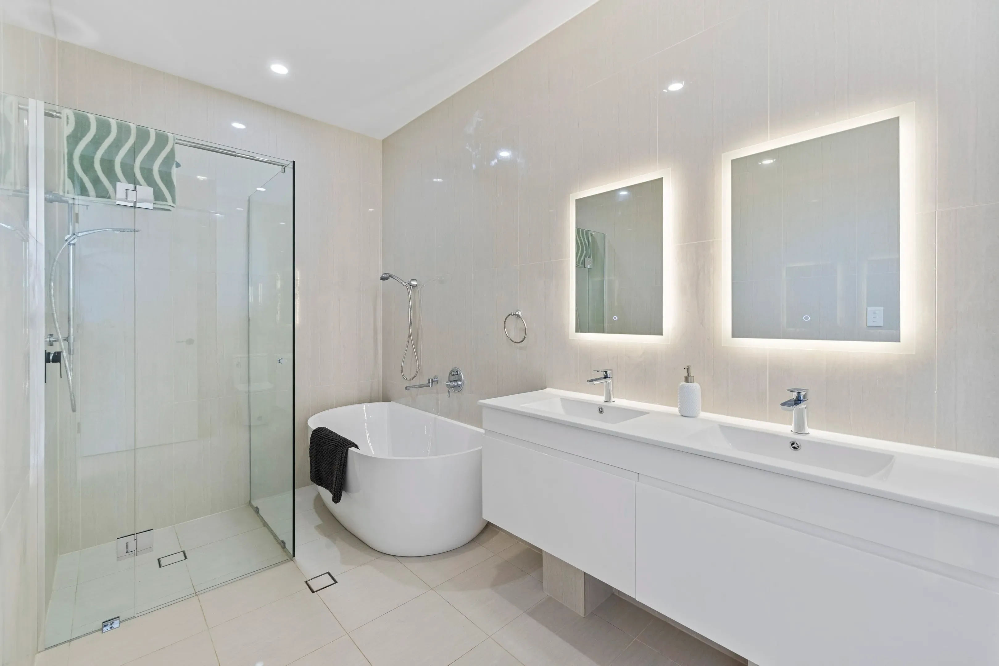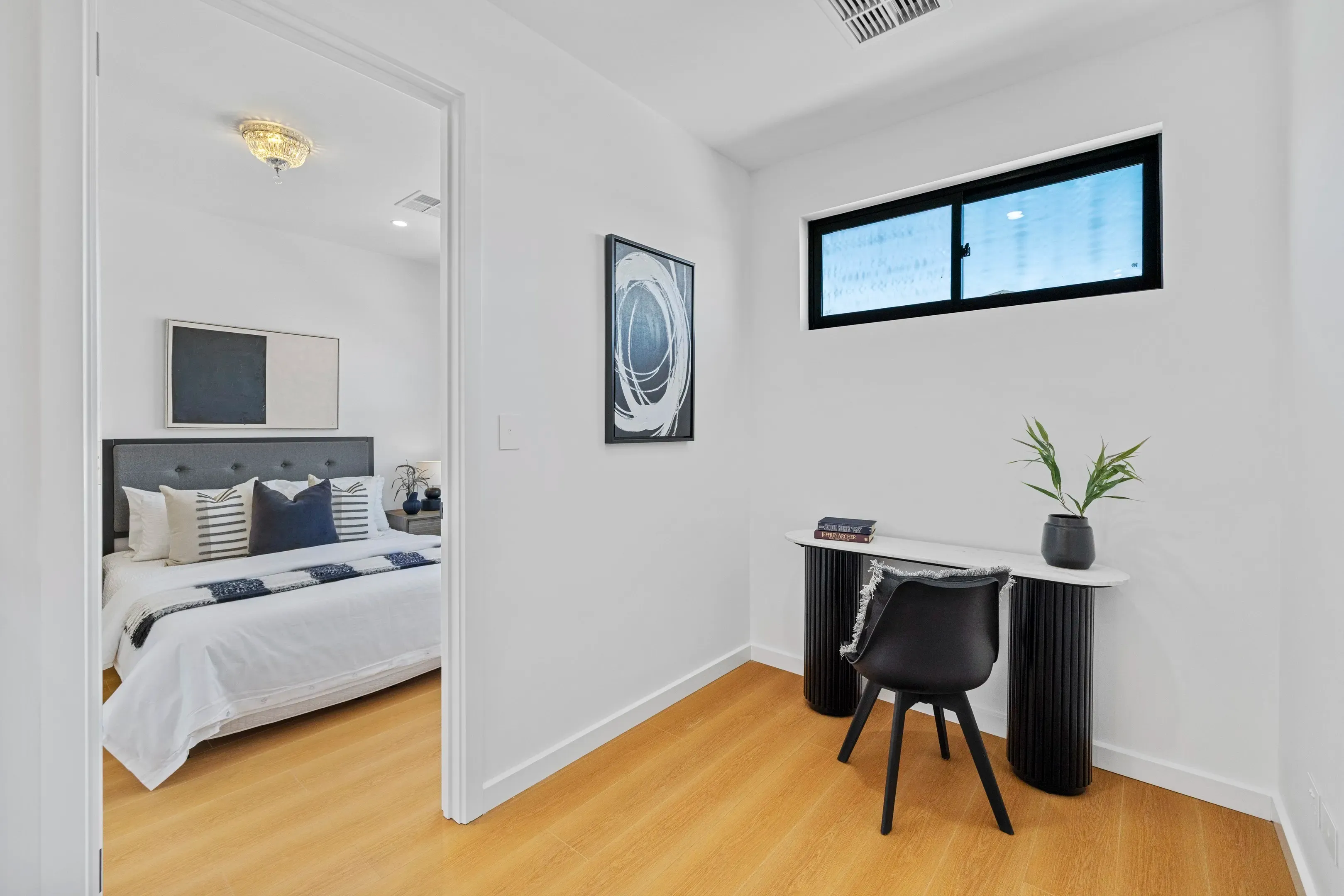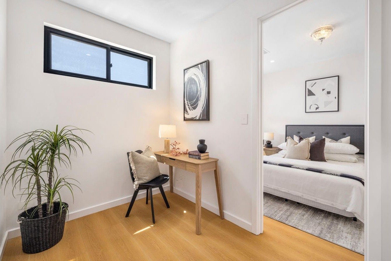 The Ultimate Statement in Modern Luxury living for the fastidious buyer describes the desirable lifestyle that these 2 level 3-bedroom light-filled homes provide, the layout of the homes offer 3 generous size bedrooms all upstairs with the main offering a lovely ensuite and with all bedrooms featuring mirror robes, study mook area and with quality timber floor coverings throughout upstairs plus a stunning main bathroom with, free standing bath, double vanities, led mirrors which certainly compliments the upper level.