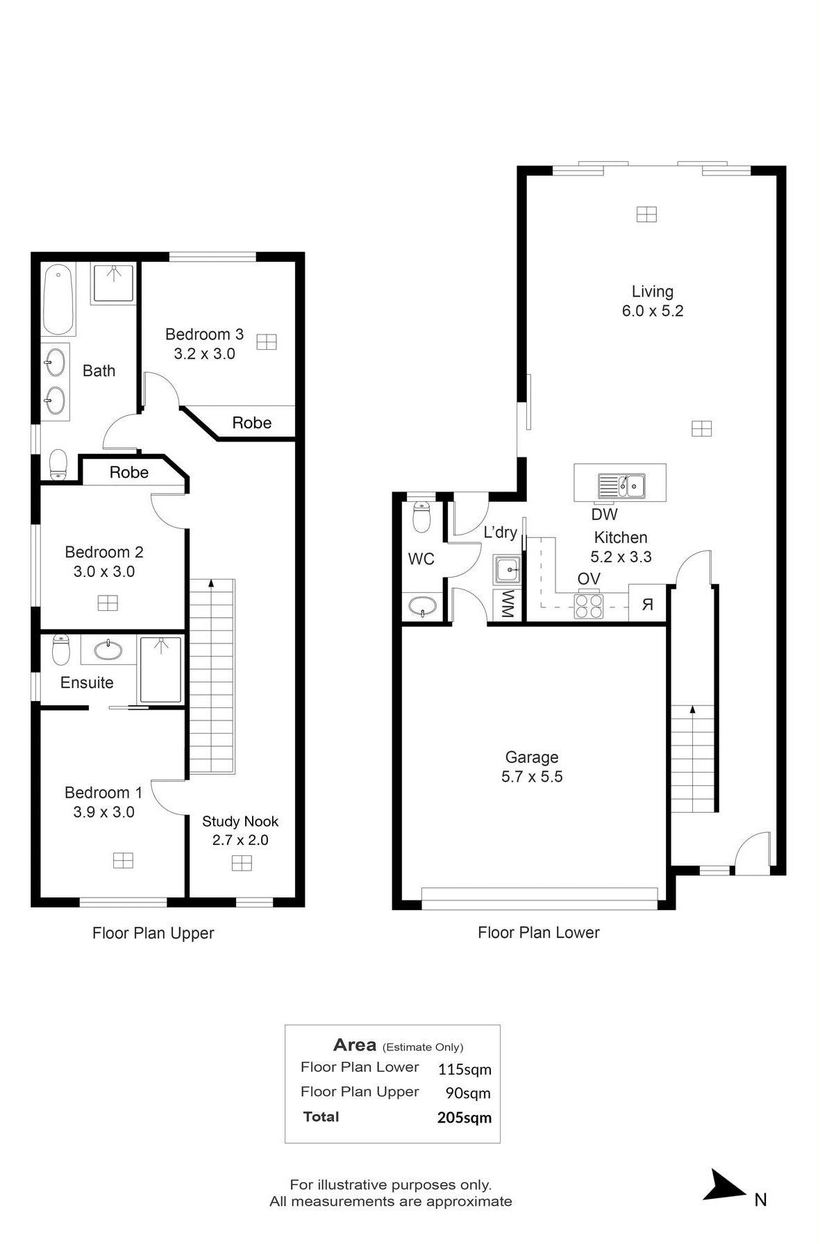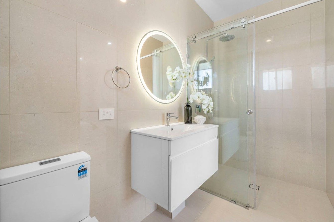 • 3-Generous size bedrooms main with ensuite, all bedrooms with mirror robes. • Lovely large open plan kitchen/ meals living area. • Stunning main bathroom upstairs with bath, double vanity and LED mirrors. • Study Mook. • Laundry area with 3rd toilet. • Double garage with internal access and auto panel lift door. • Private paved rear yard. • Ducted reverse cycle air conditioning. • Stone bench tops, gas top stove, under bench oven, rangehood and dishwasher. • Quality tiled floors on the lower level. • Timber floors on the upper level.