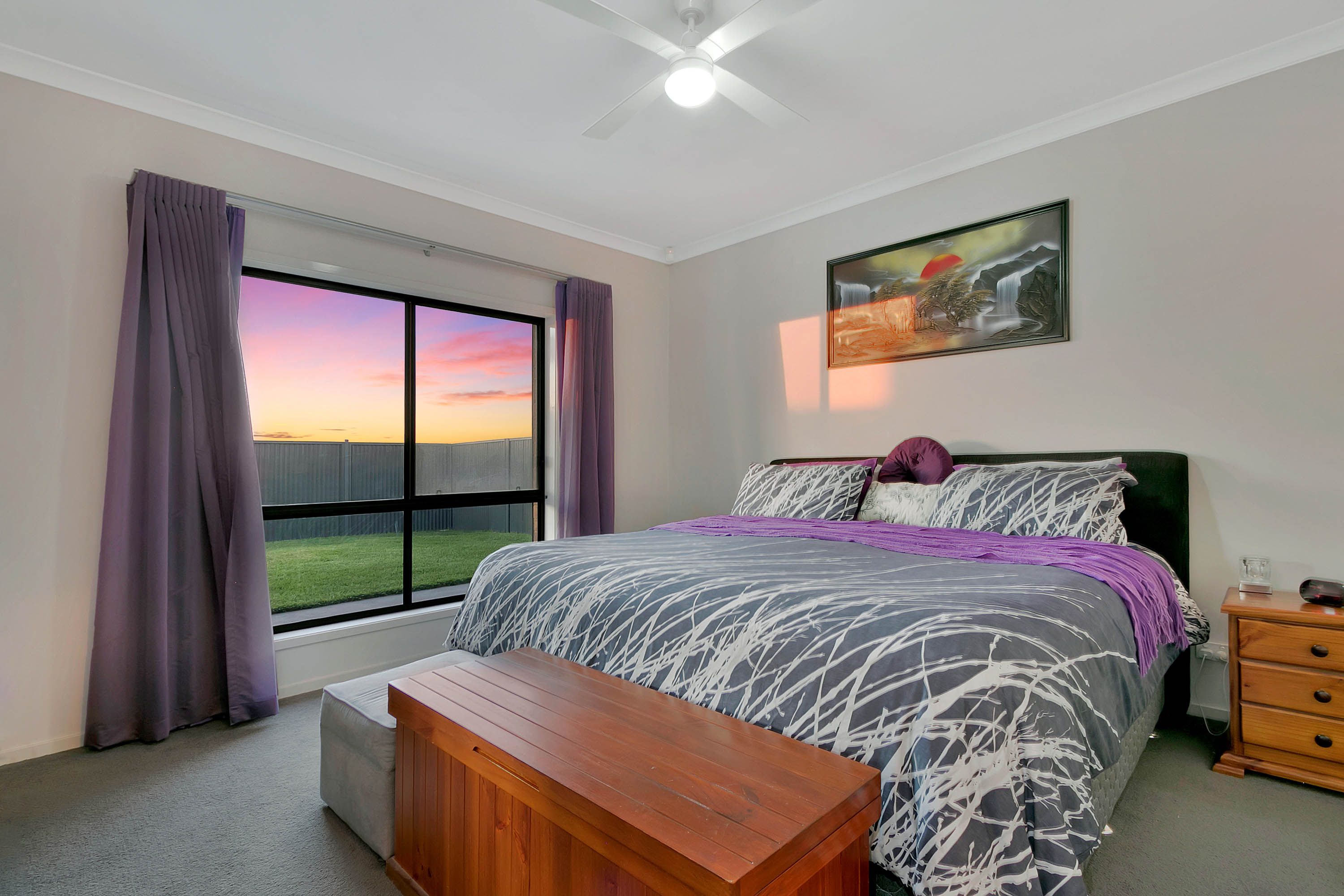 The grand master suite located to the rear of the home basks in the luxuries of sliding door access to the outdoor alfresco area, and is complete with a deluxe walk-in robe, and a spacious modern ensuite complete with floor to ceiling tiles and double vanity.