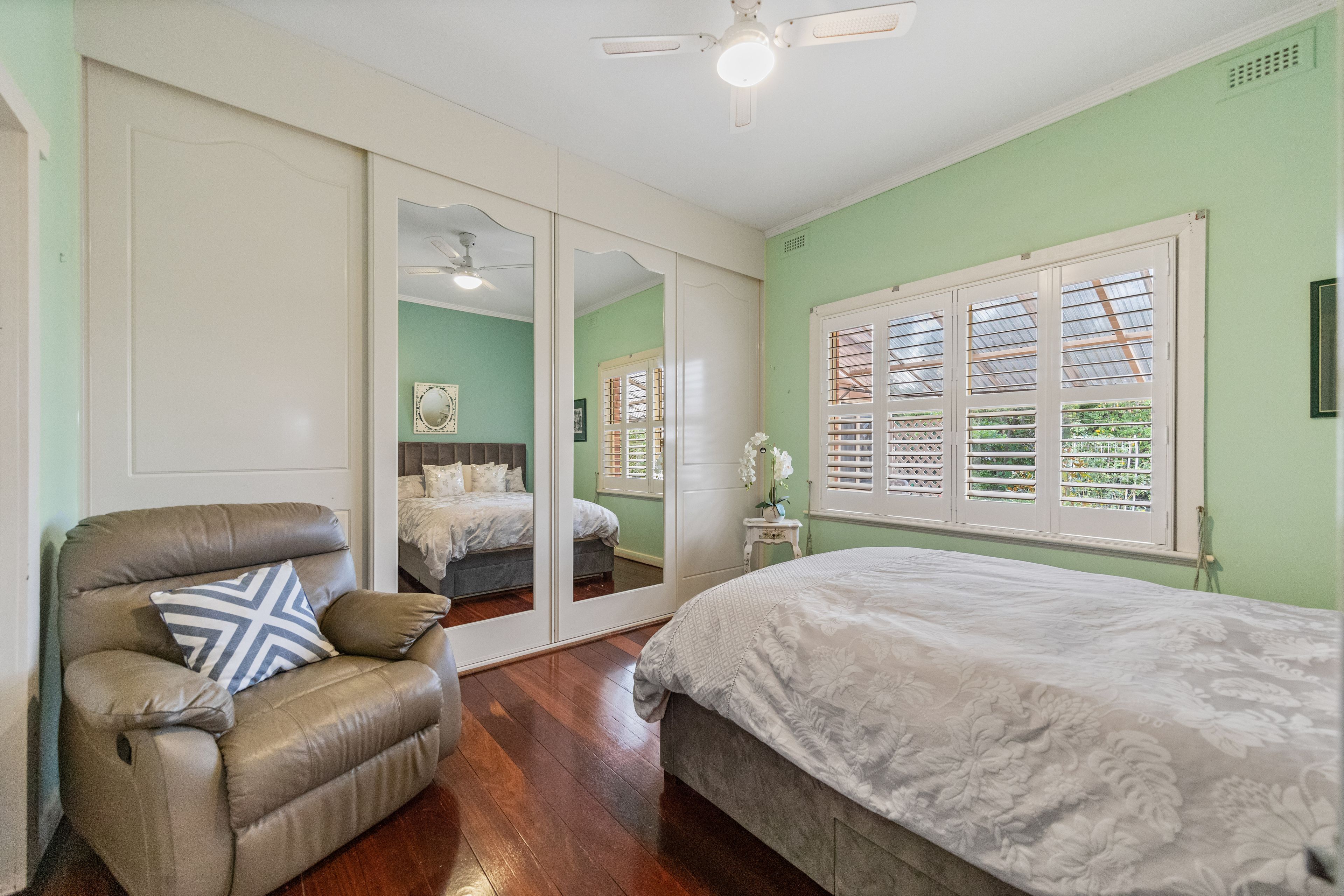 • 3 large bedrooms - bedroom 1 and 2 with built-in robes • Spacious open plan living and dining area • Contemporary light-filled kitchen with electric wall oven, gas cooktop and stainless steel dishwasher • Functional laundry with built-in linen cupboard + additional linen storage in hallway • Paved and undercover outdoor entertaining area overlooking the established garden • Plantation shutters • Jarrah timber flooring • Split system heating and cooling • Gas heating • Ducted evaporative cooling • Gas hot water system • 5m x 7.2m garage with auto roller doors • 1220msq (approx) corner allotment with subdivision potential (STCC)