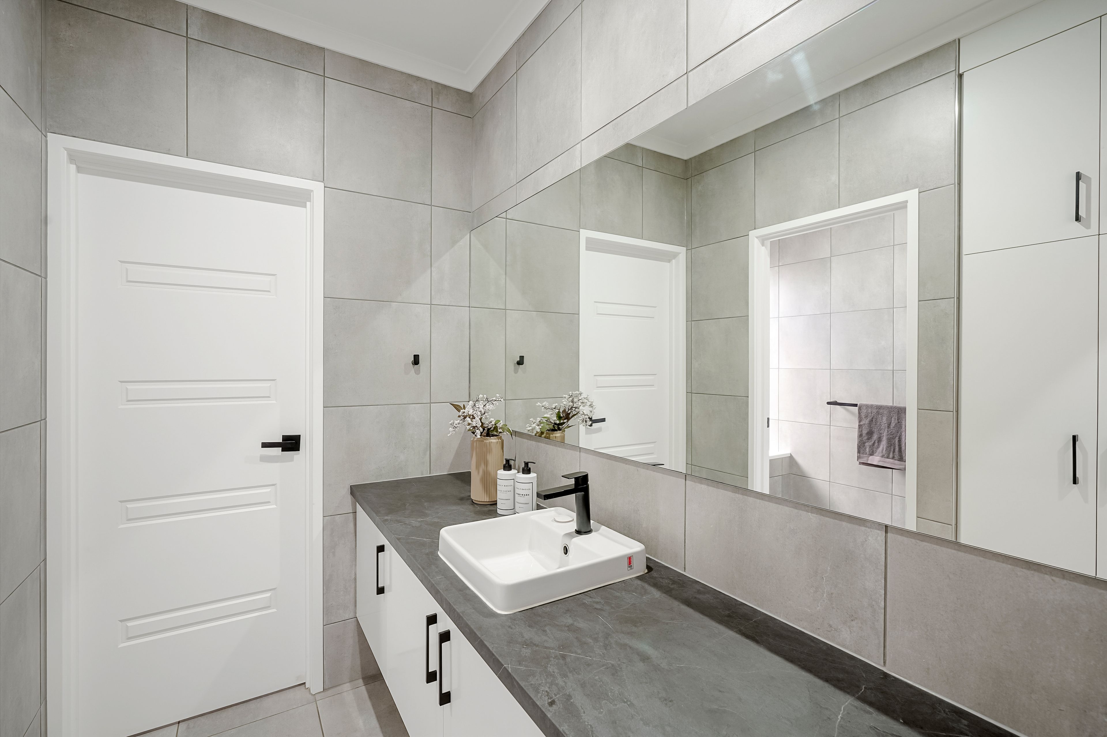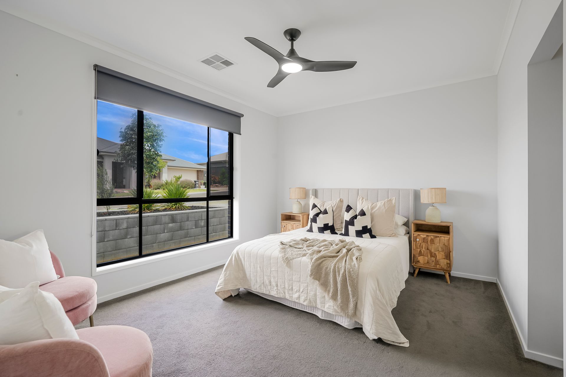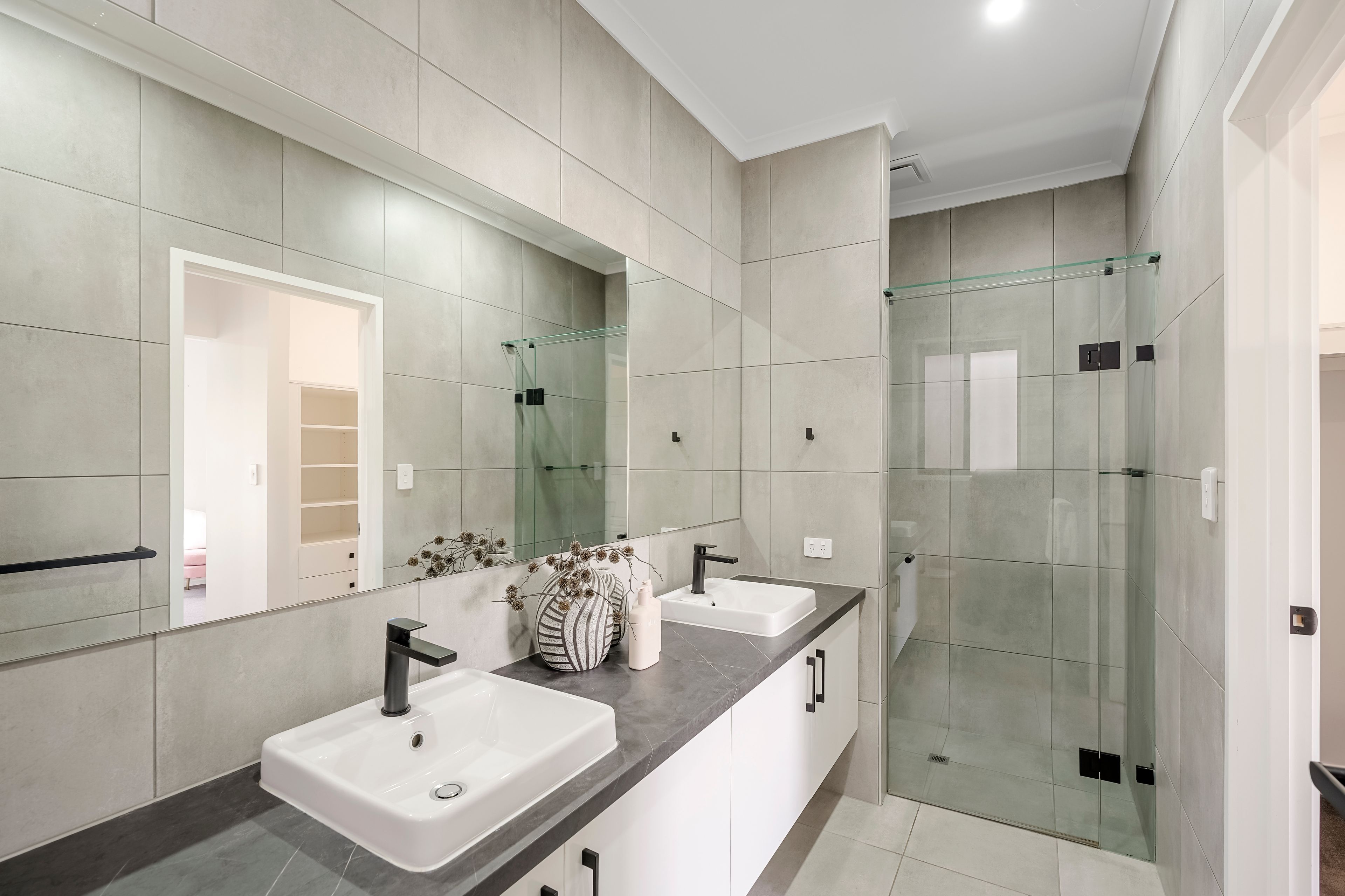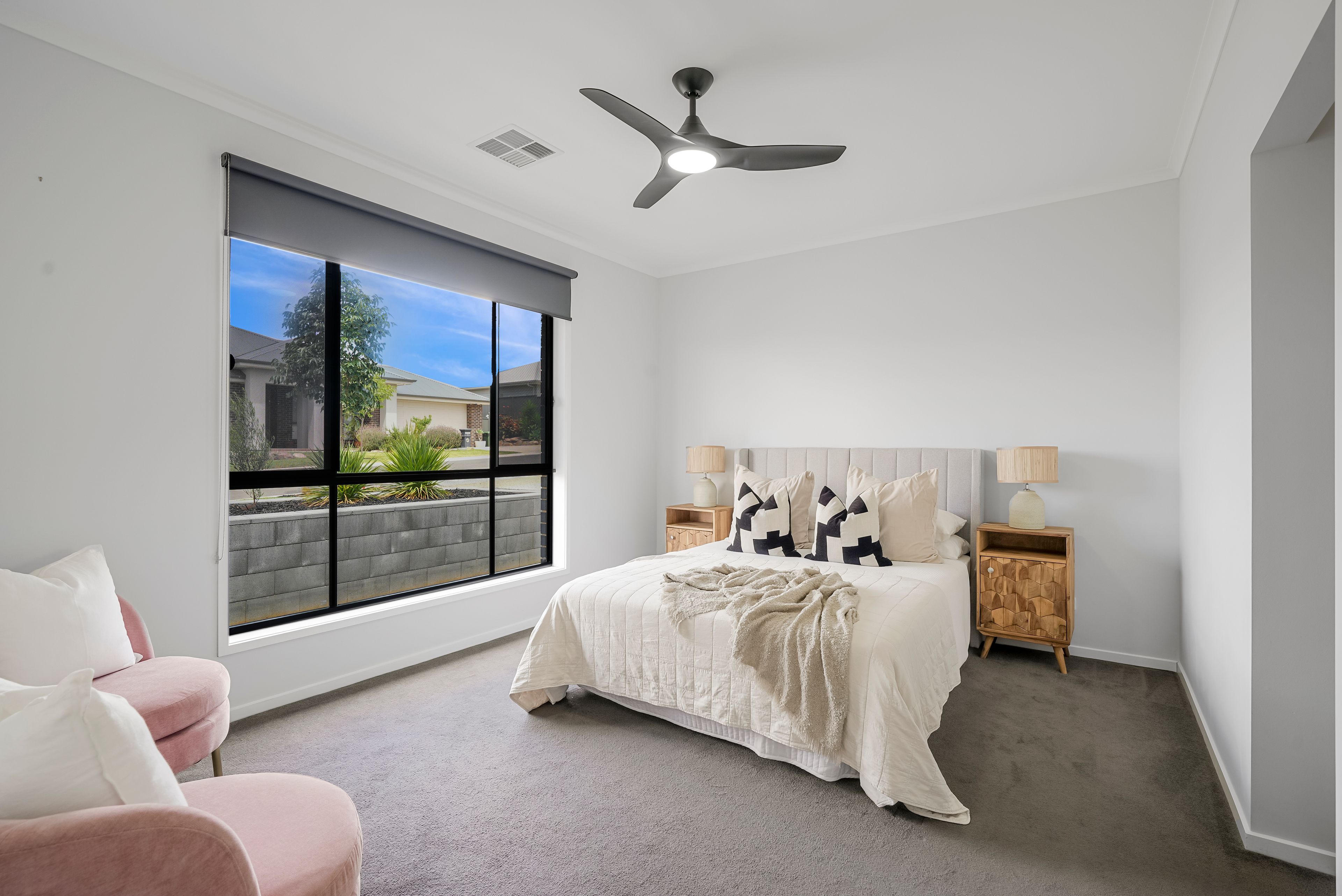 The home offers 5 good-sized bedrooms, each with built-in robes and remote-controlled ceiling fans for year-round comfort. The family bathroom features a separate vanity with a single sink, a separate w/c, and floor-to-ceiling tiles for a sleek, modern look.